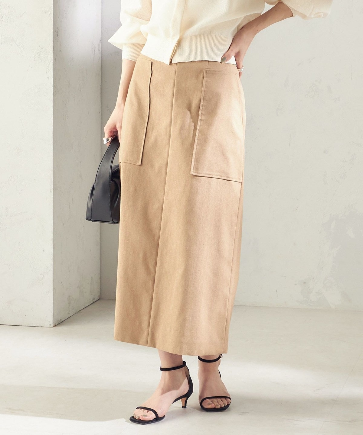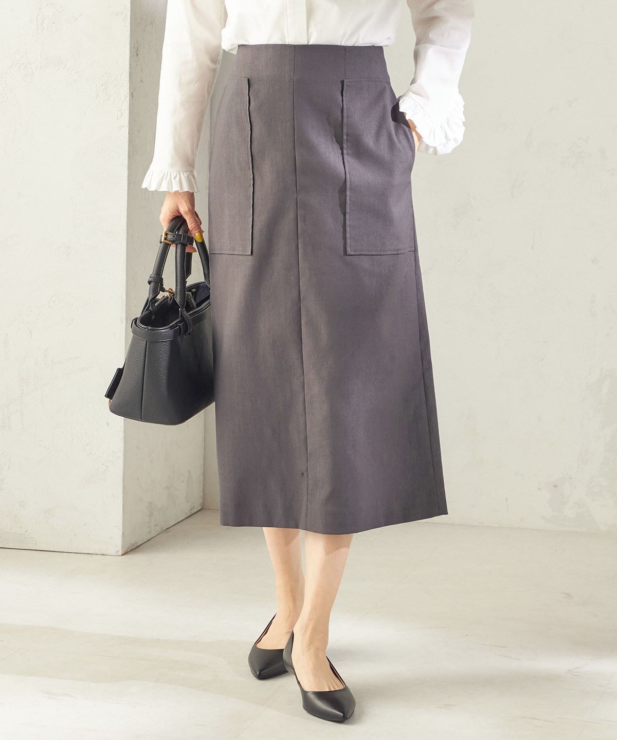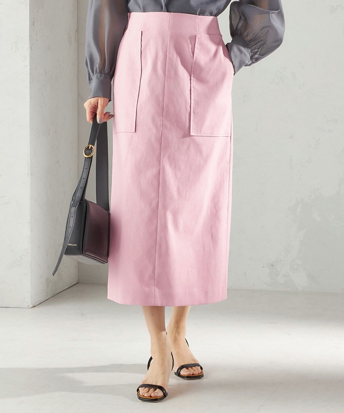 《予約》〈UVカット・吸水速乾・手洗い可能〉綿麻混 オックス ポケット タイト スカート