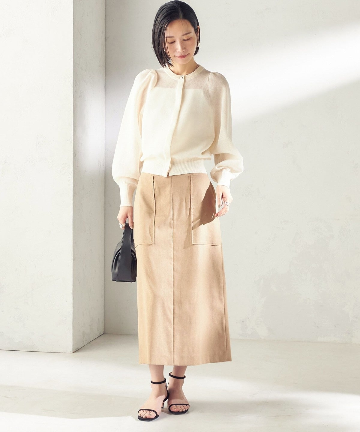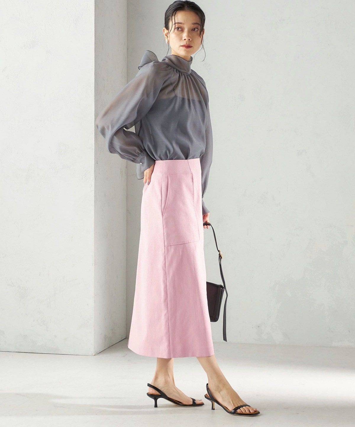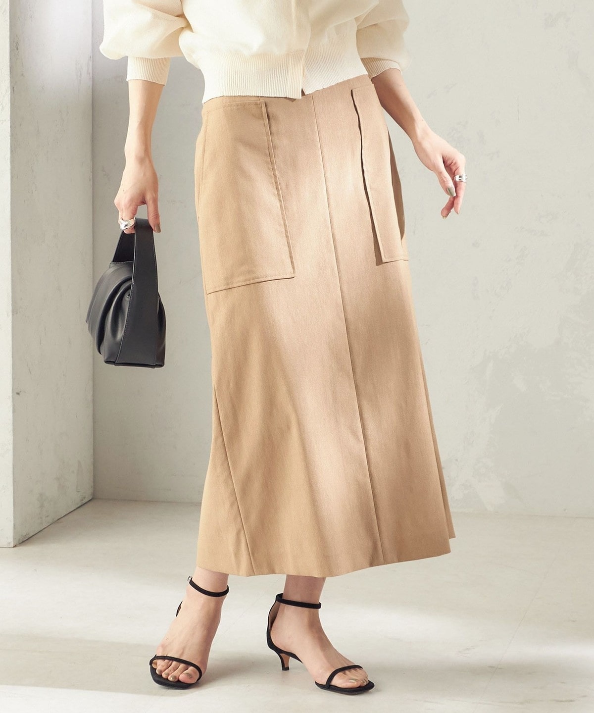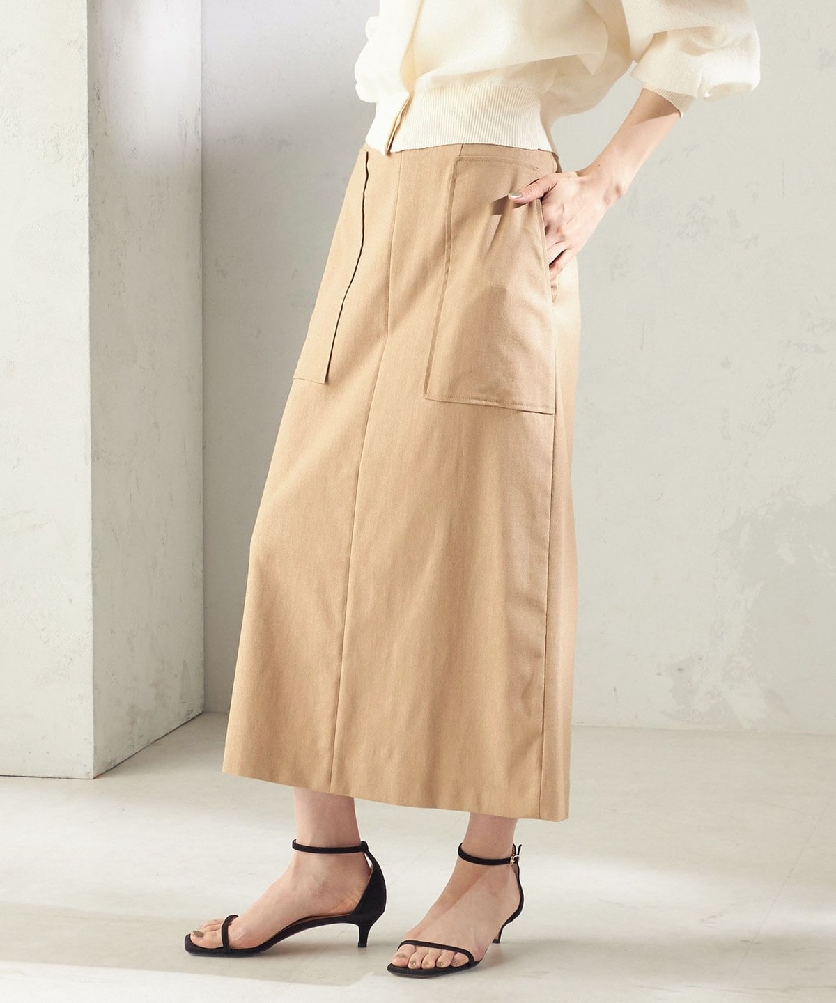 《予約》〈UVカット・吸水速乾・手洗い可能〉綿麻混 オックス ポケット タイト スカート