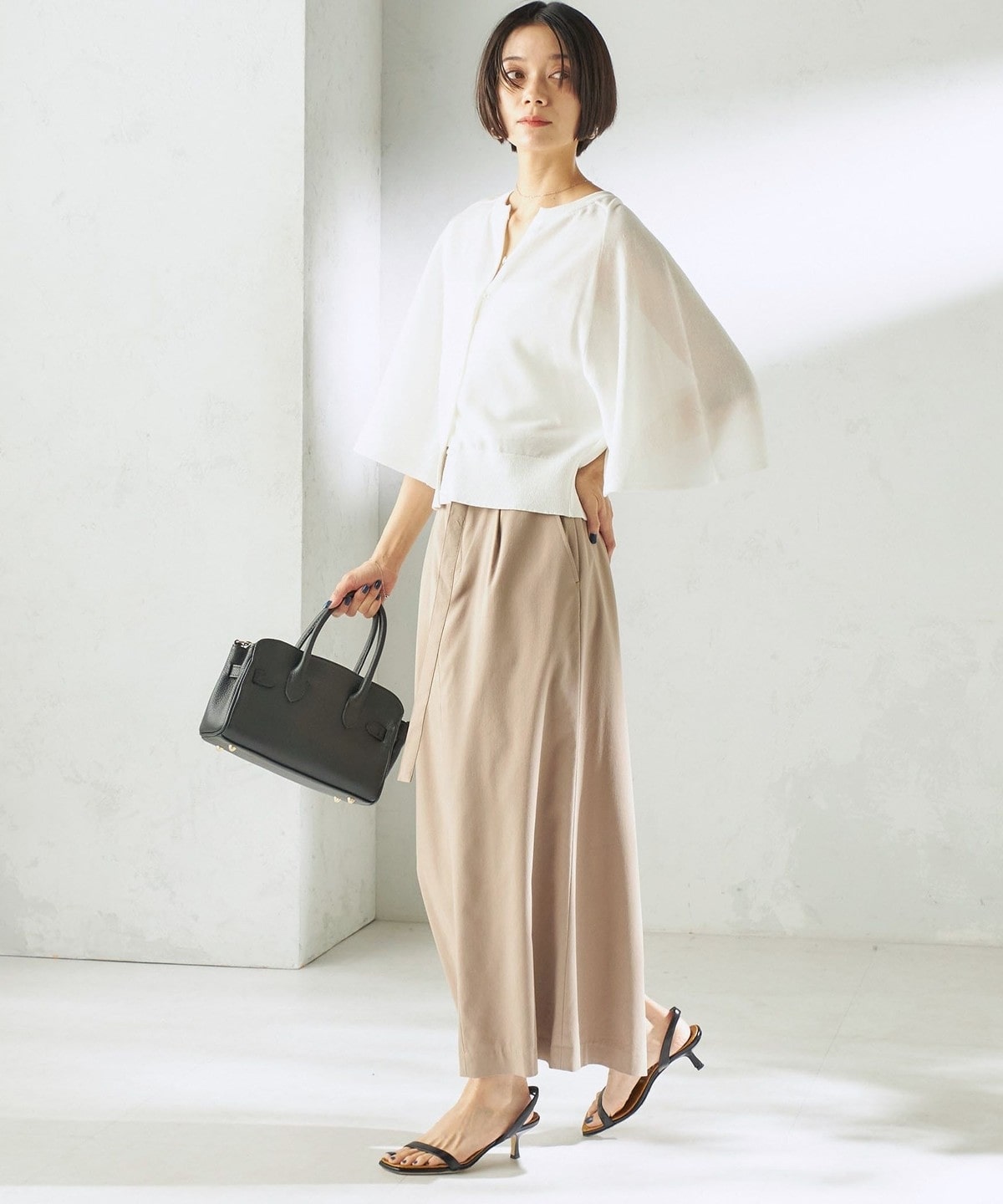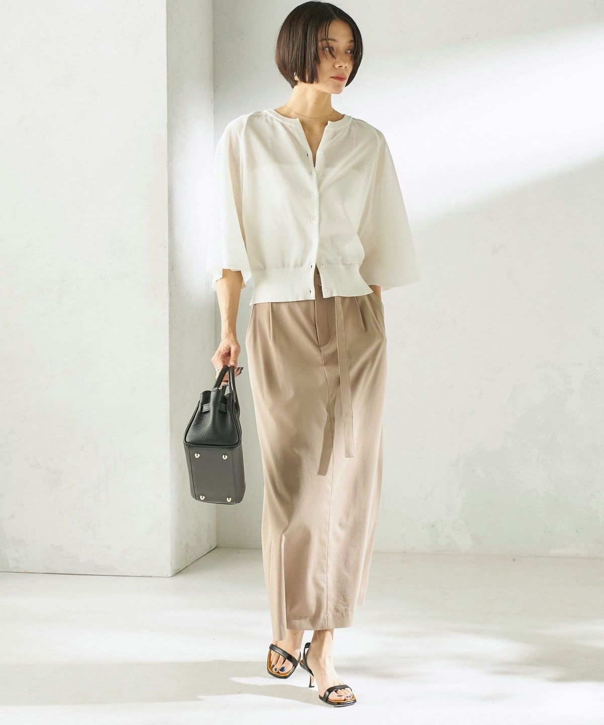 ブラウスやニットをインした着こなしでウエストベルトを活かすことで、すっきりとした女性らしいバランスに仕上がります。
