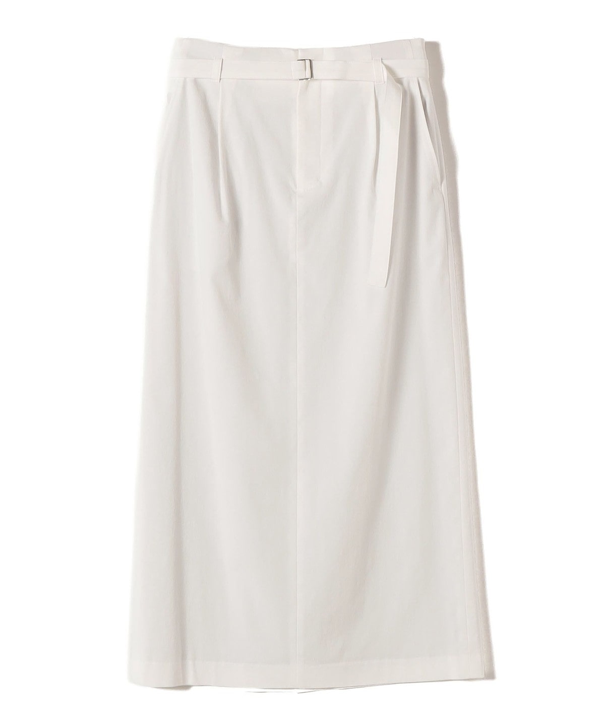 〈手洗い可能〉麻混 ベルト付 ウエストタック ナロー スカート