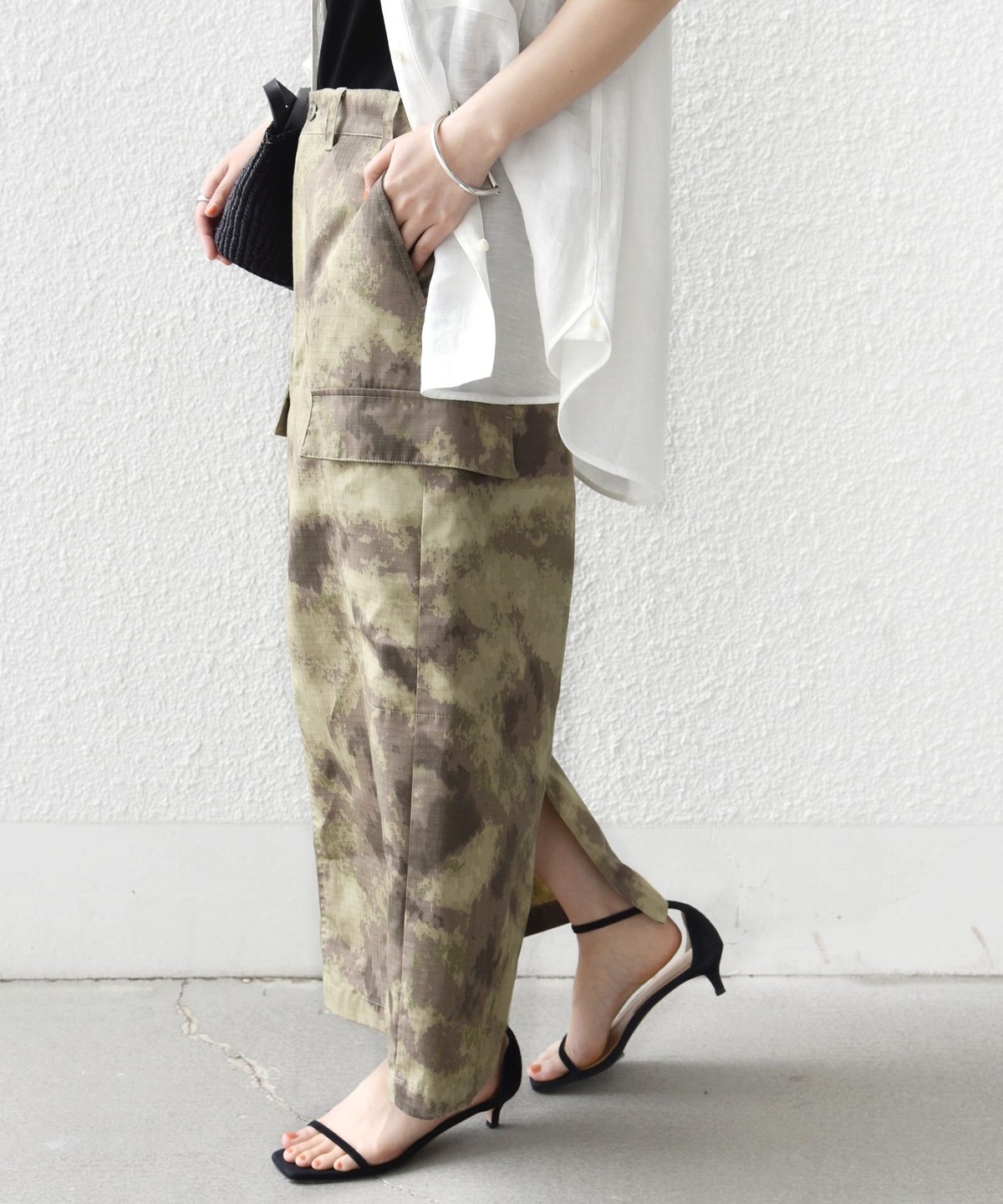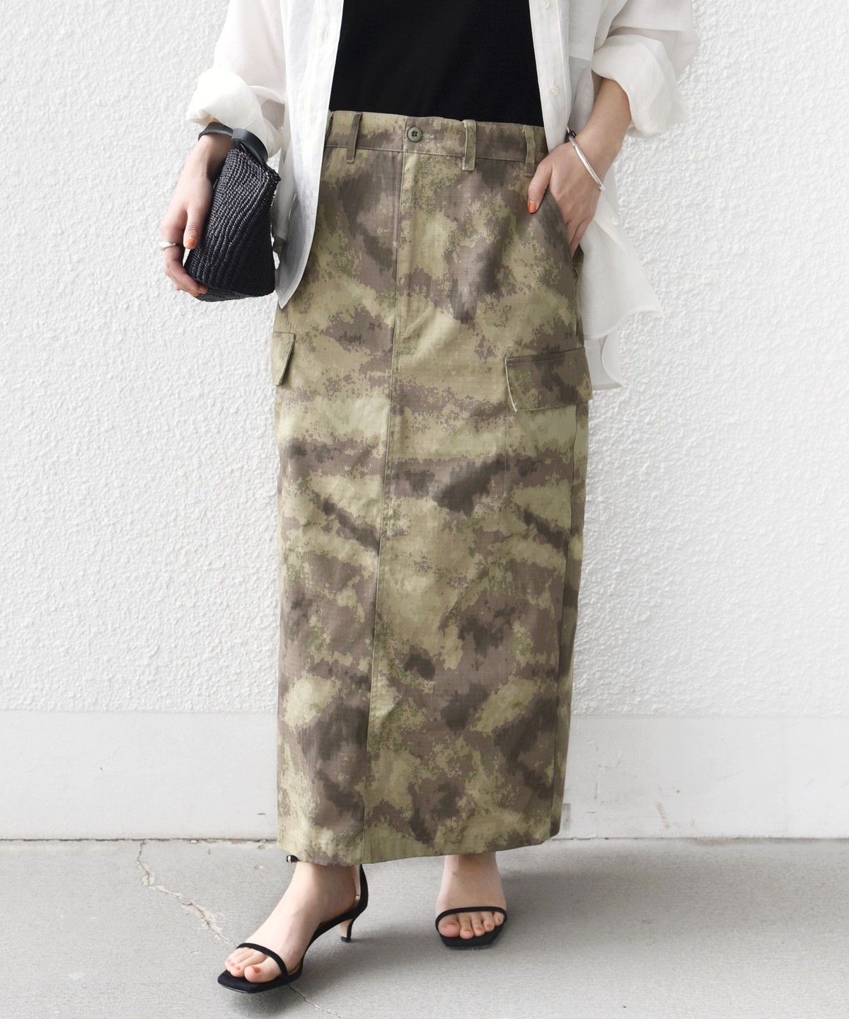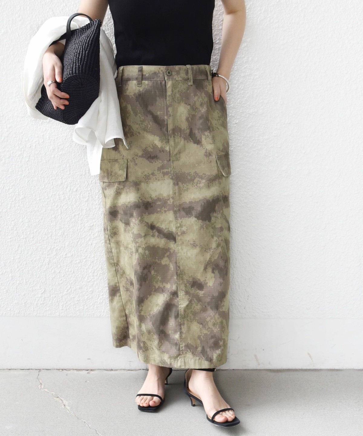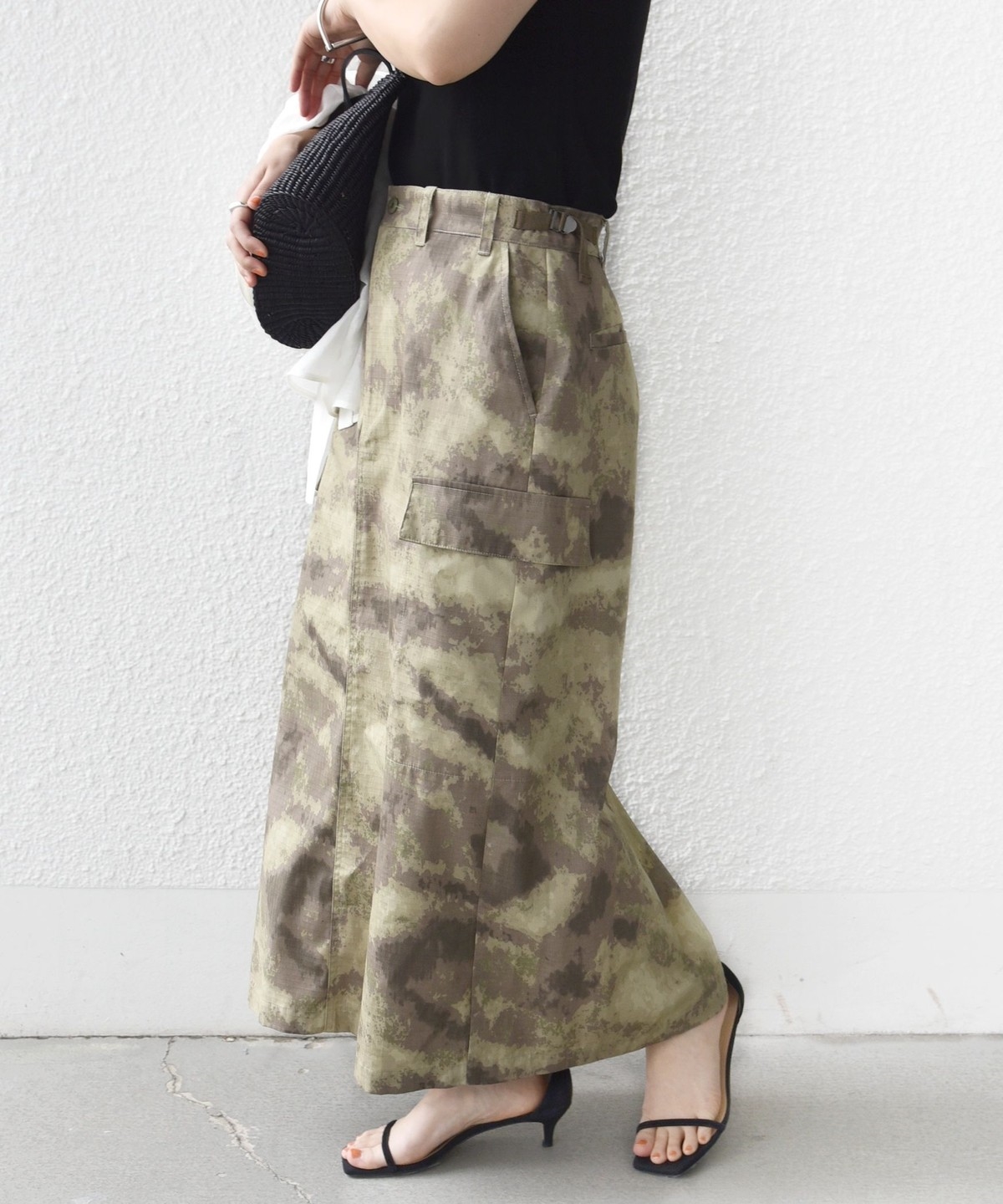 実用性とトレンド感を兼ね備えた大人のカモ柄カーゴスカート