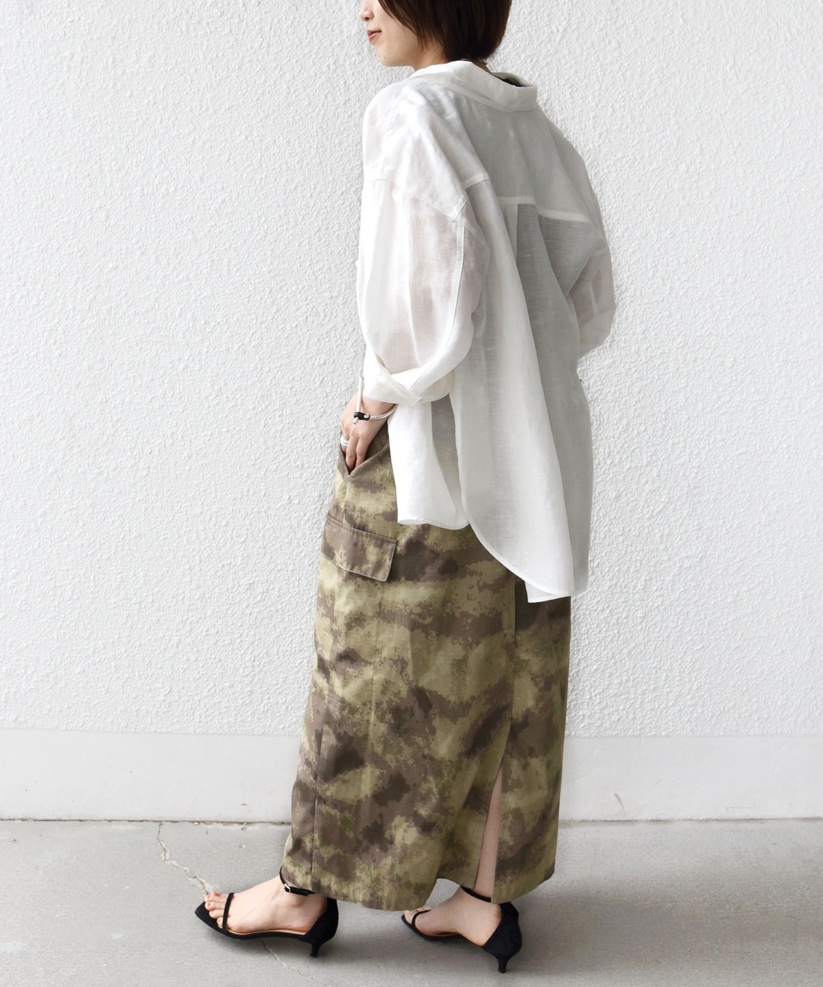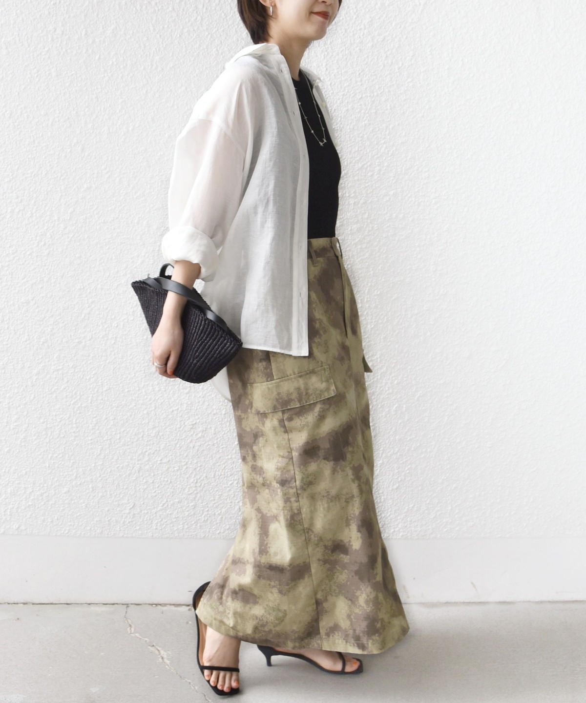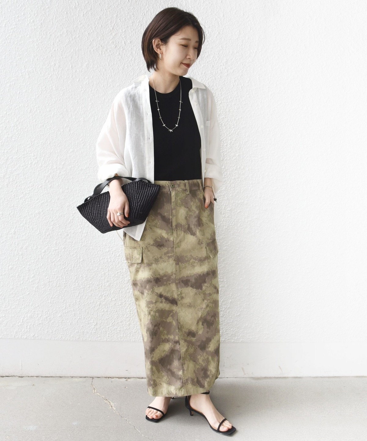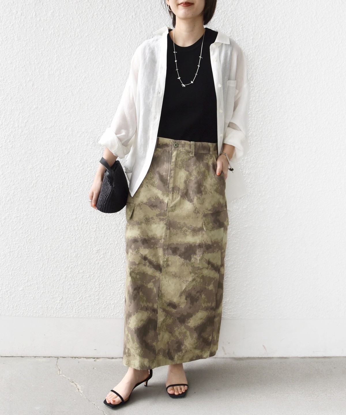 実用性とトレンド感を兼ね備えた大人のカモ柄カーゴスカート