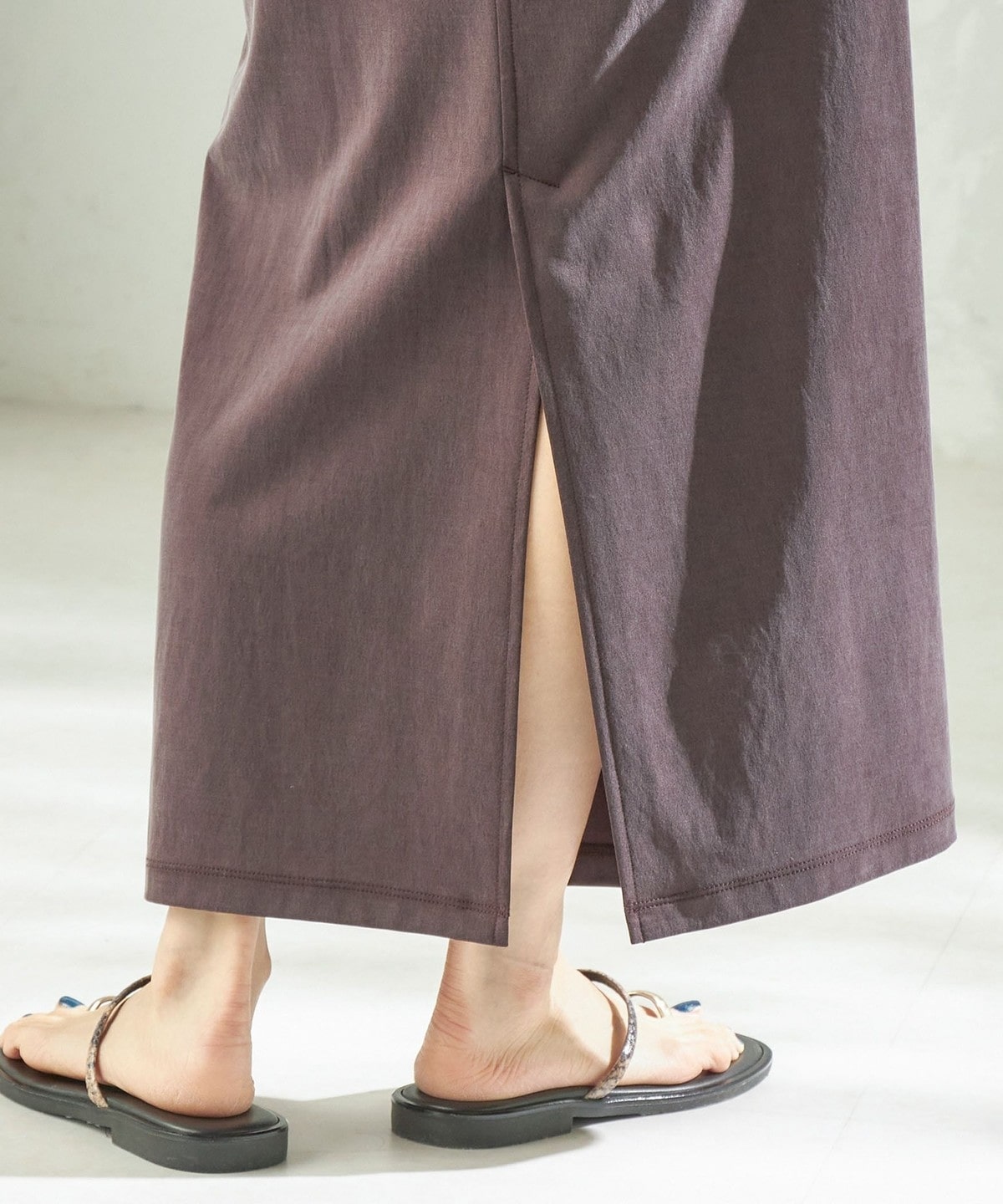 ベンツあきは、歩いた時にスリットあきより足が見えにくい部分も嬉しいポイントです。