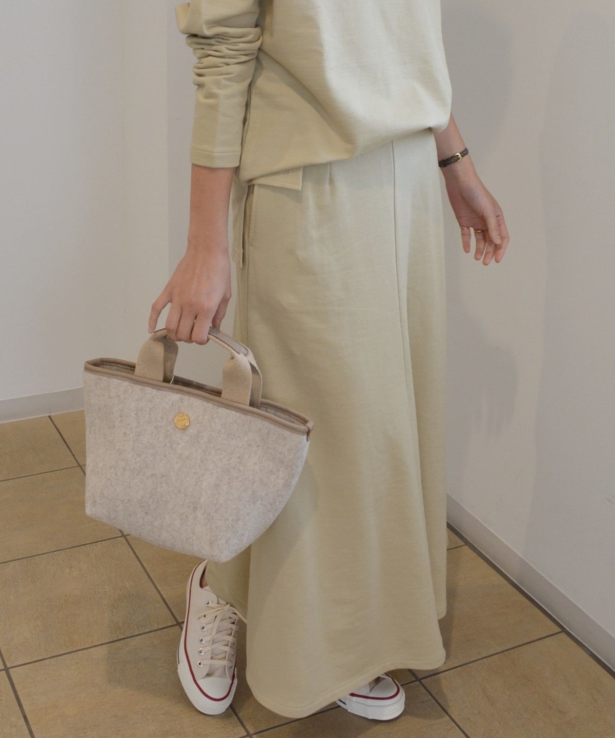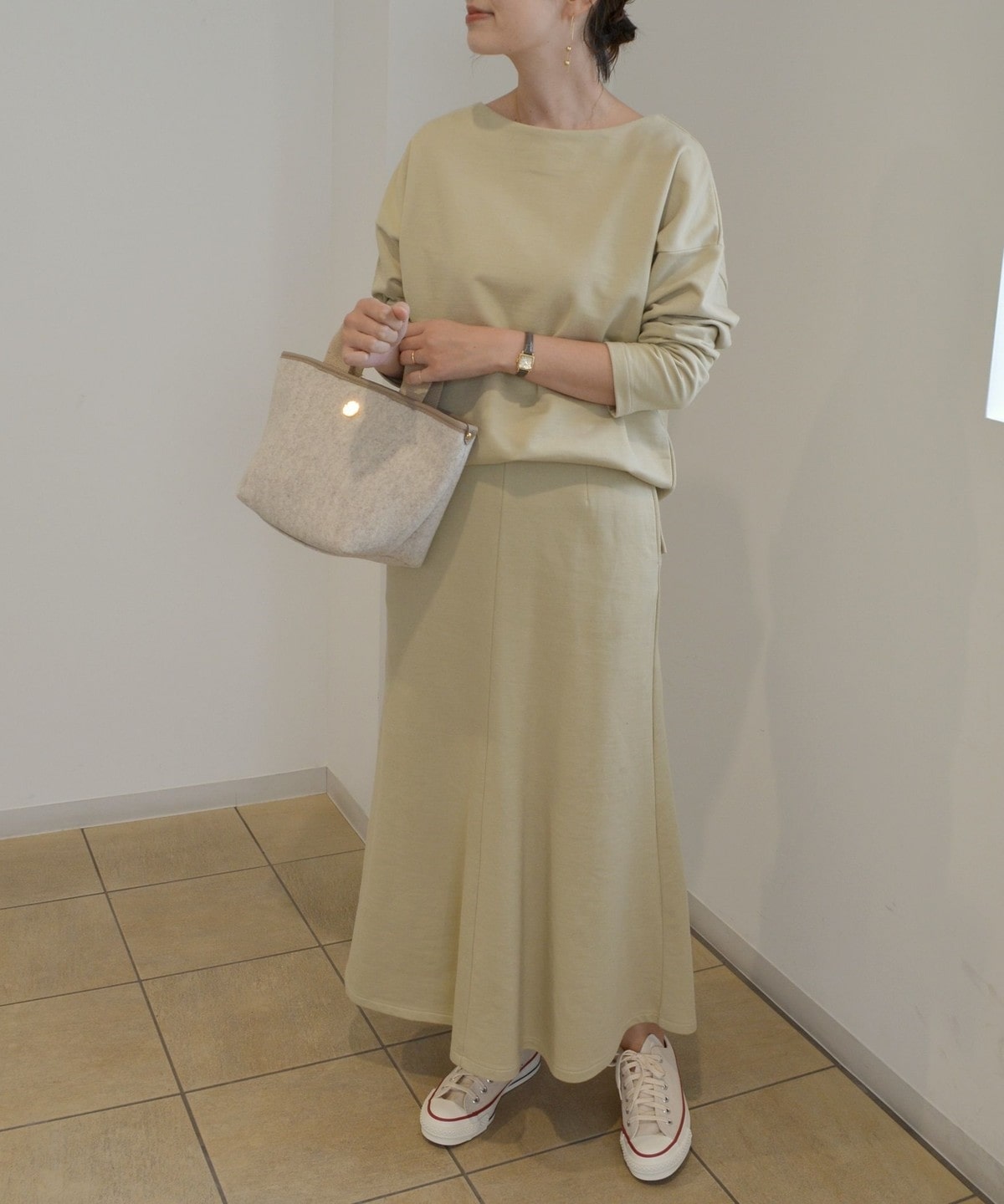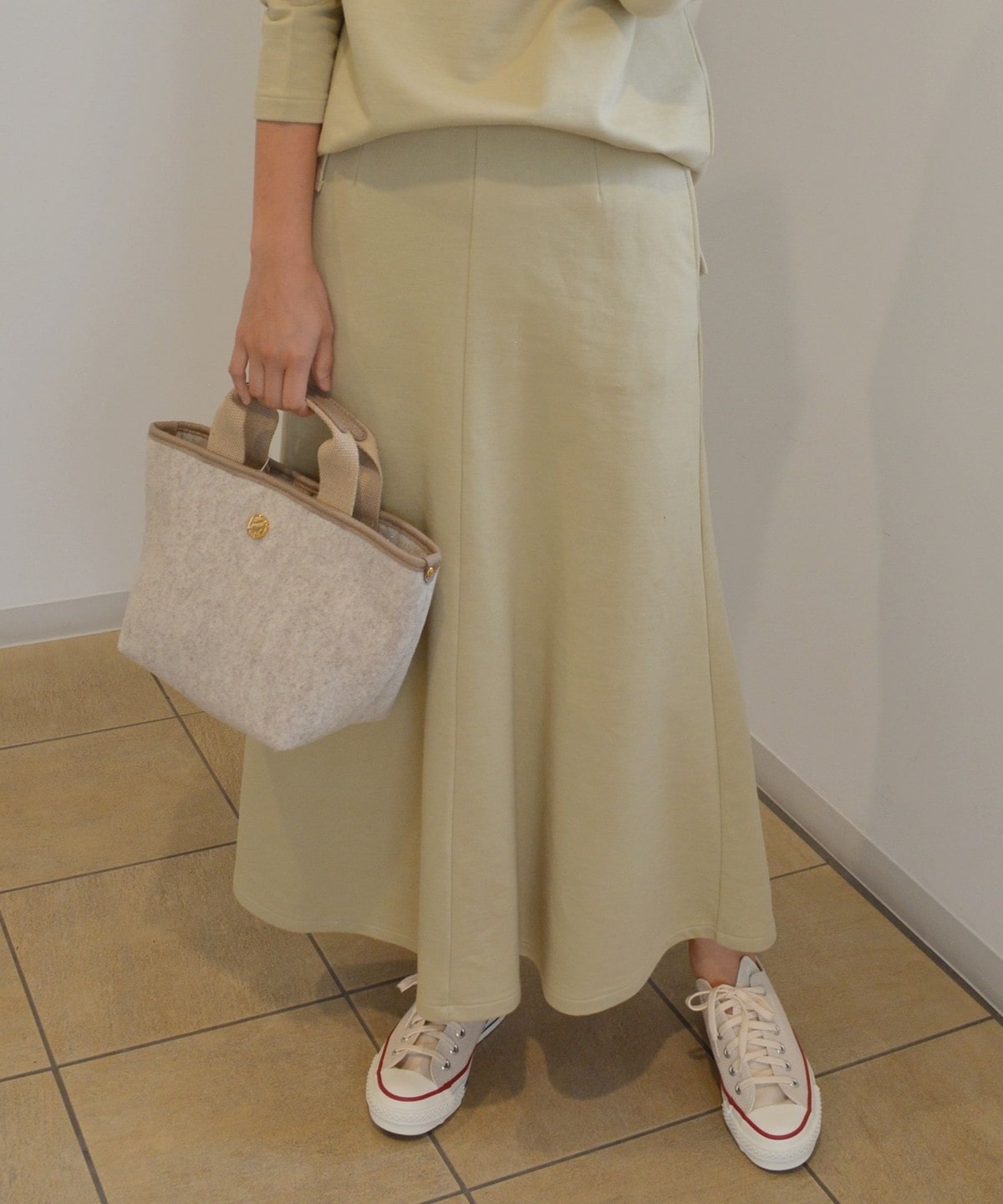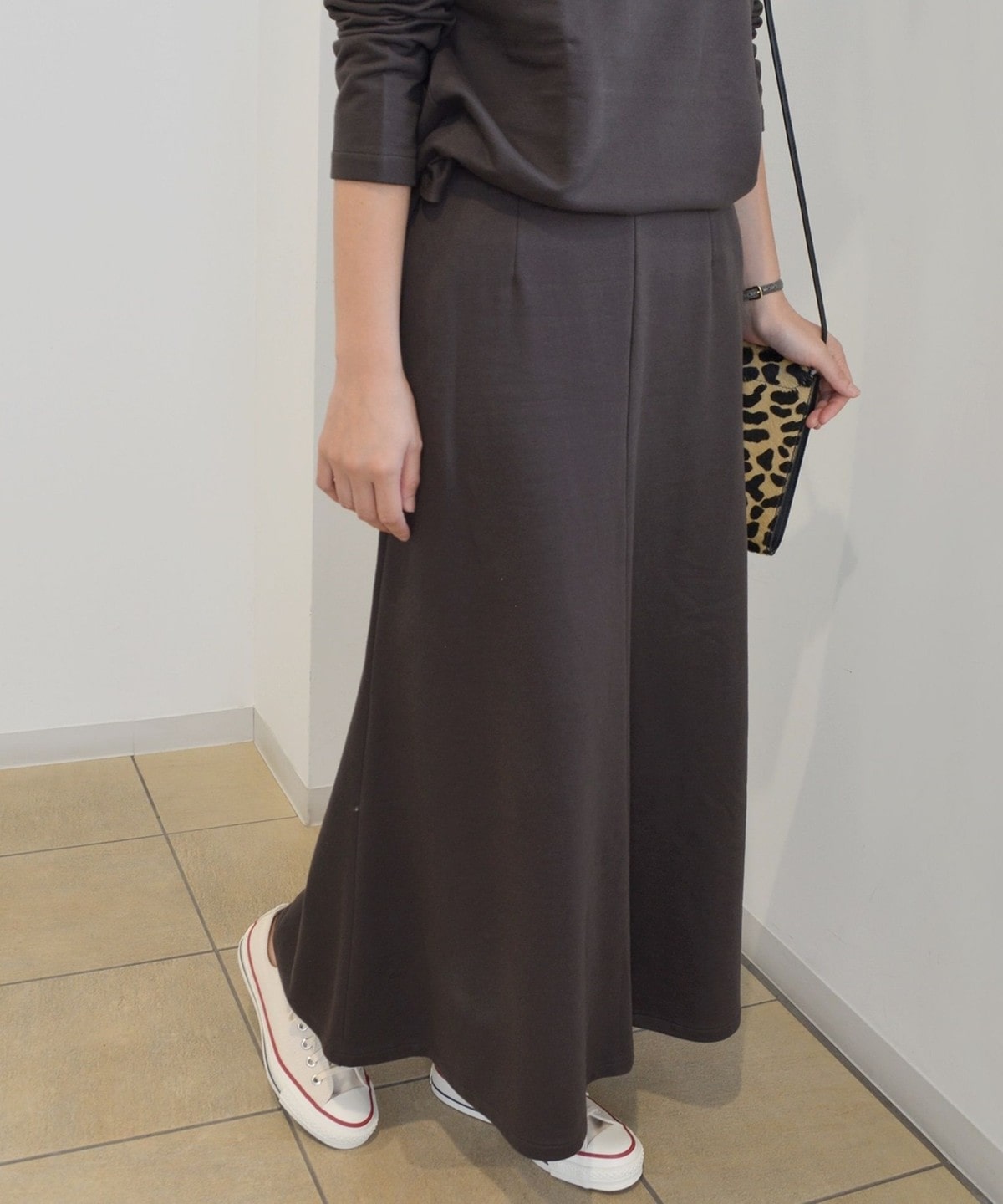 シンプルなデザインだからこそシルエットにこだわった、大人の女性にも着用して頂けるスウェットスカートです。