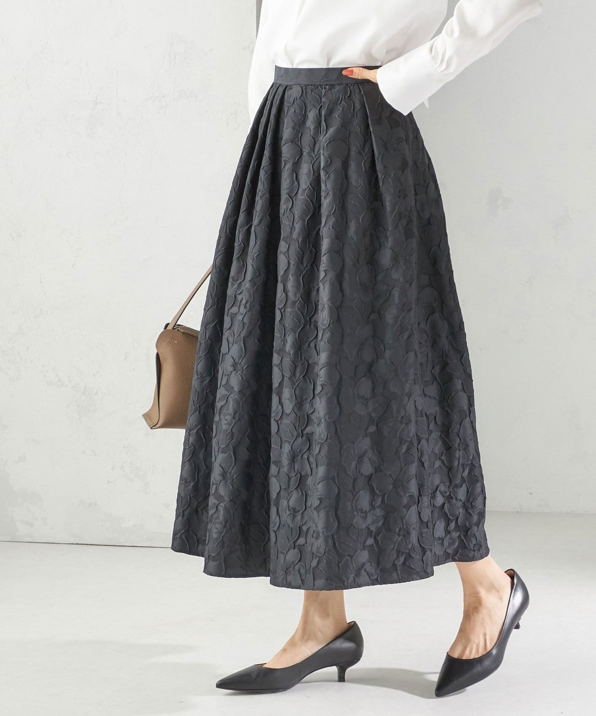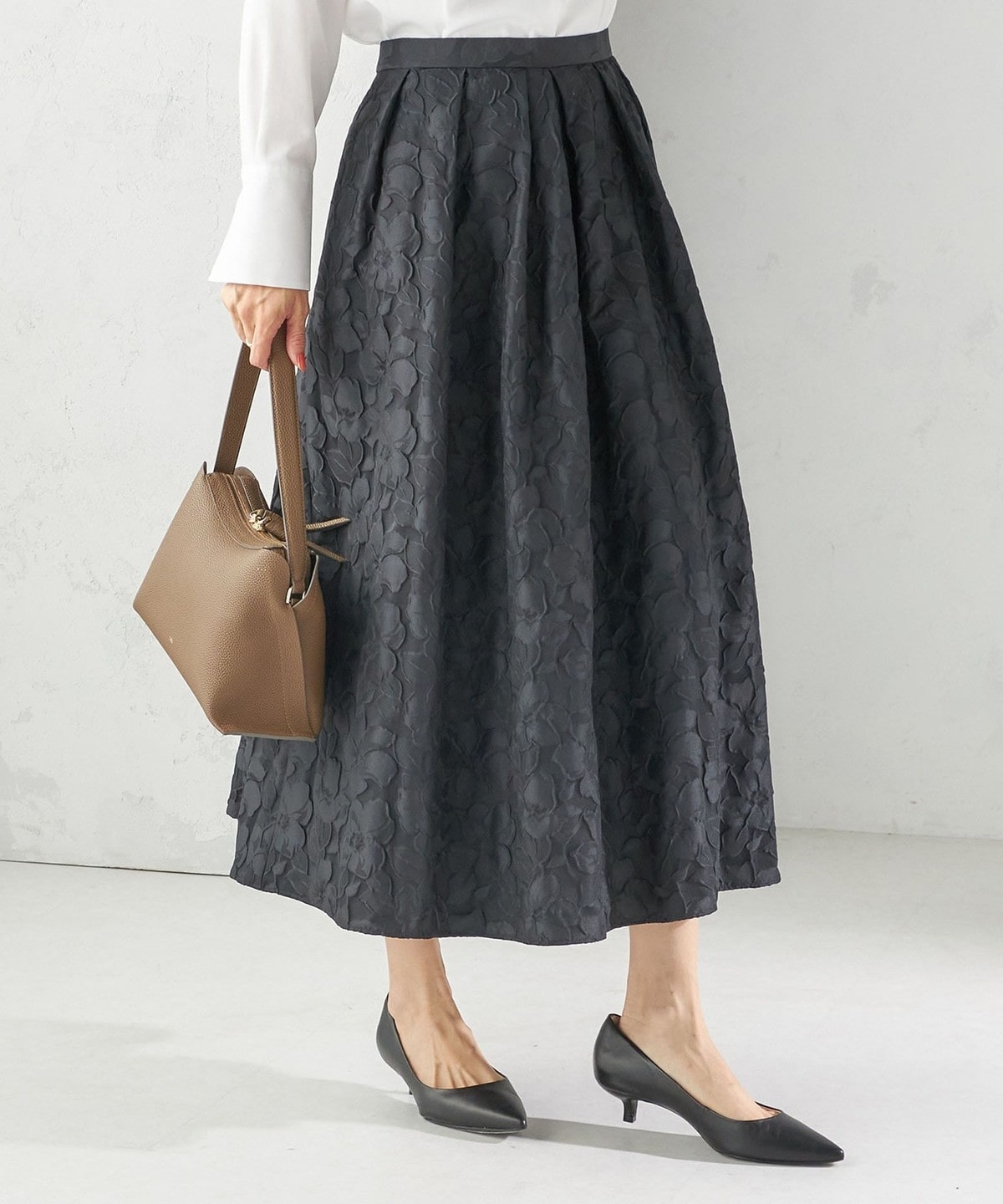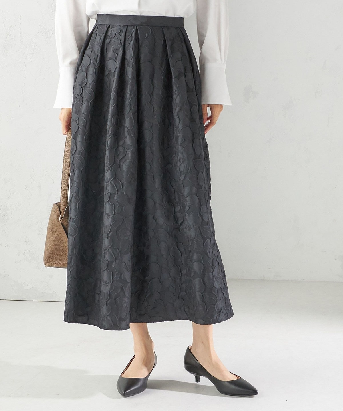 〈手洗い可能〉膨れ ジャカード タック フレア スカート