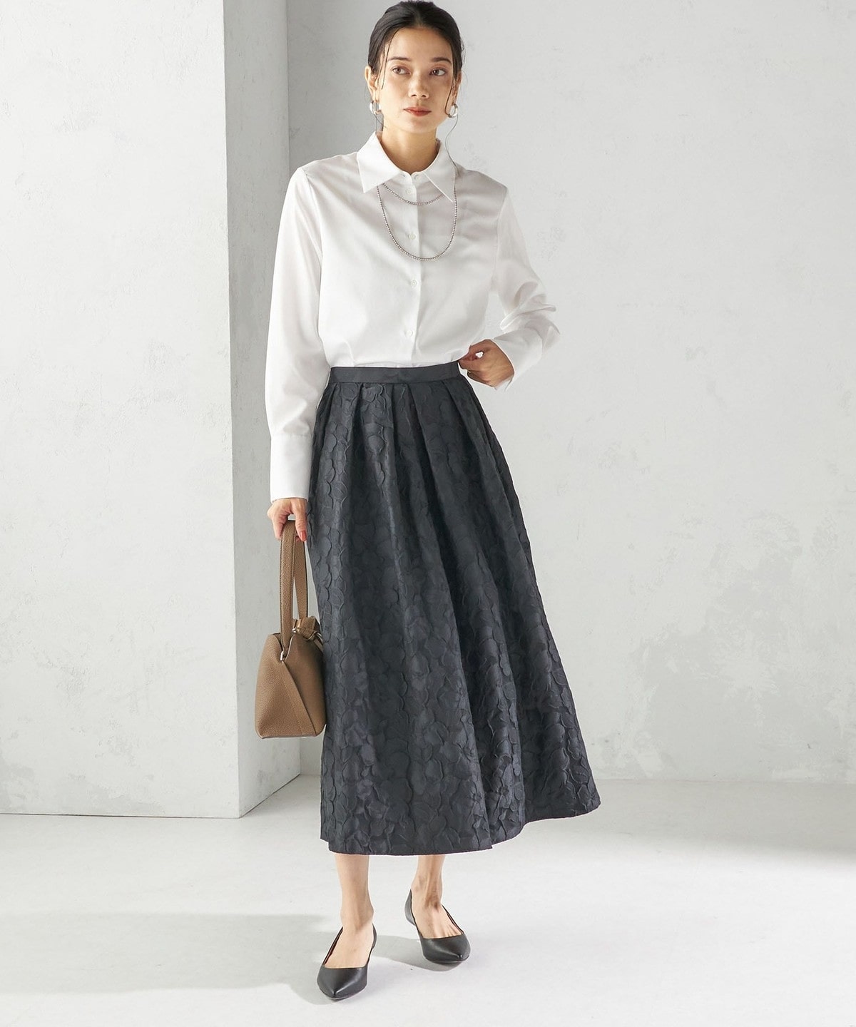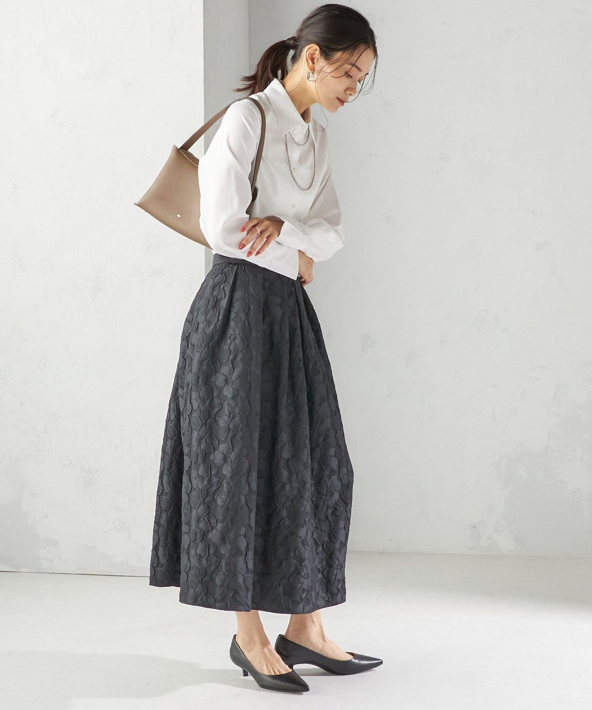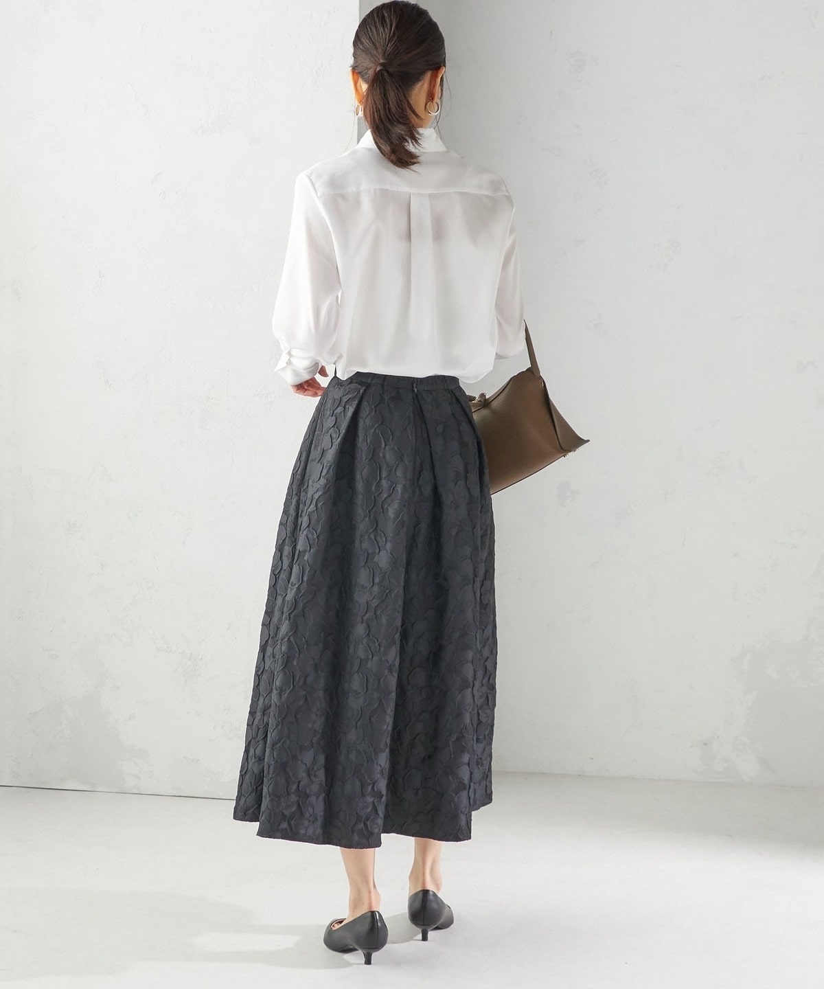 〈手洗い可能〉膨れ ジャカード タック フレア スカート