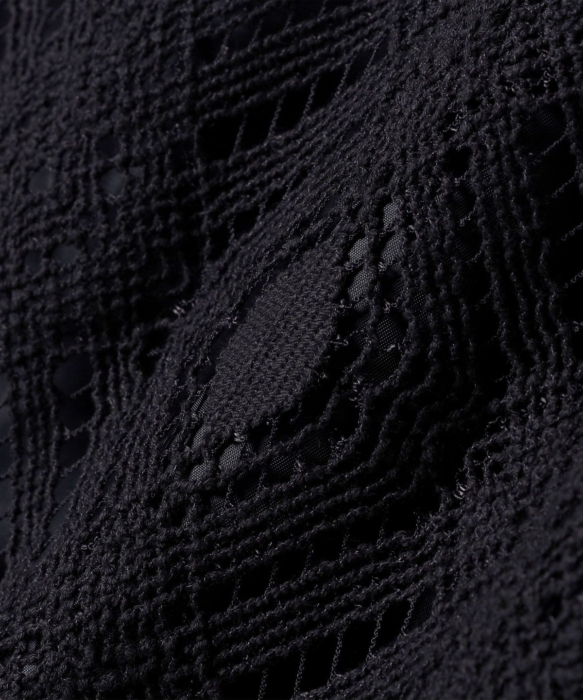 幾何柄のコードレースを使用し、糸の太さと透け感で凹凸感のあるレース生地に仕上げました。