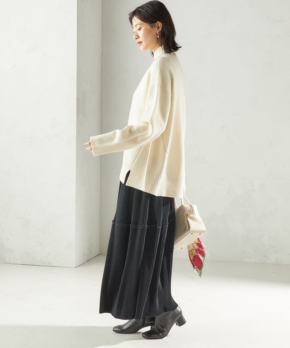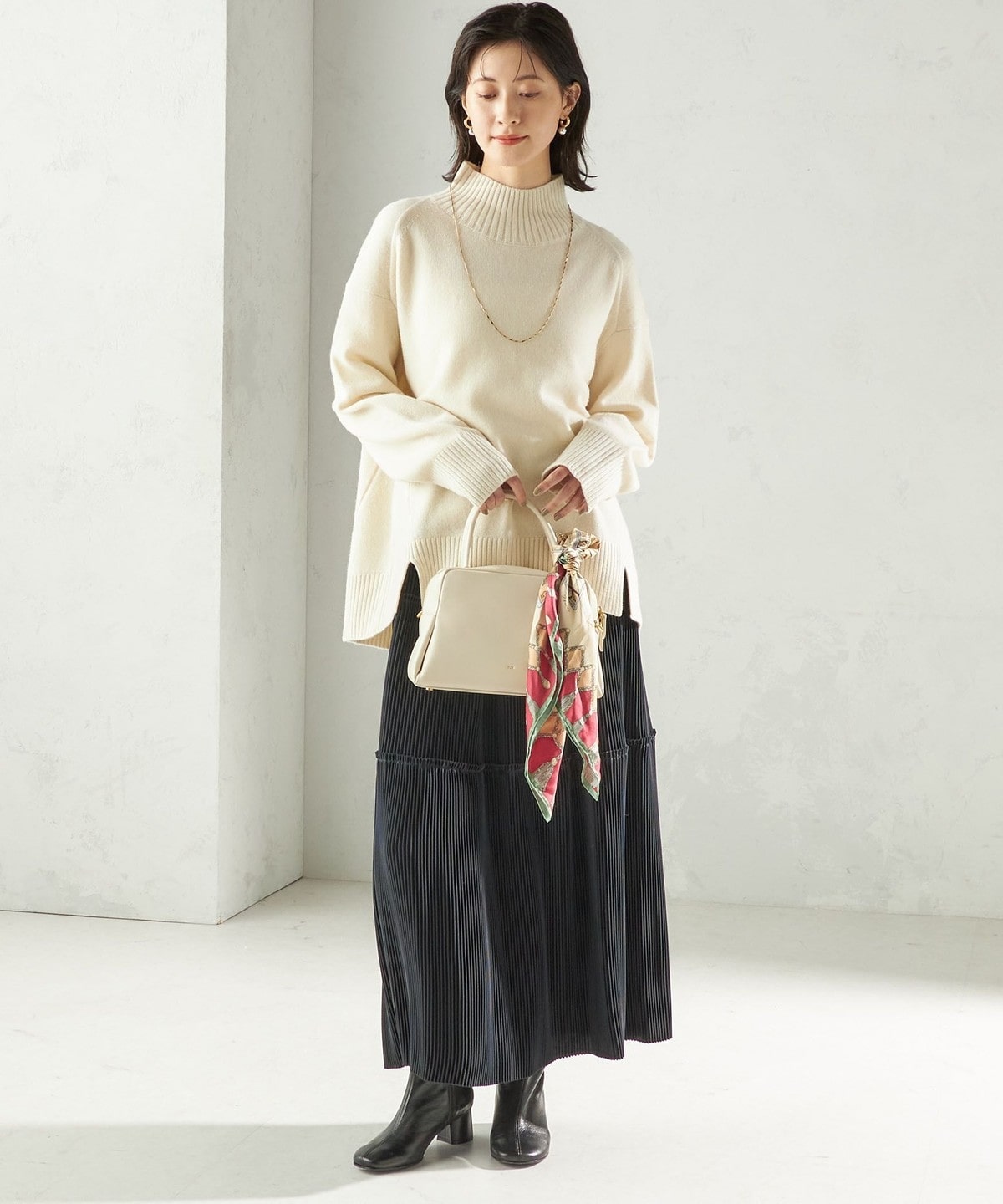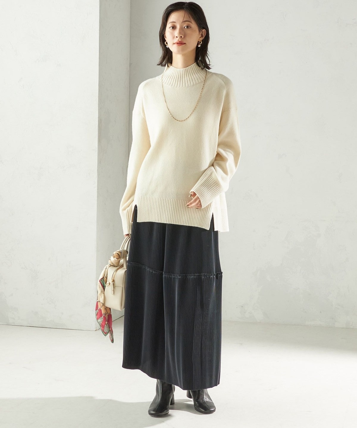 ブーツでモードに、パンプスでフェミニンにと、足元のアレンジも自在です。