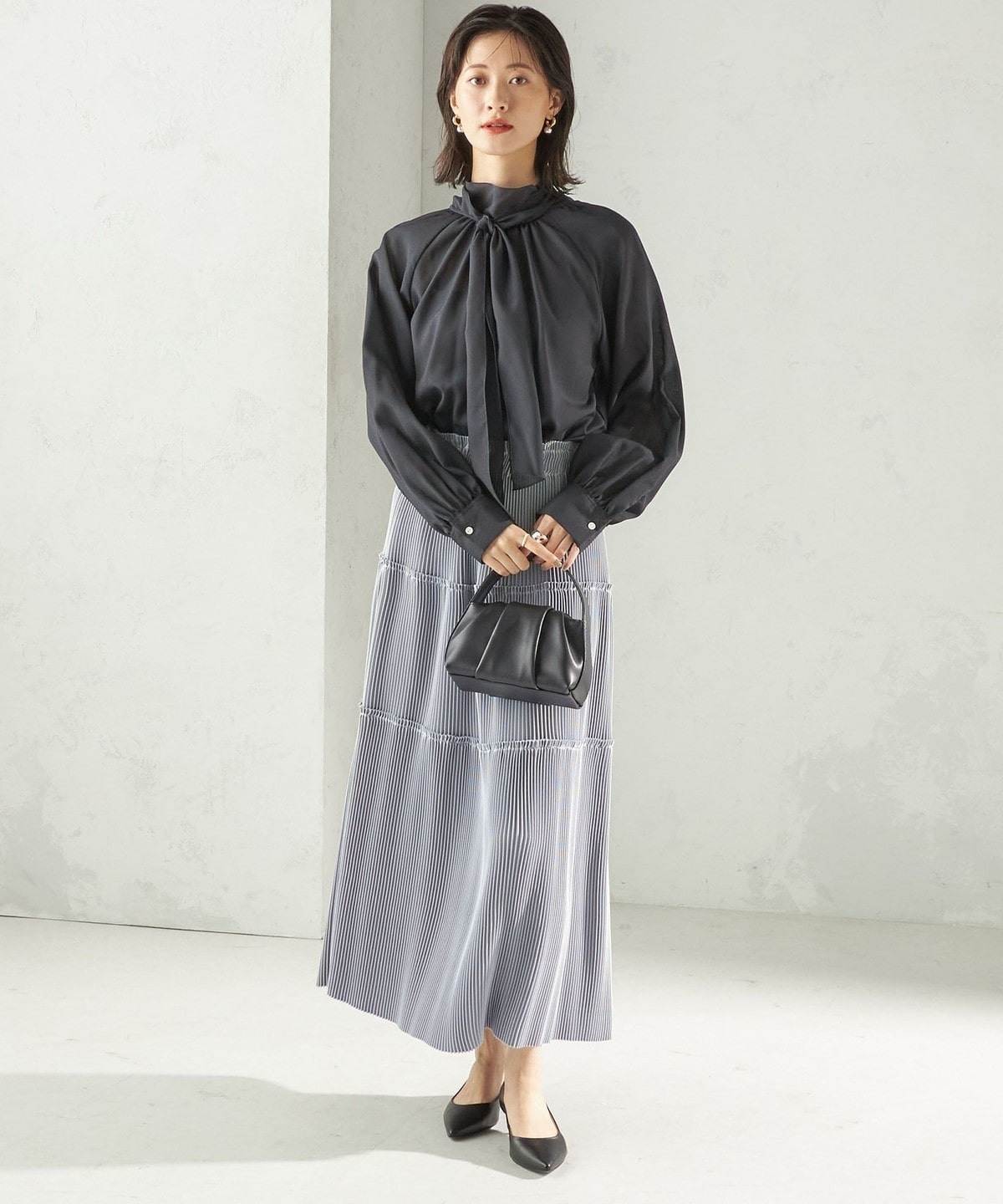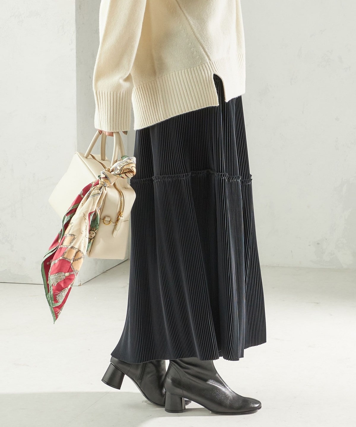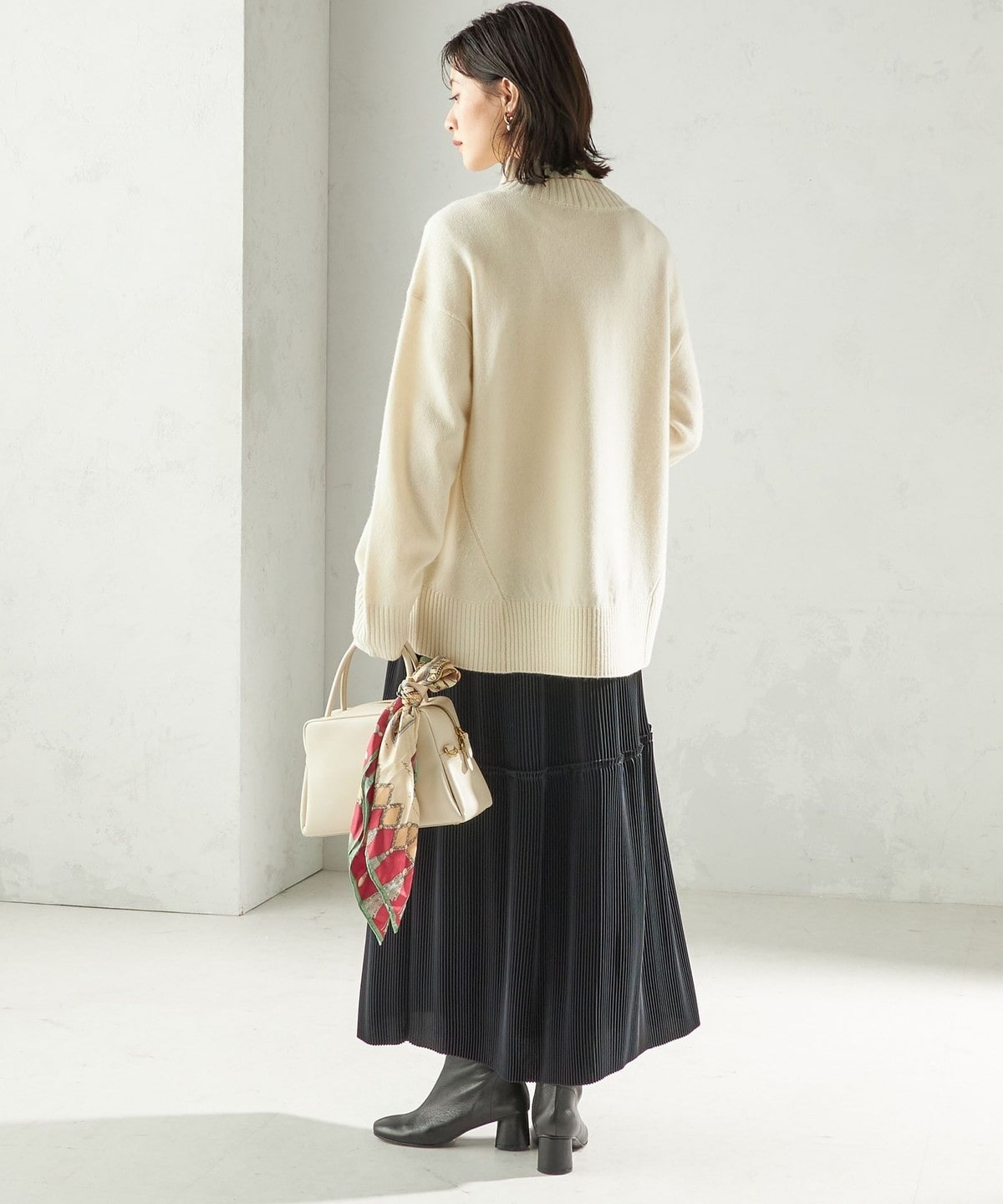 ブーツでモードに、パンプスでフェミニンにと、足元のアレンジも自在です。
