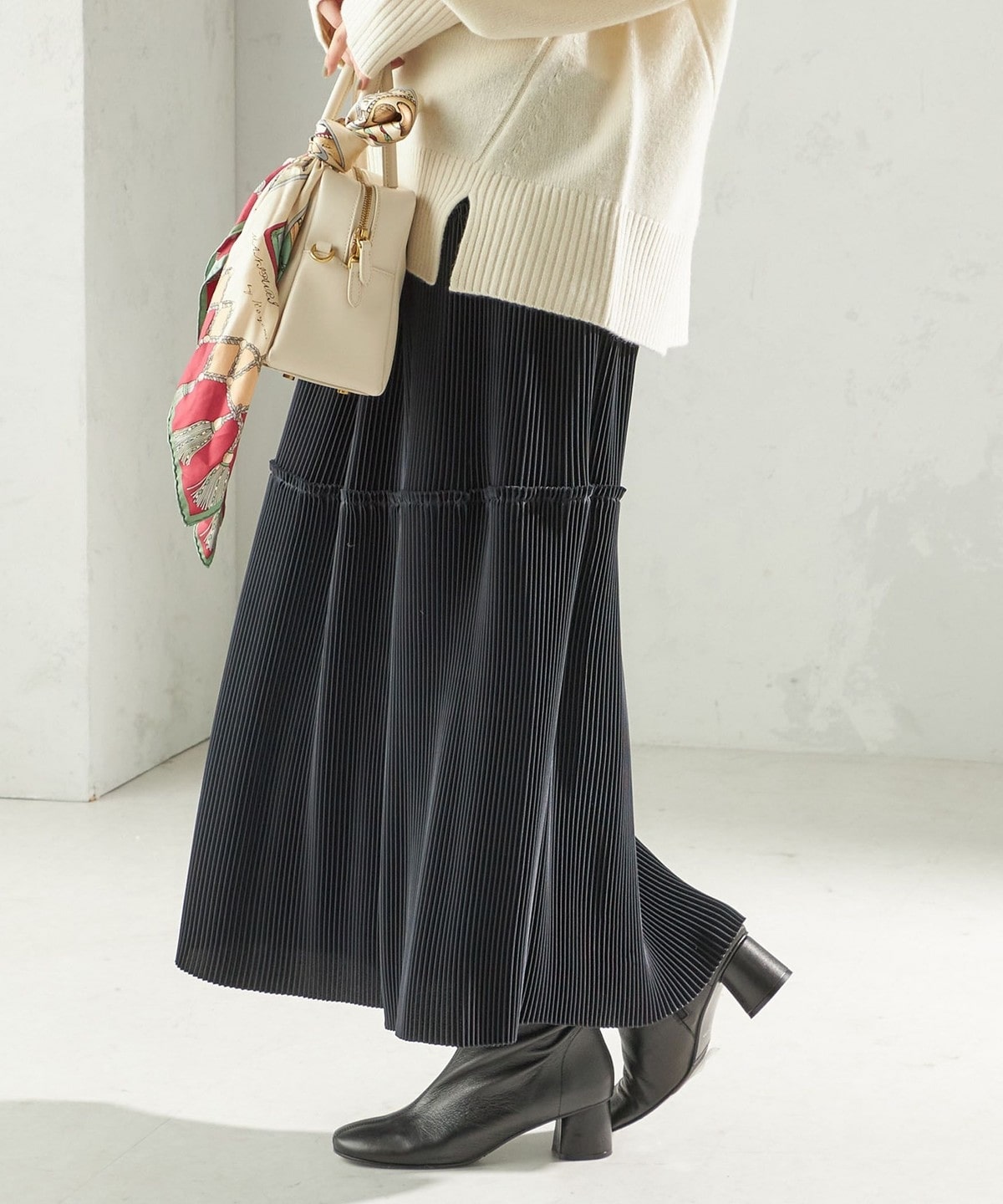 動くたび女性らしさを纏うプリーツスカート