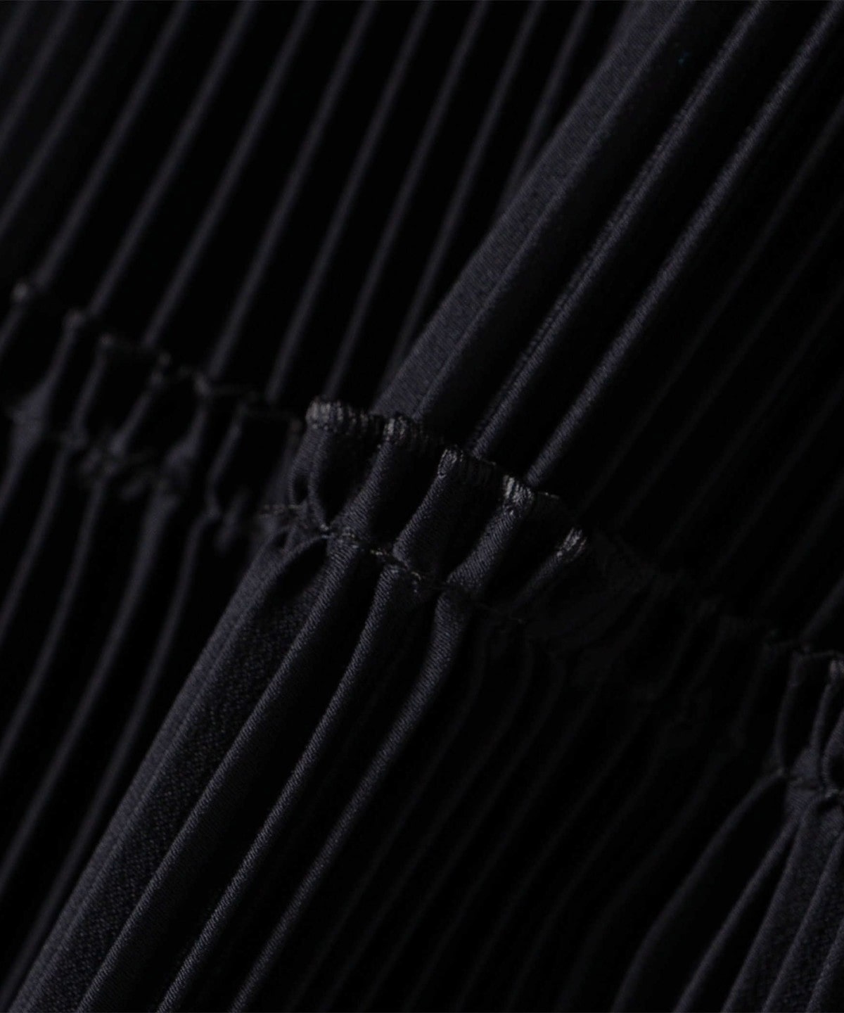 プリーツ加工を施すことで、地厚な素材感に仕上がり透け感も軽減しています。