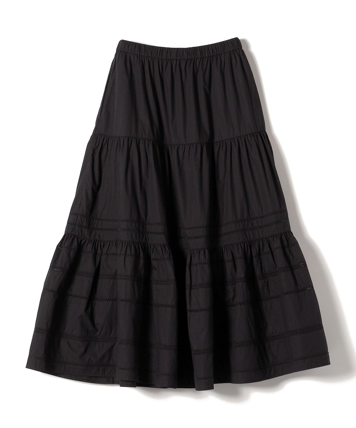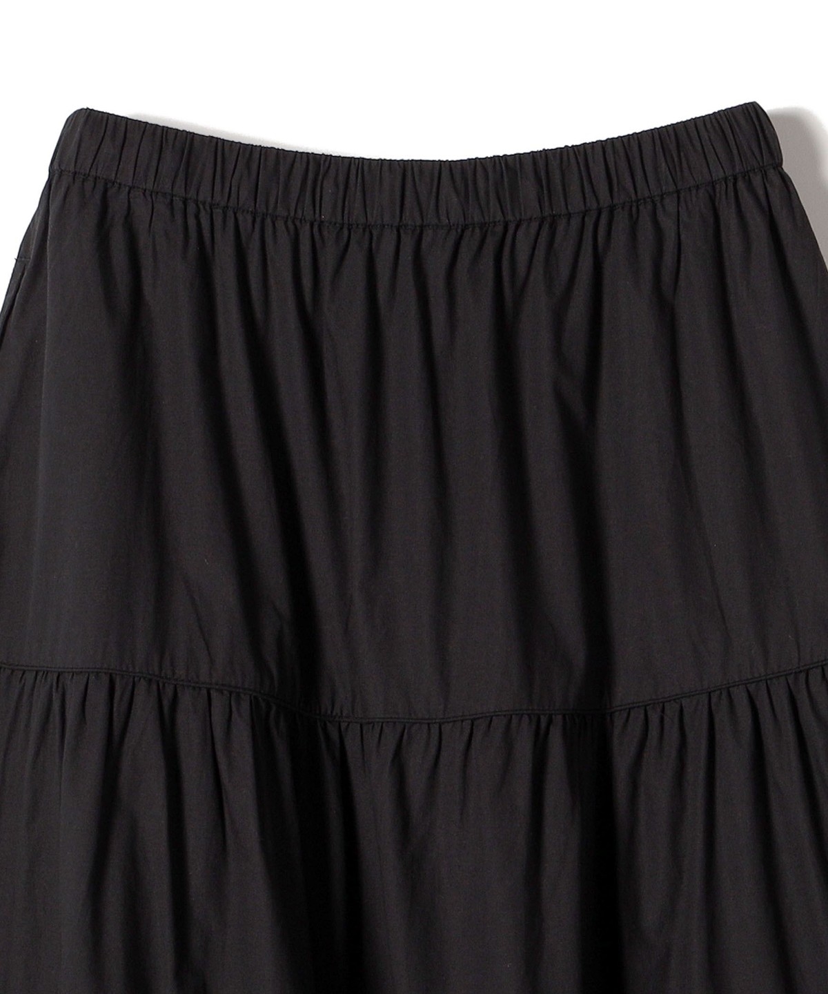 50’Sポプリン(薄手で密度の高い、上品な光沢のある綿生地)質感を活かした、立体的でボリューム感が特徴のティアードスカート。