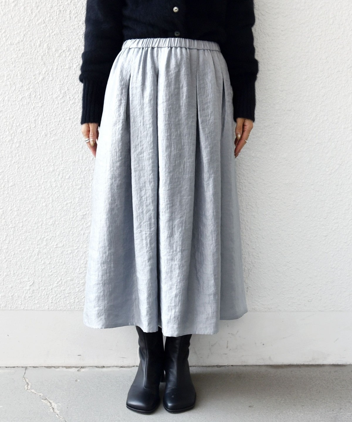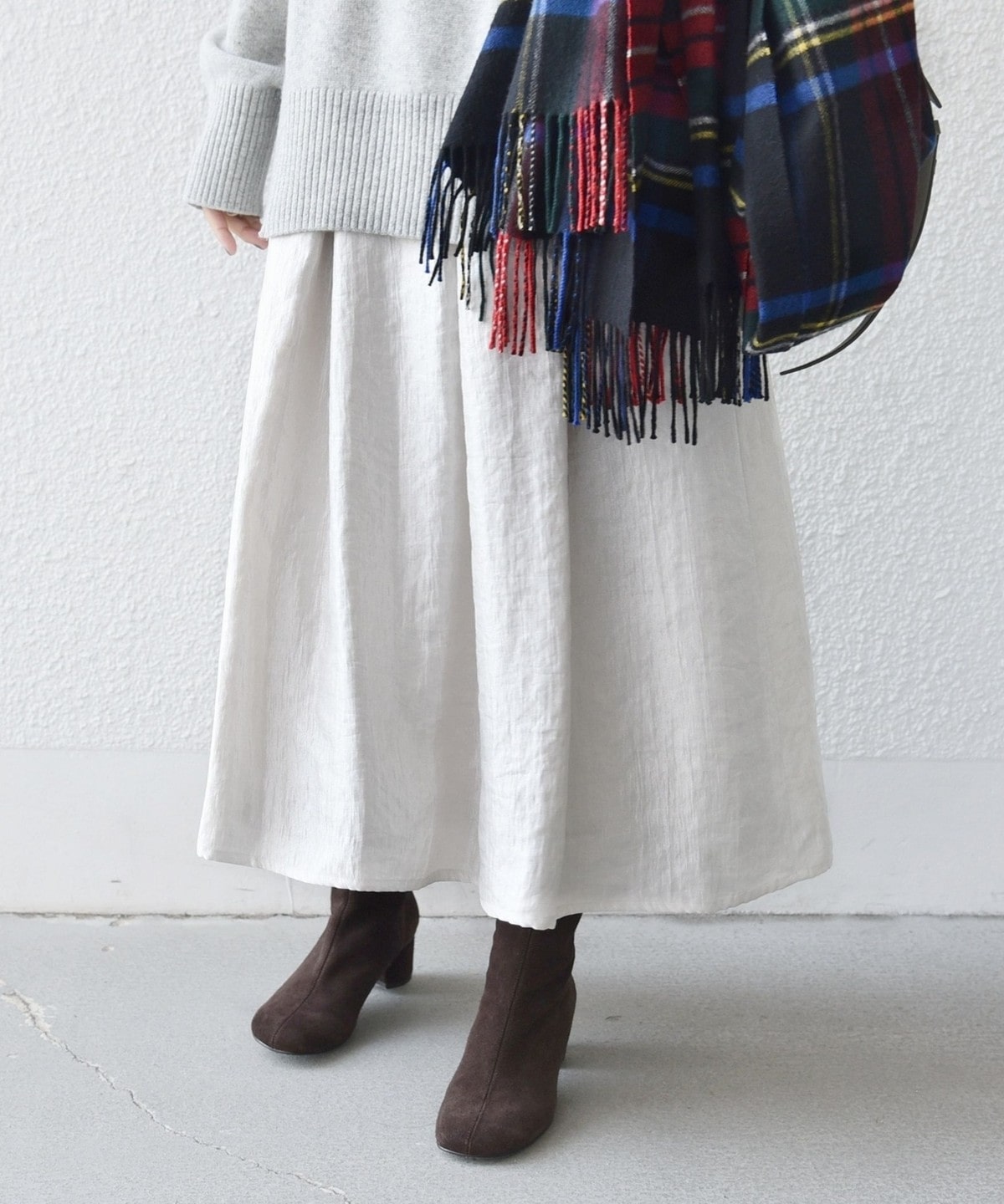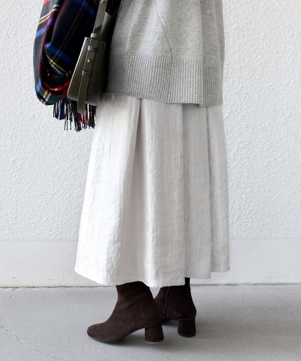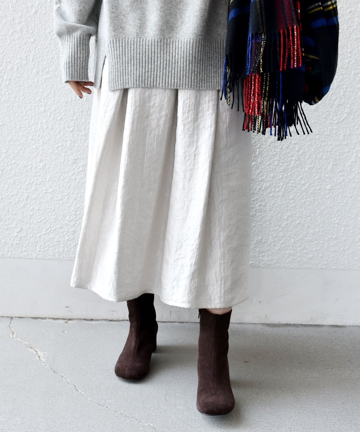 ブーツやスニーカーにも合わせやすい丈感でお作りしました。