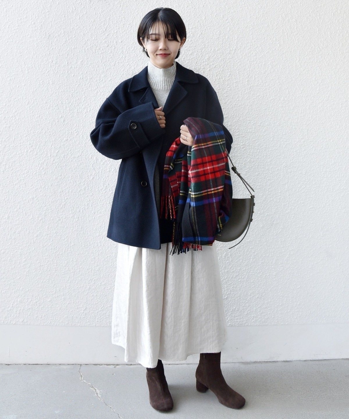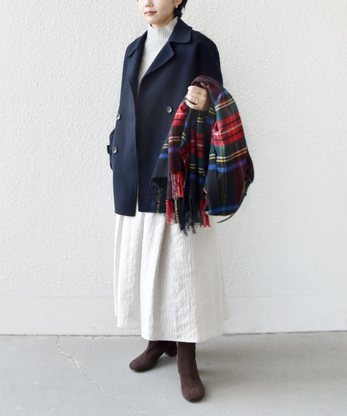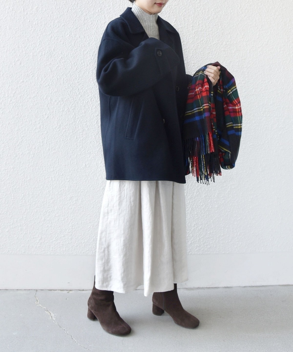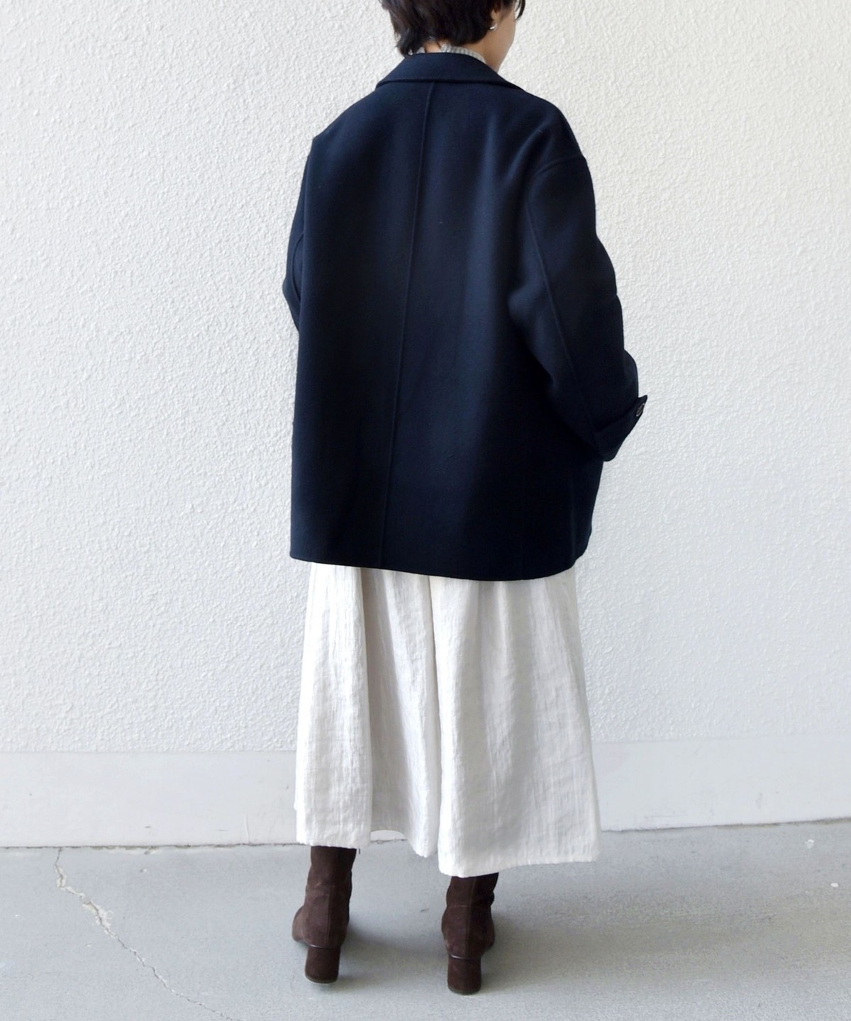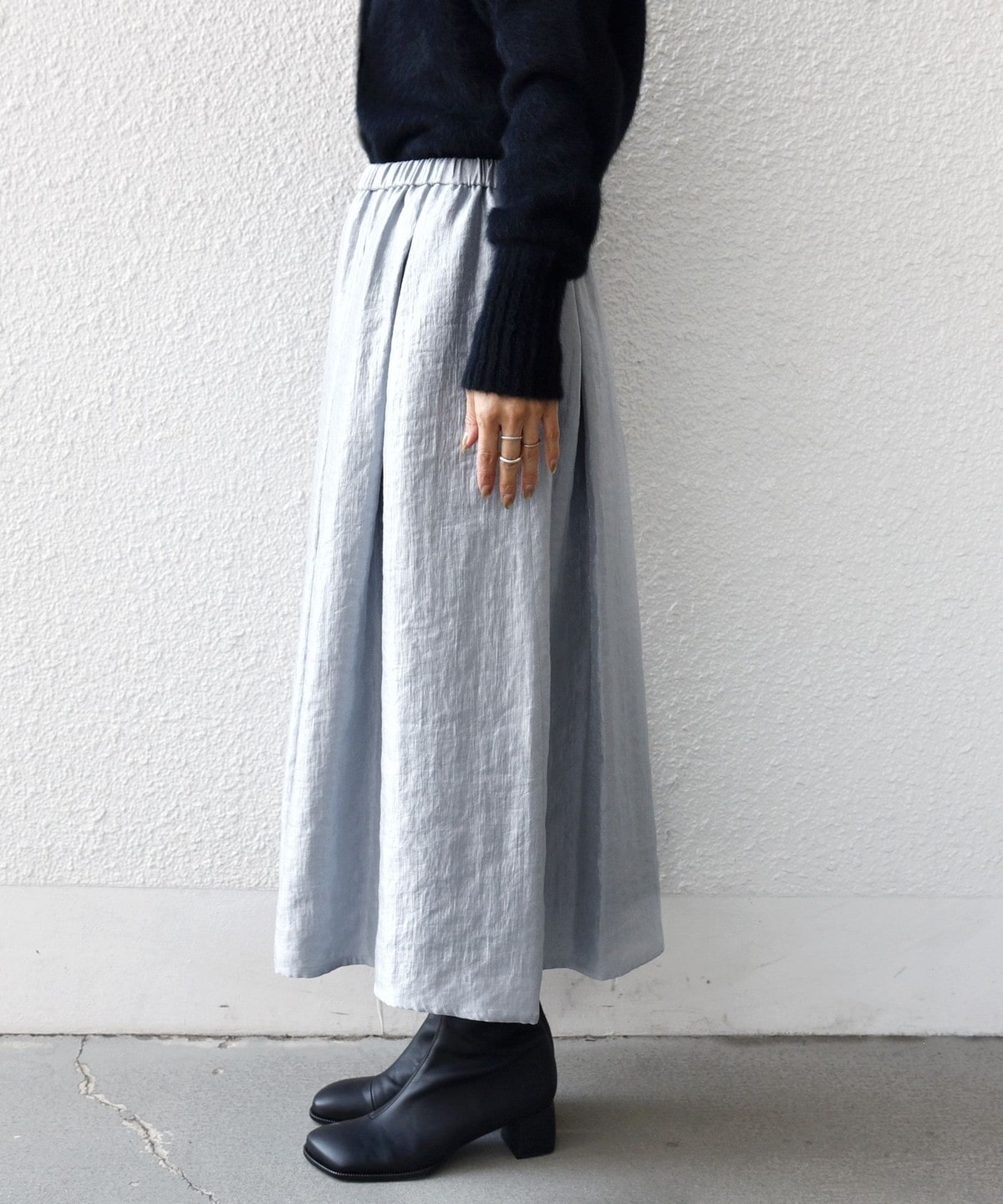ブーツやスニーカーにも合わせやすい丈感でお作りしました。
