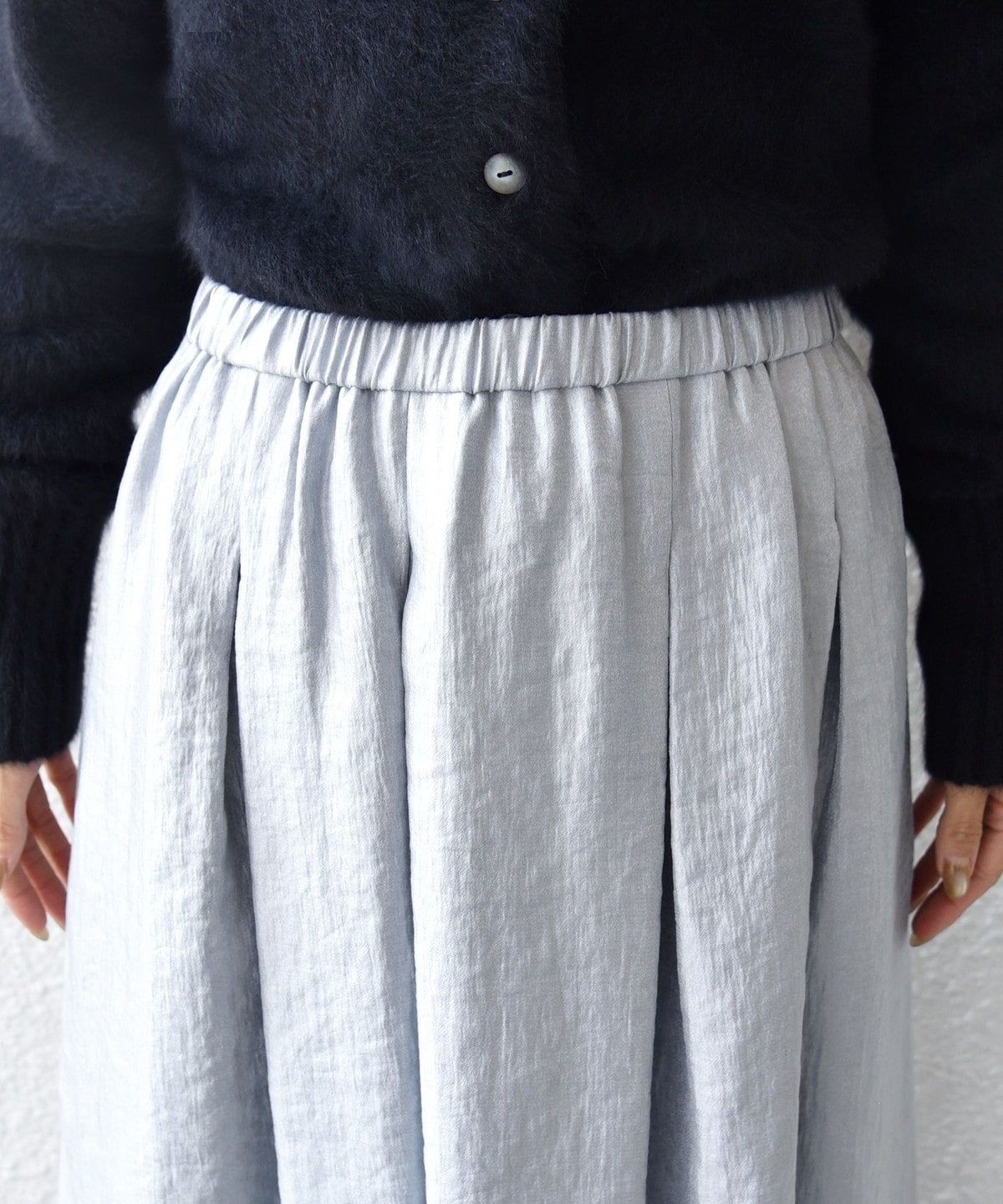 おなか周りはタック&ギャザーで優しくカバー。