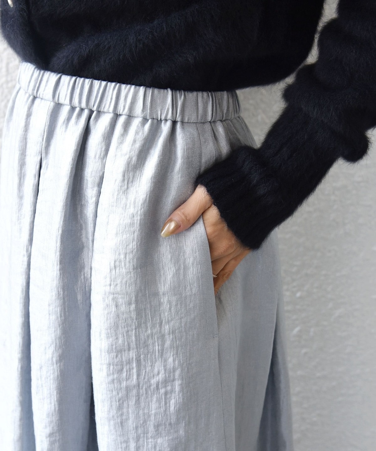 ウェストはぐるりゴムを入れた仕様でリラックス感のある着心地。