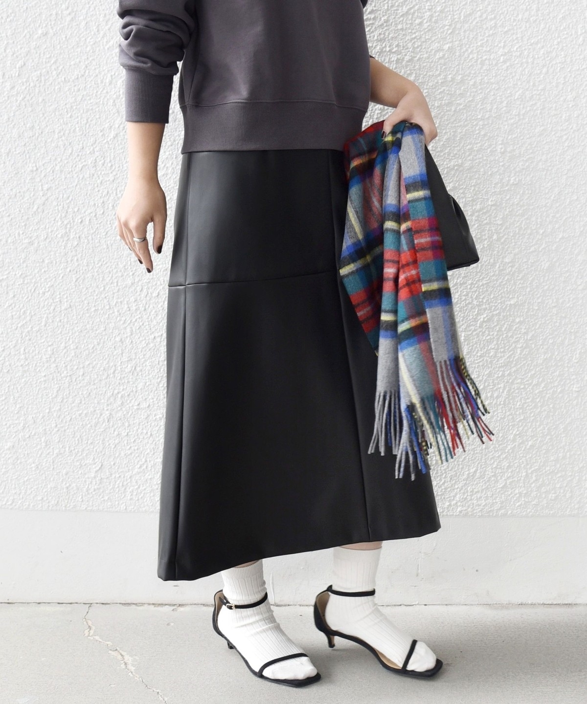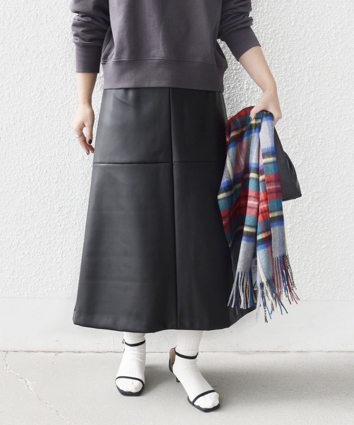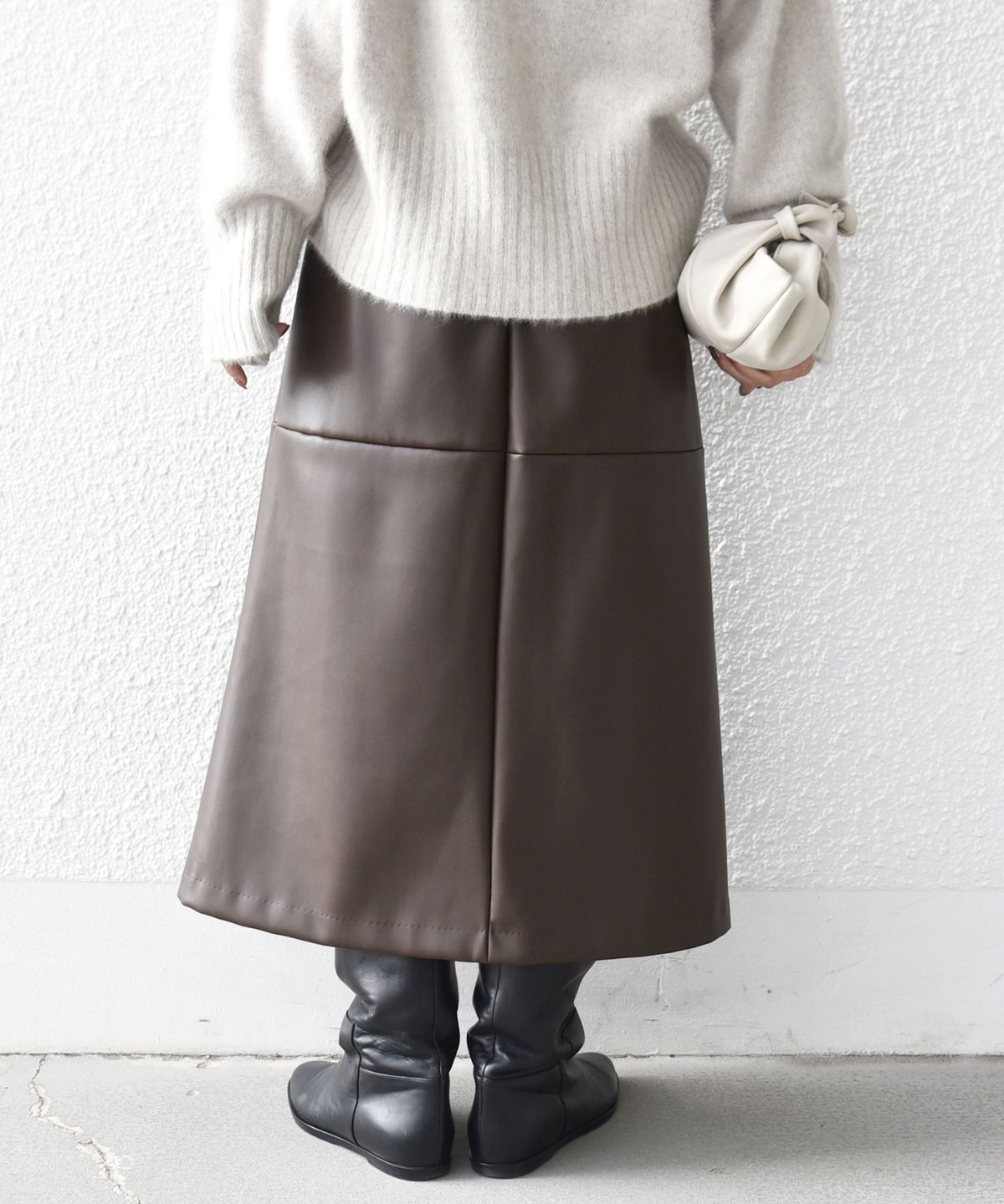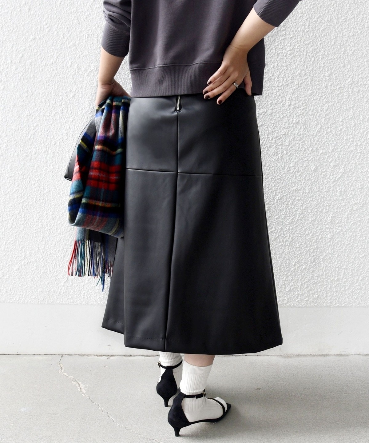 〈手洗い可能〉合成皮革 ウエスト ゴム スカート