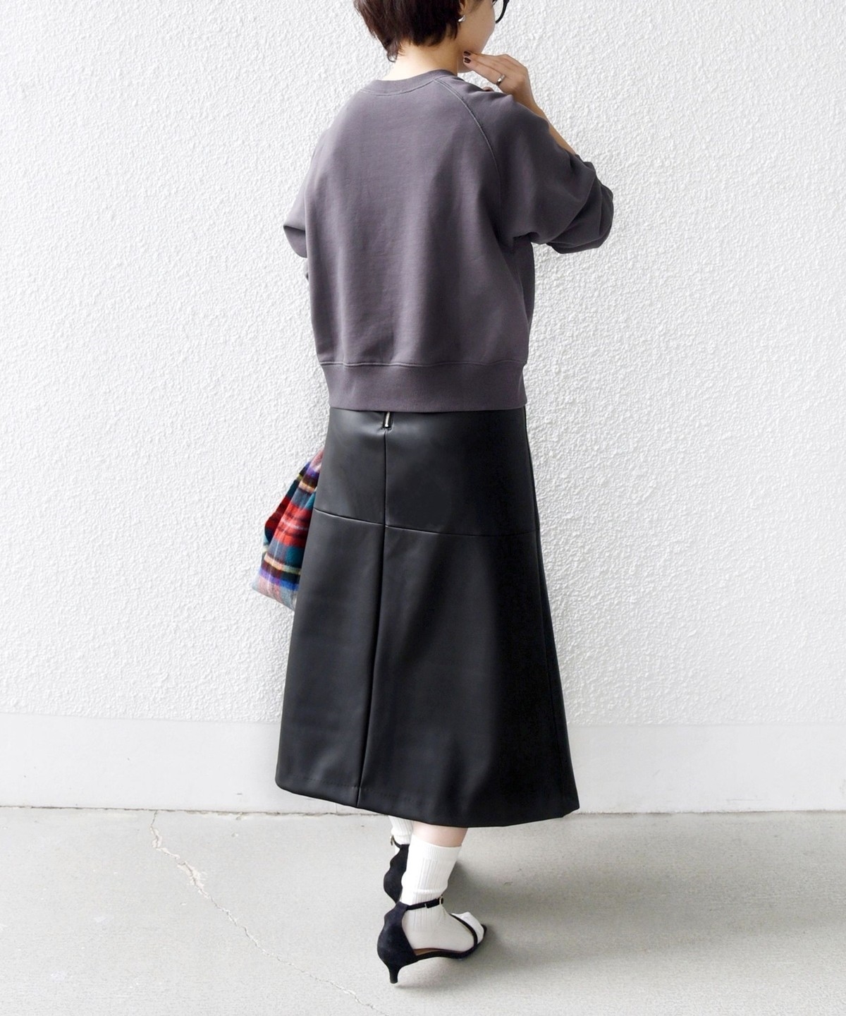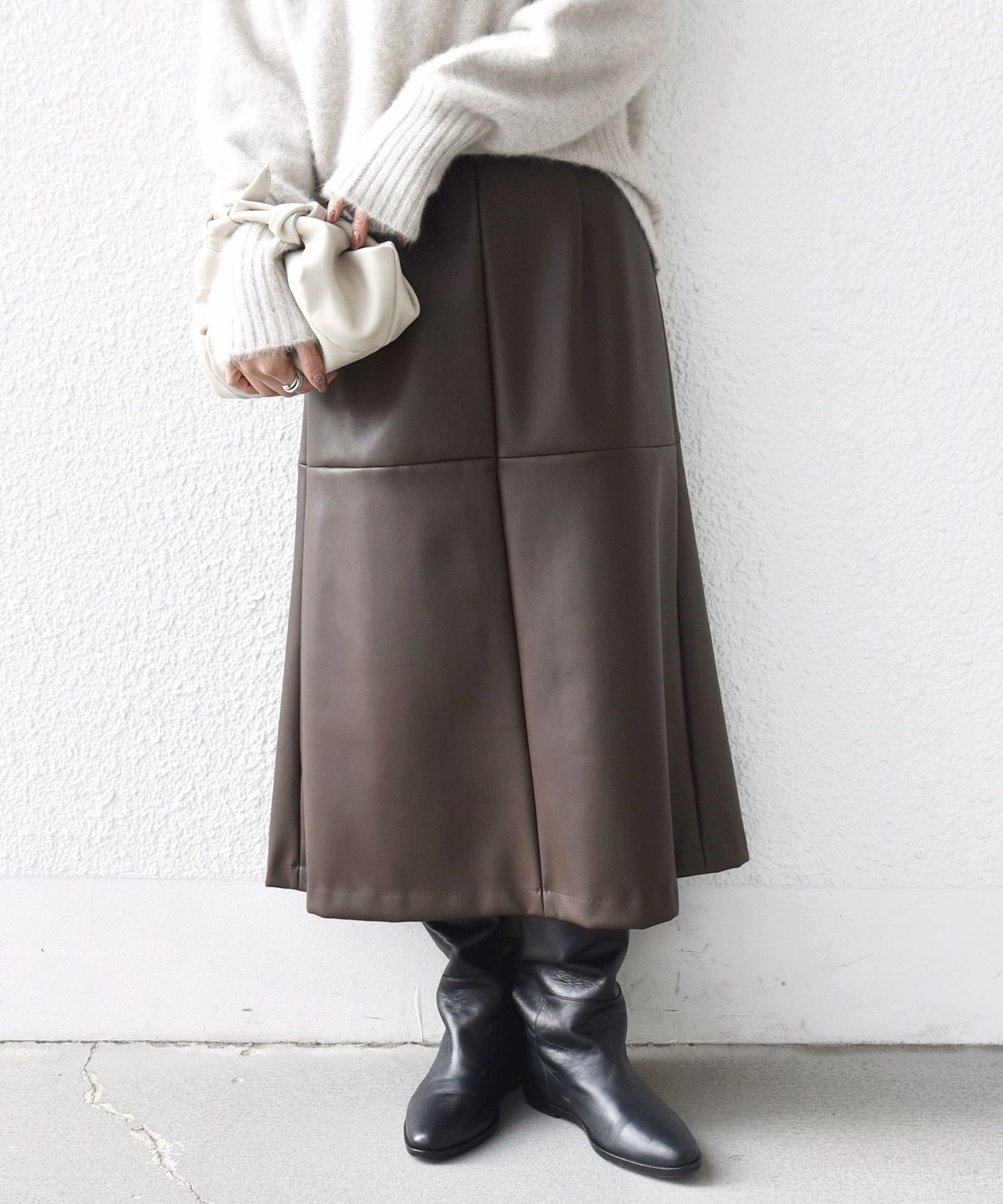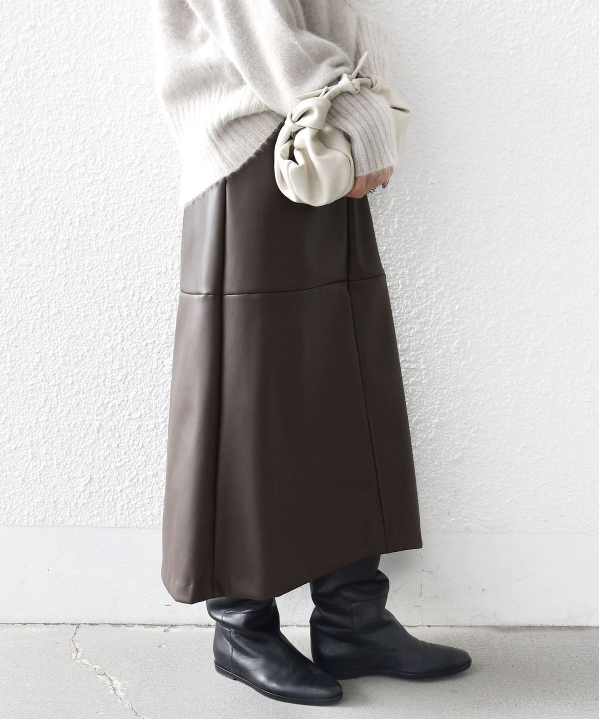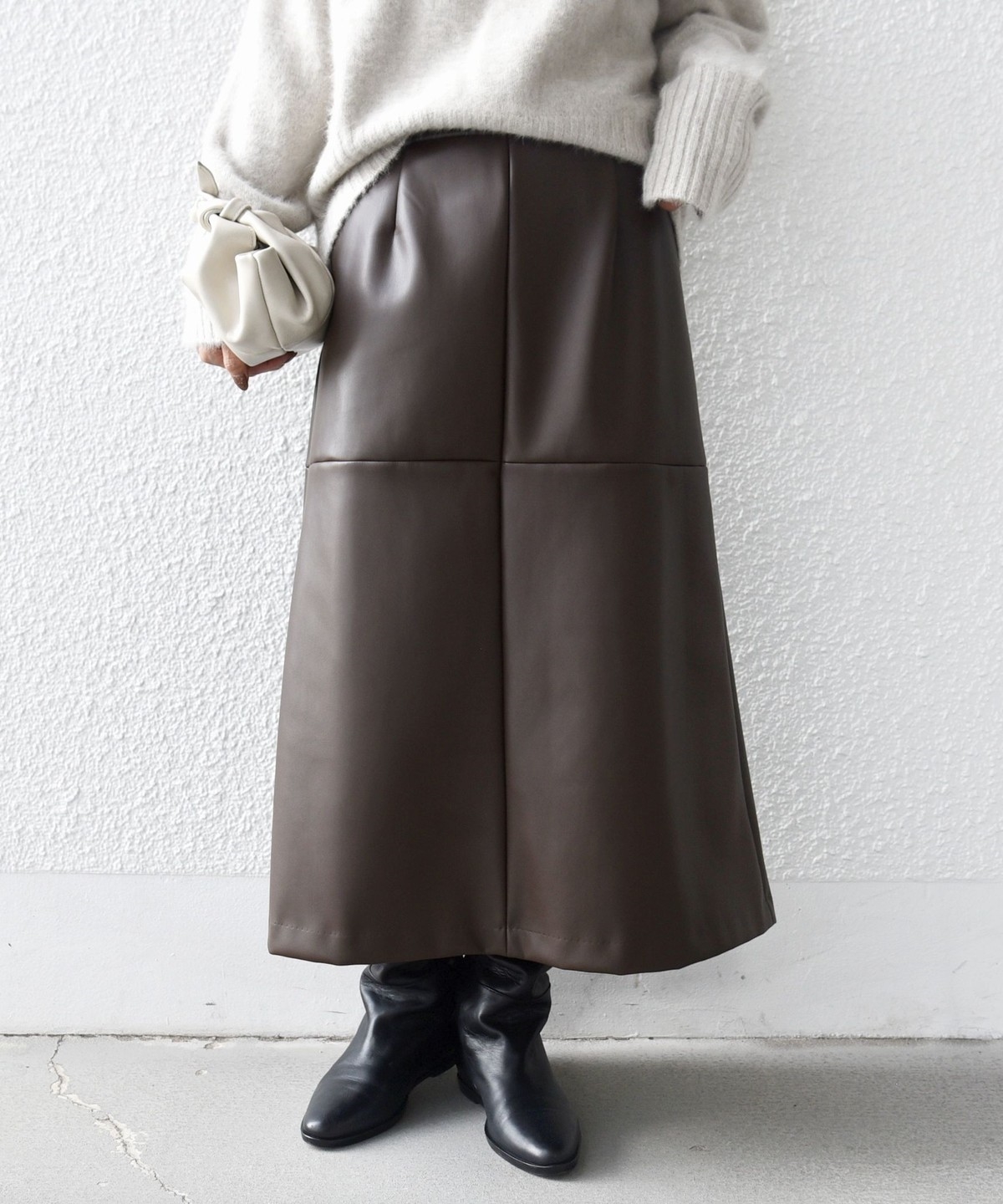 〈手洗い可能〉合成皮革 ウエスト ゴム スカート