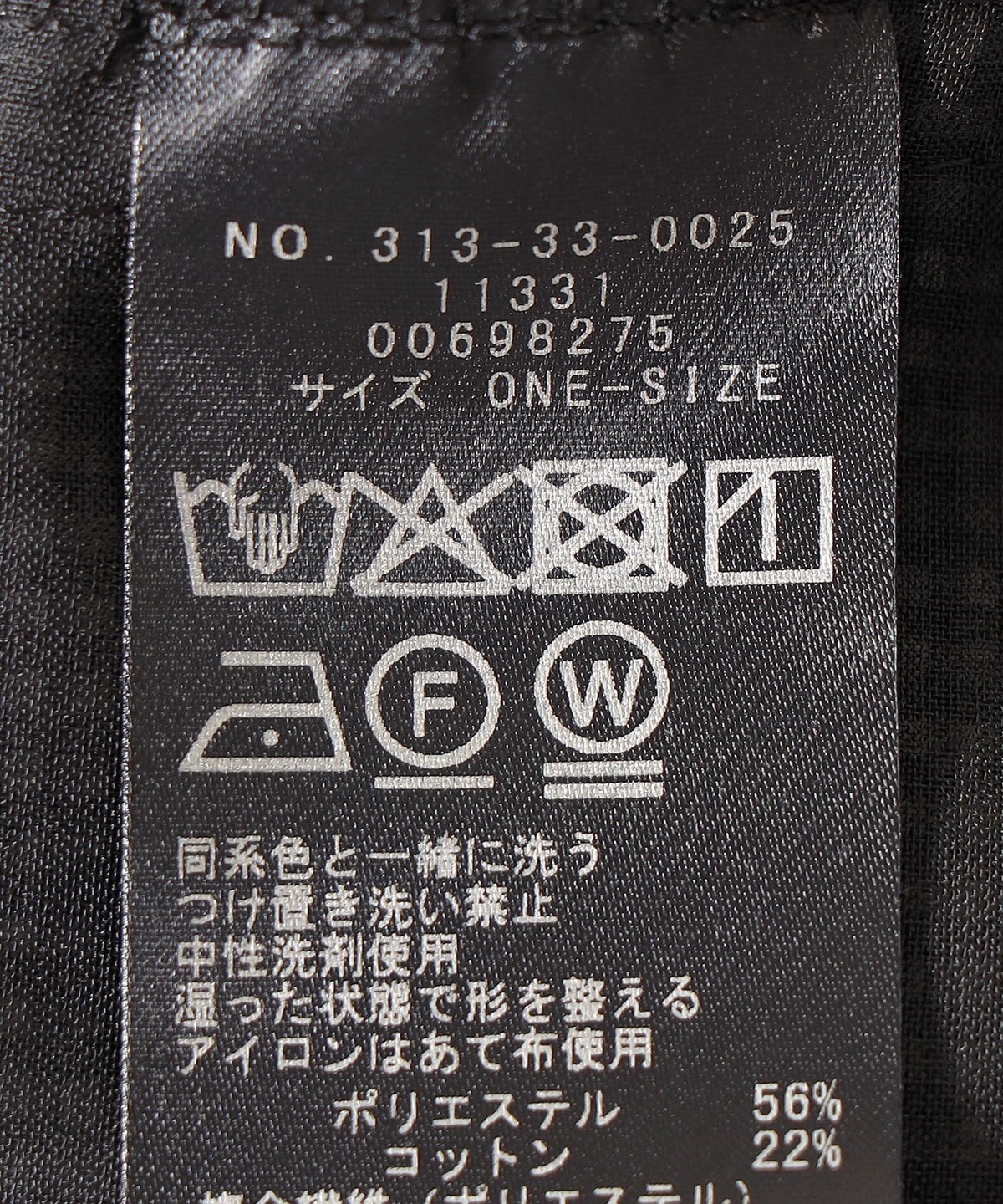 素材:ポリエステル56%、コットン22%、複合繊維(ポリエステル)22%