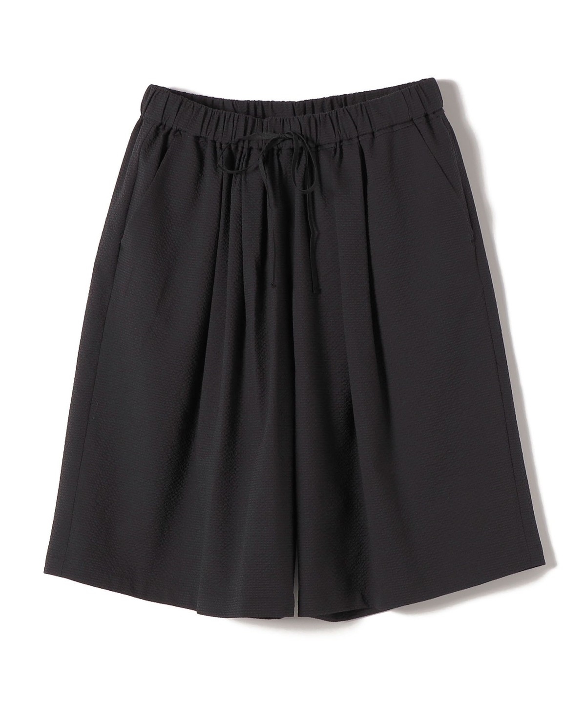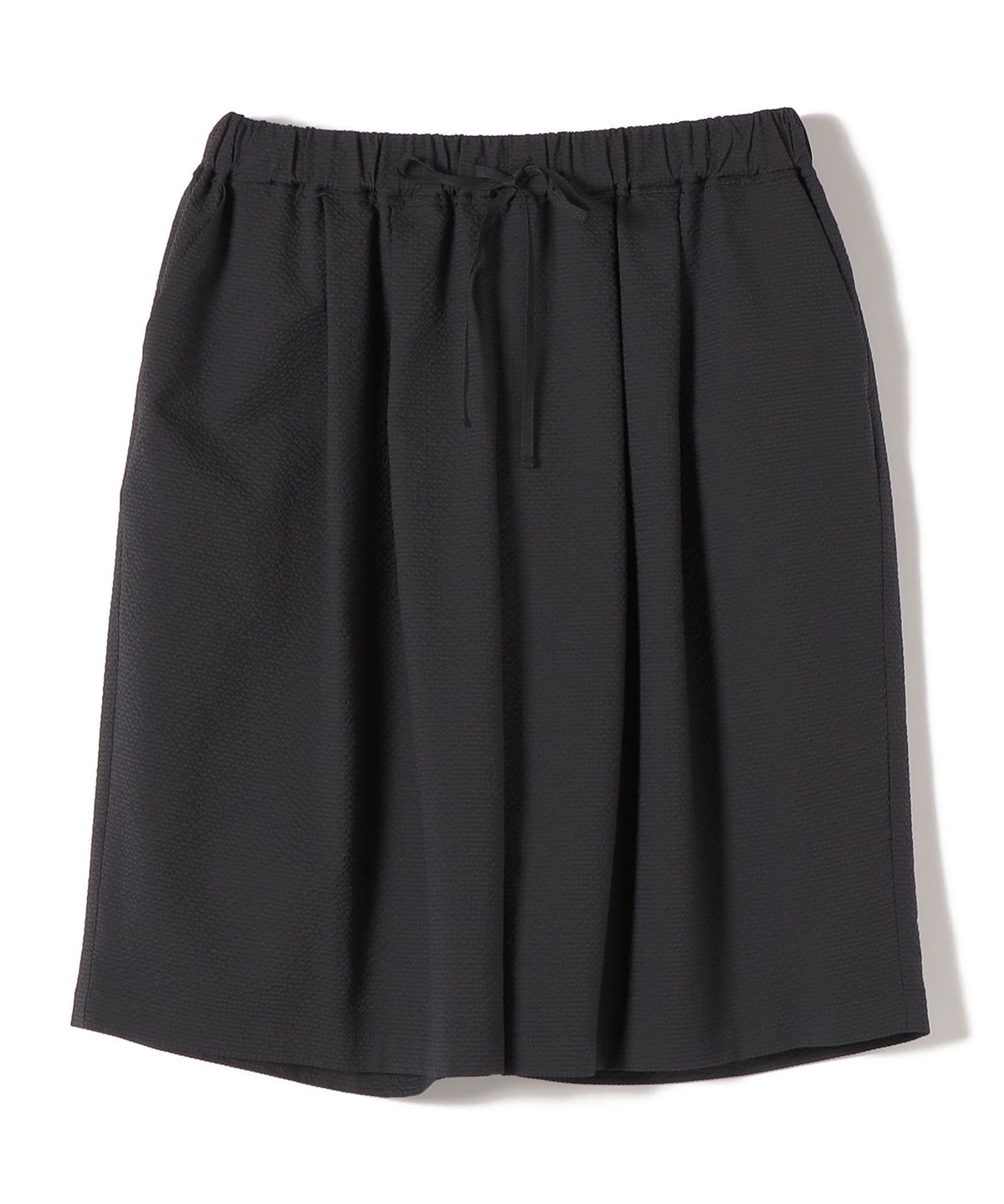 ドロストの紐はショートパンツの素材と異なる少し光沢感のある紐を使用し、大人っぽい印象になるように◎