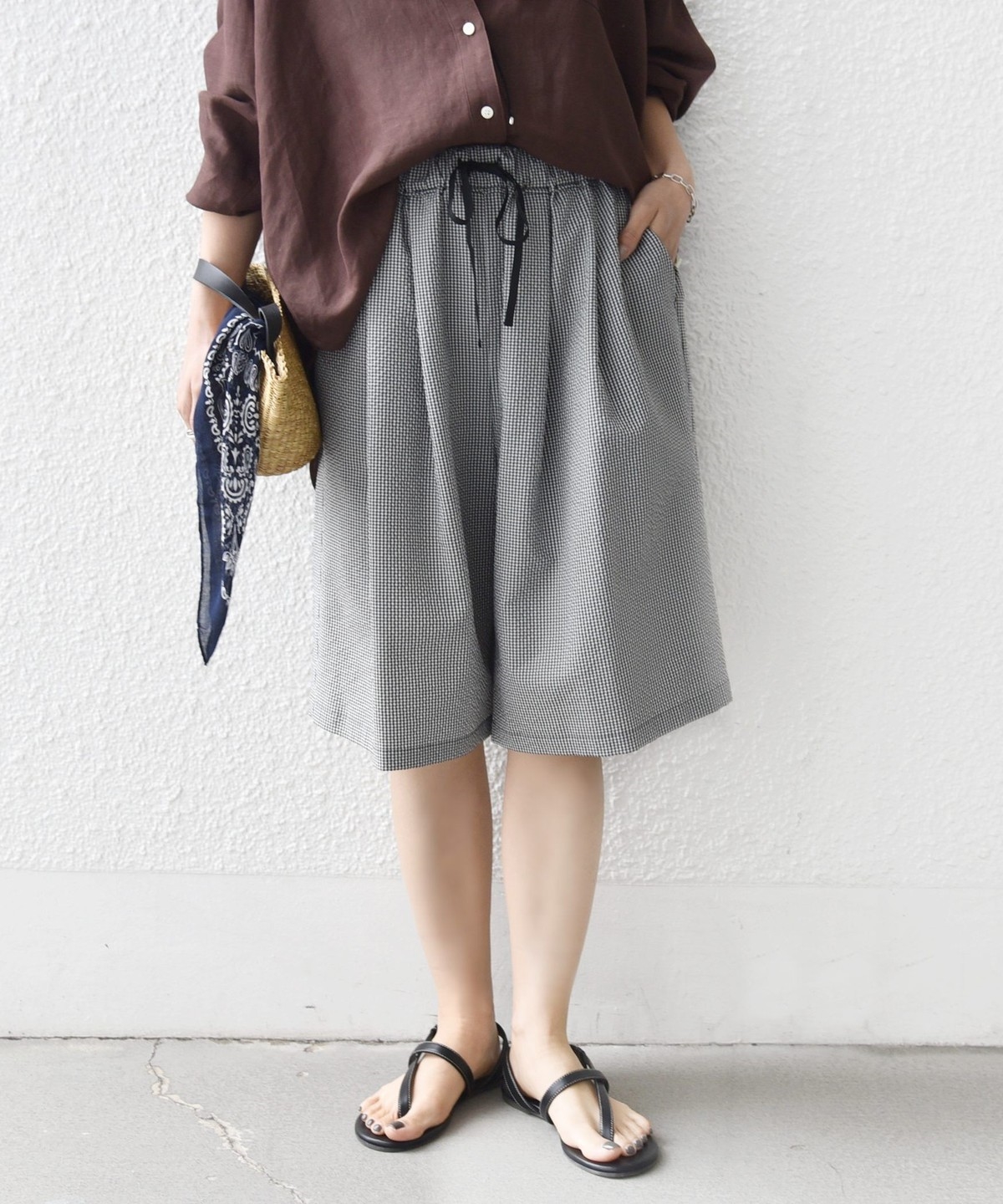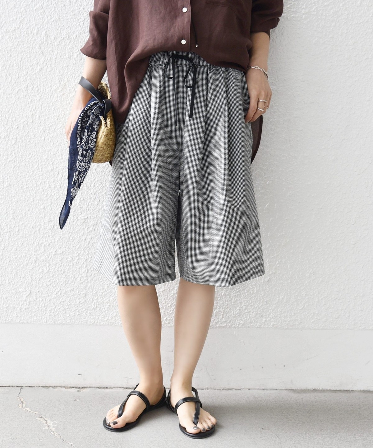 〈手洗い可能〉ギンガム サッカー ドロスト ショート パンツ