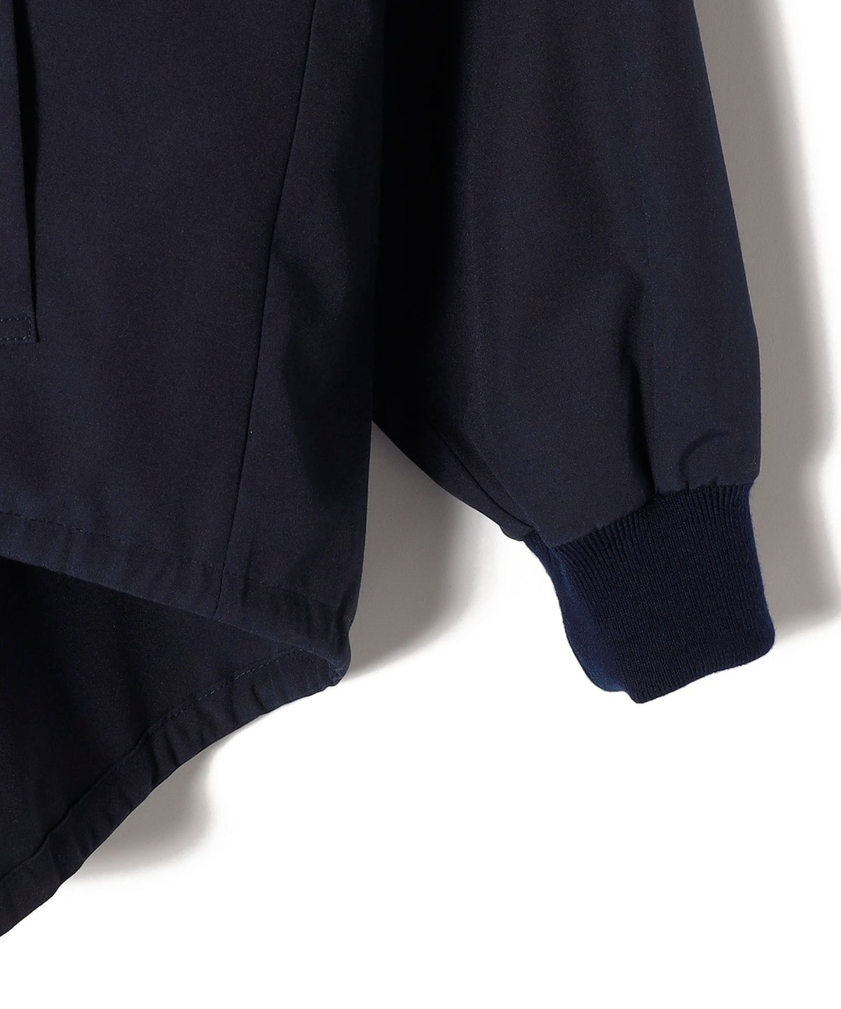スタジアムブルゾンをベースに、後ろ見頃は女性らしい膨らみを出し、裾のドローコードで色々なフォルムを楽しめるブルゾンです。