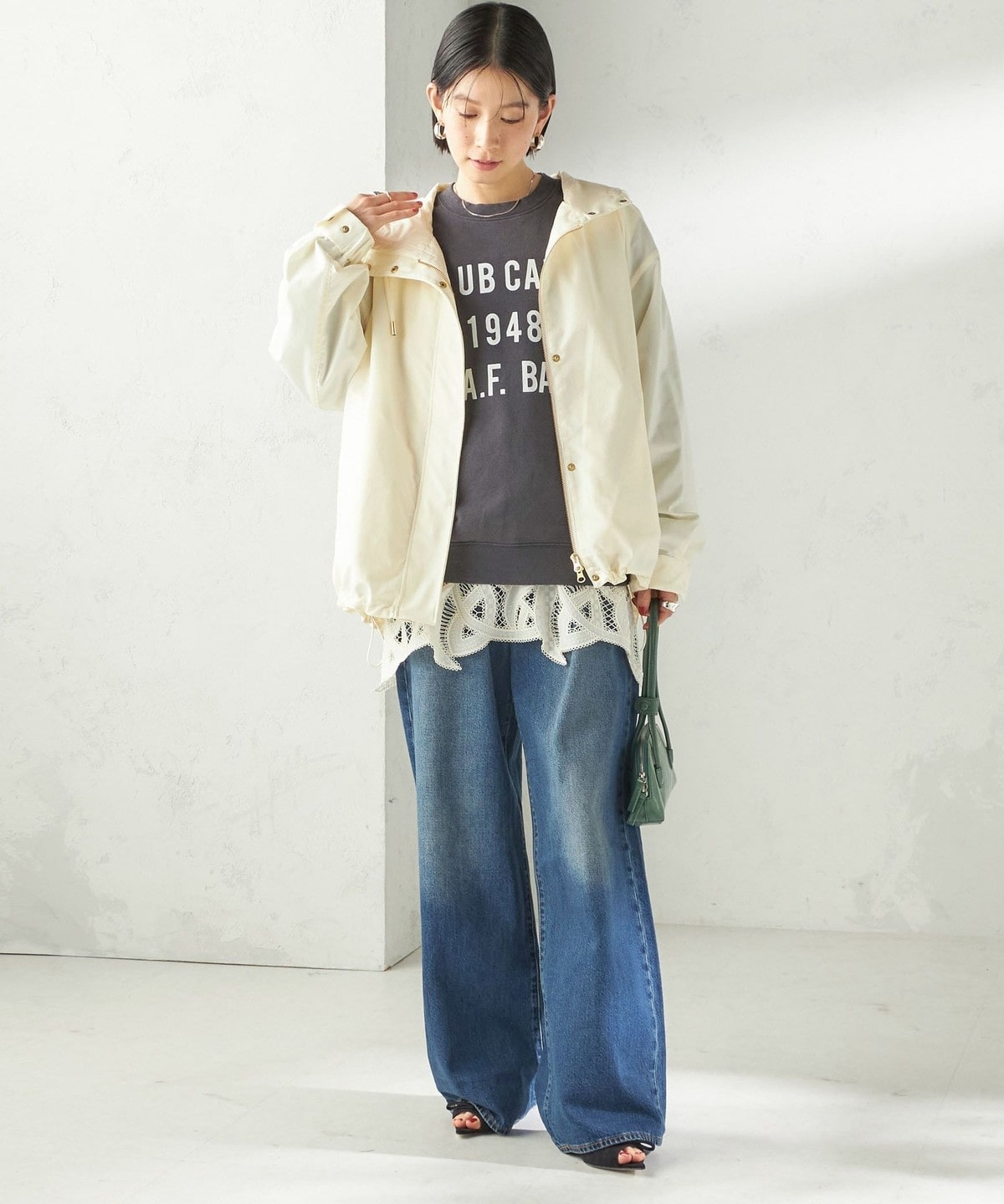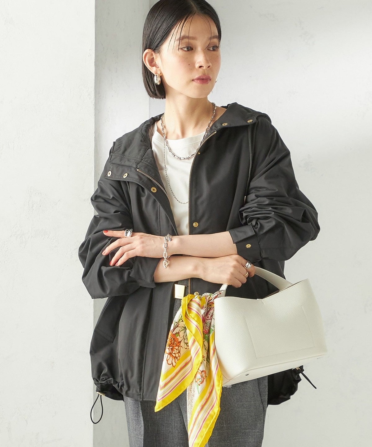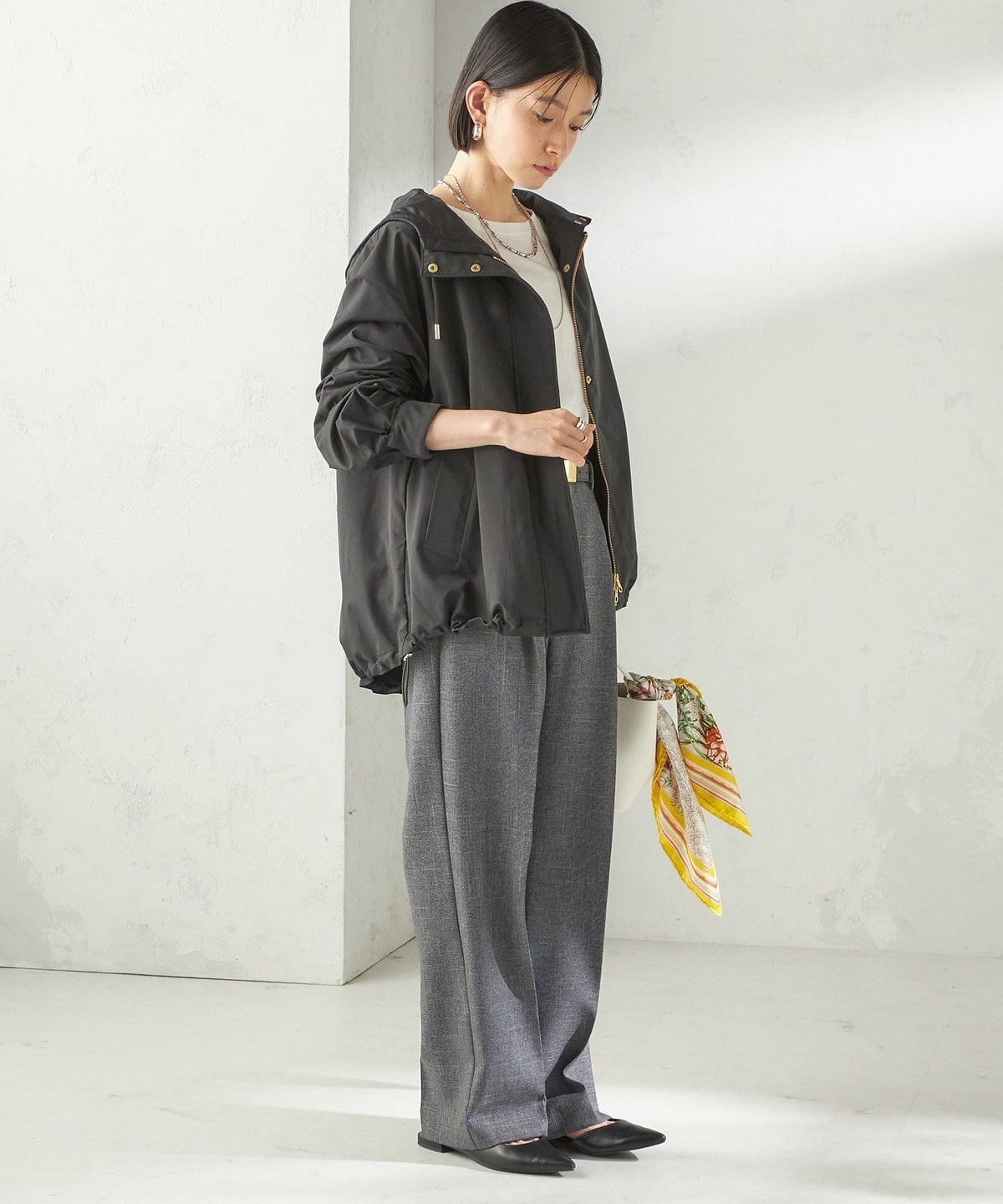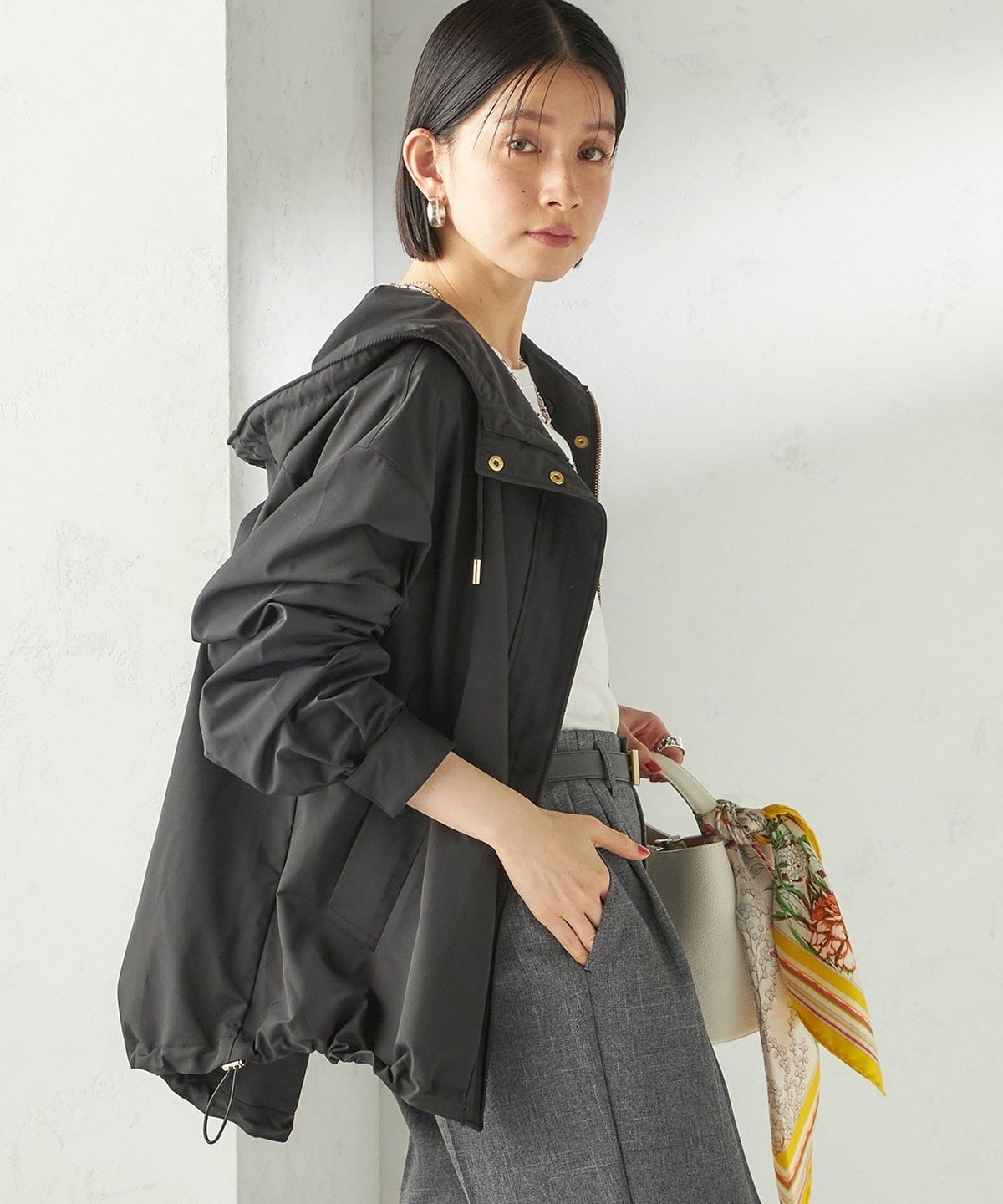 ハリ感素材でカジュアルからきれいめまで活躍するマウンテンパーカー
