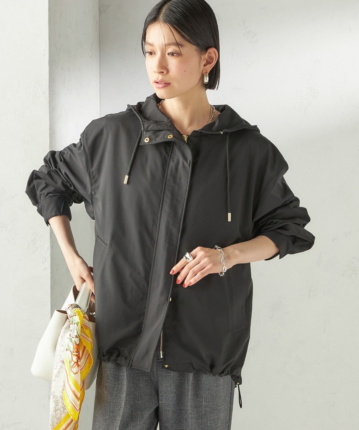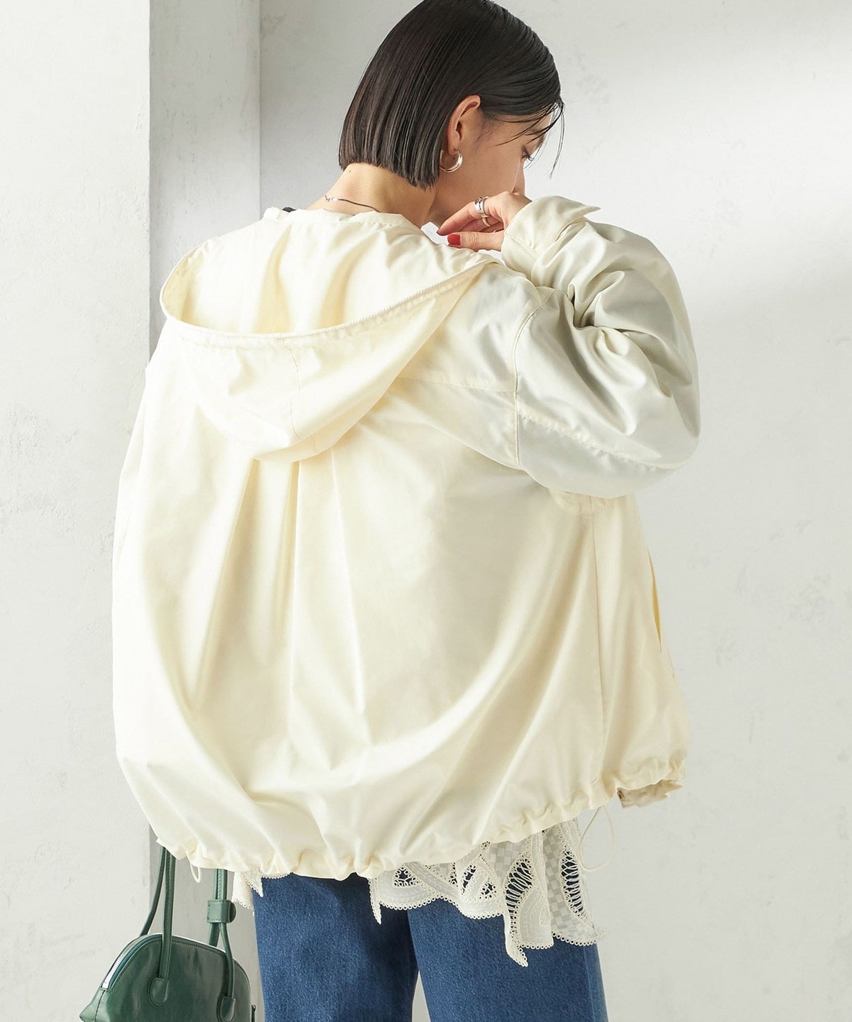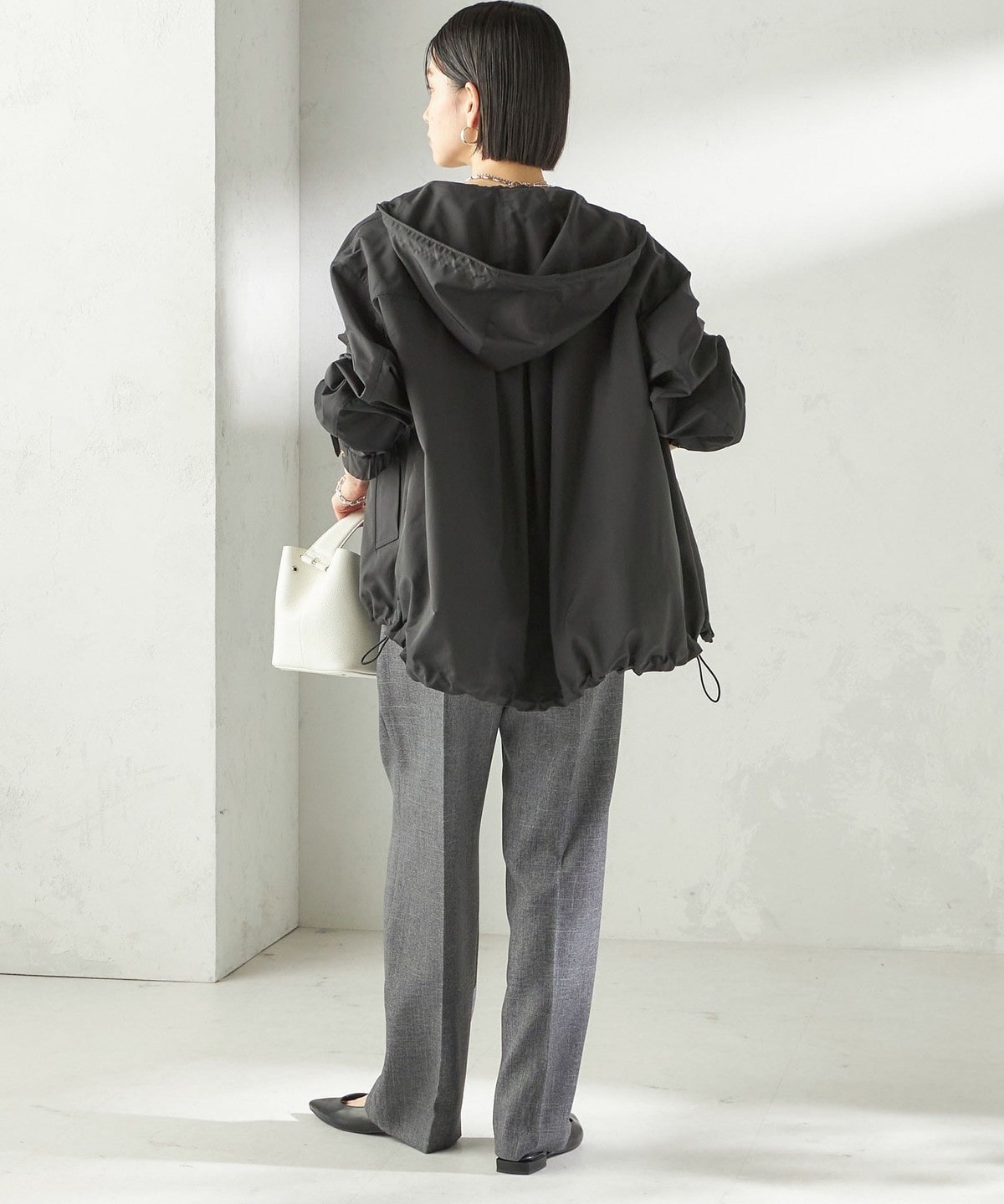 裾のコードゴムでフォルムの調整も自由自在に着こなしを楽しめます。