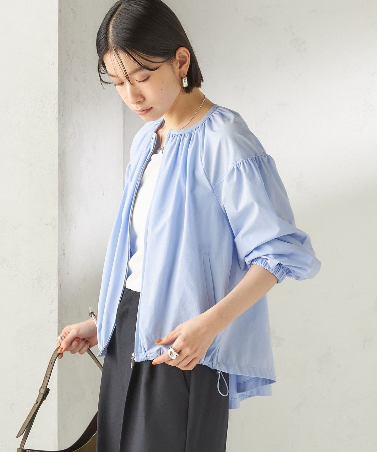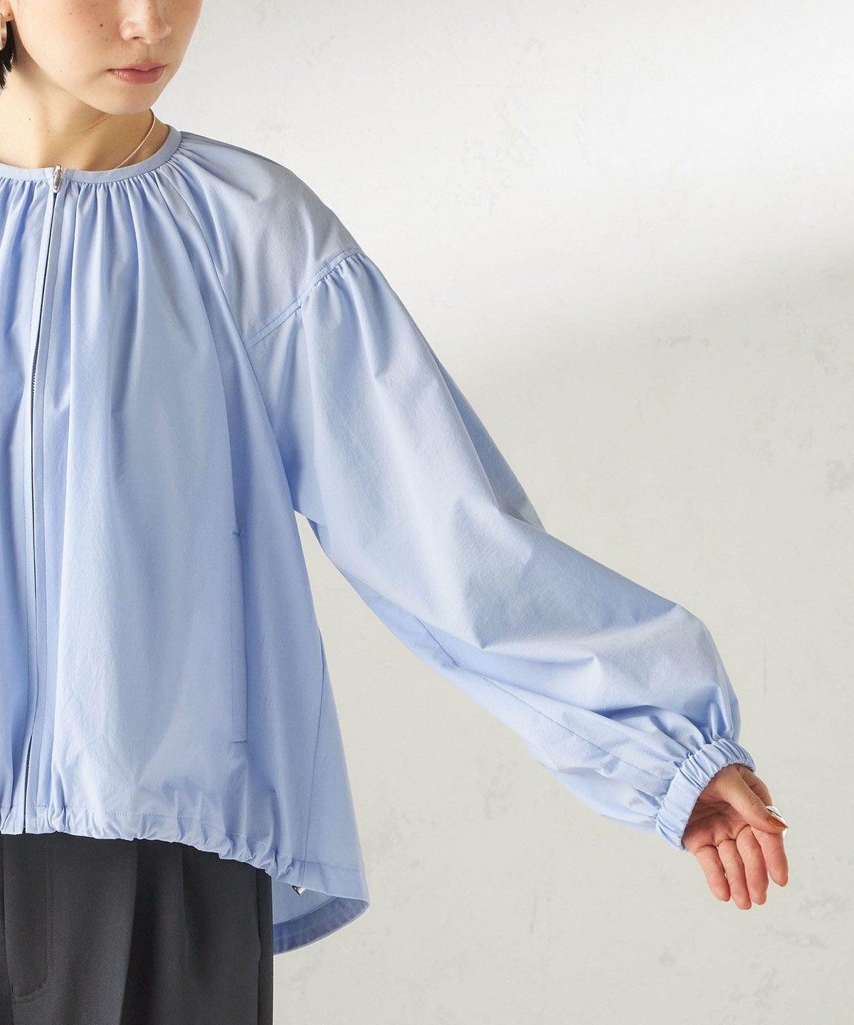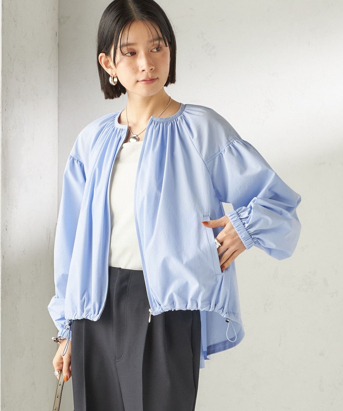 1. 《予約》〈 接触冷感 / 撥水加工〉TEXBRID(R) タフタ ギャザー 羽織 ブルゾン ライトブルー