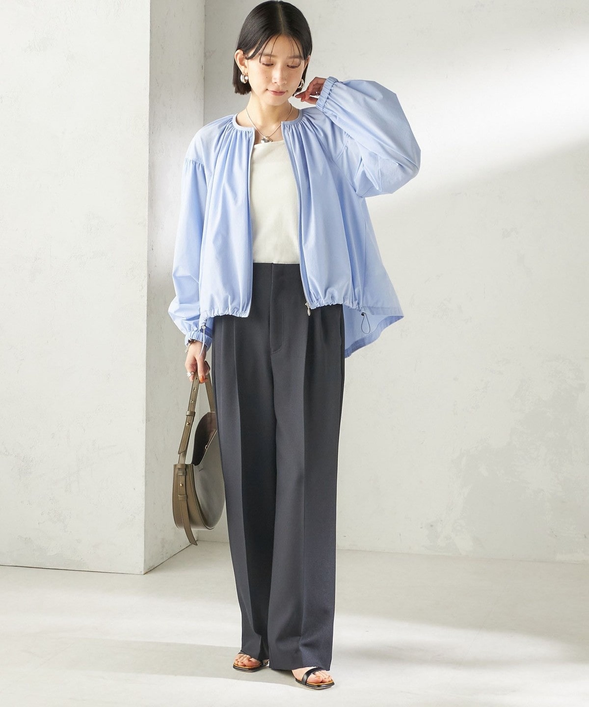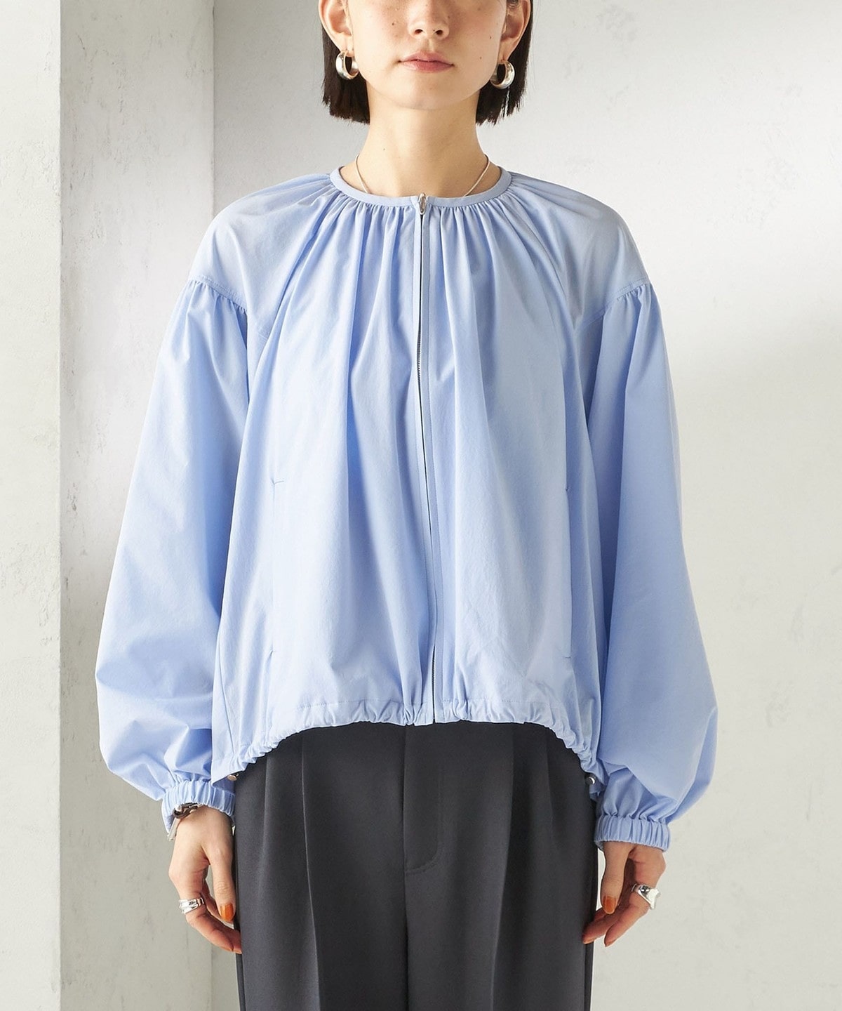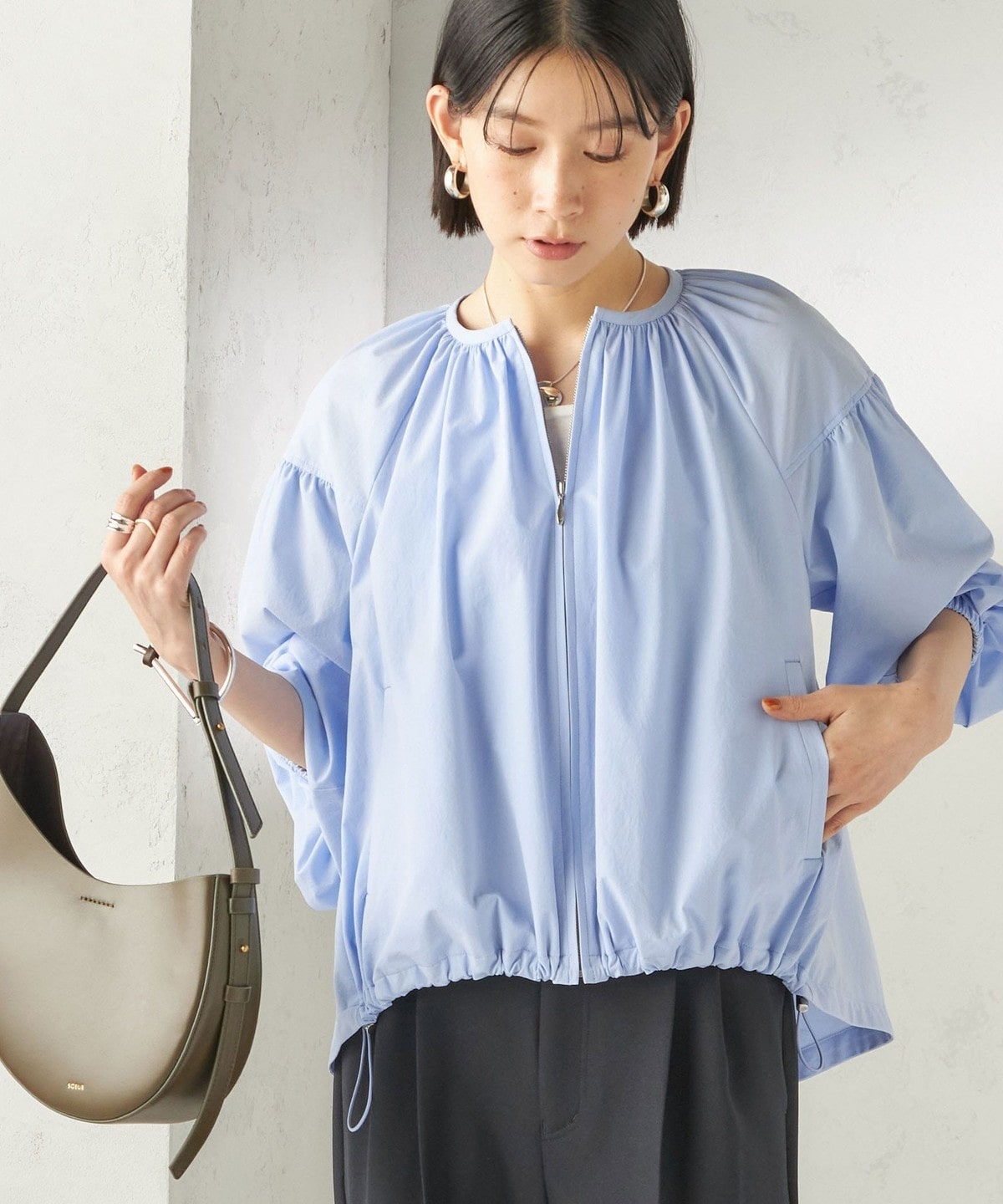 1. 《予約》〈 接触冷感 / 撥水加工〉TEXBRID(R) タフタ ギャザー 羽織 ブルゾン ライトブルー
