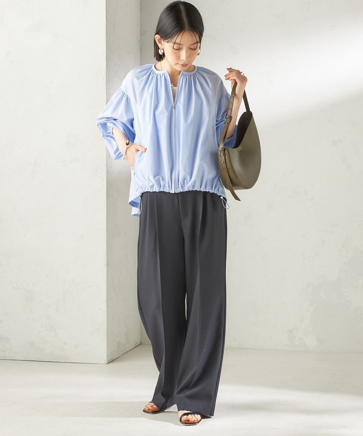 24. 《予約》〈 接触冷感 / 撥水加工〉TEXBRID(R) タフタ ギャザー 羽織 ブルゾン