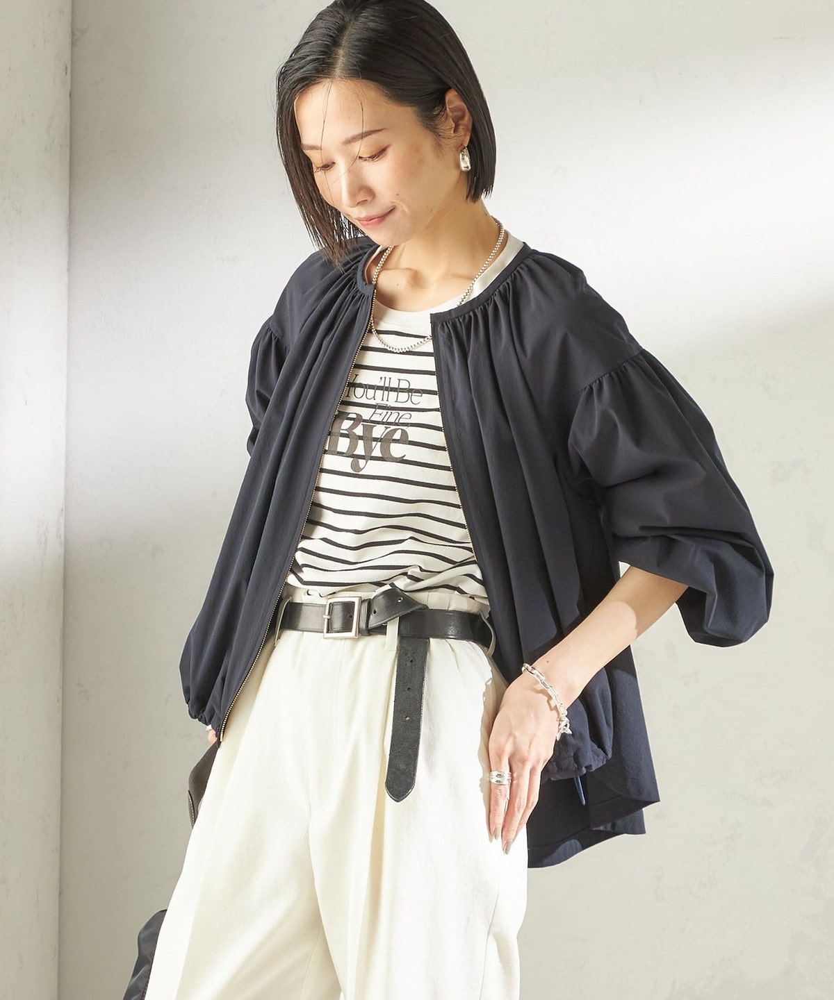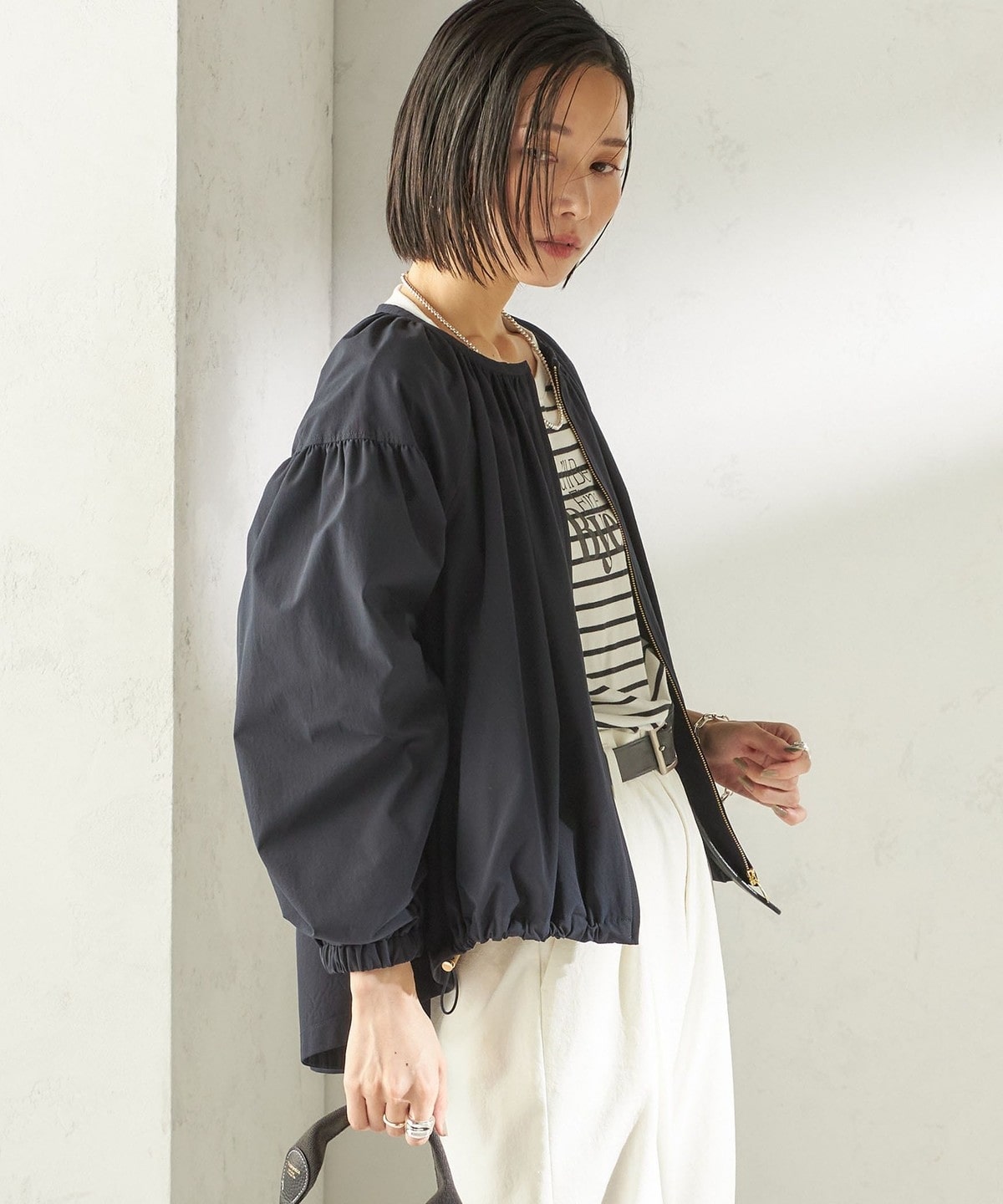 3. 《予約》〈 接触冷感 / 撥水加工〉TEXBRID(R) タフタ ギャザー 羽織 ブルゾン ネイビー