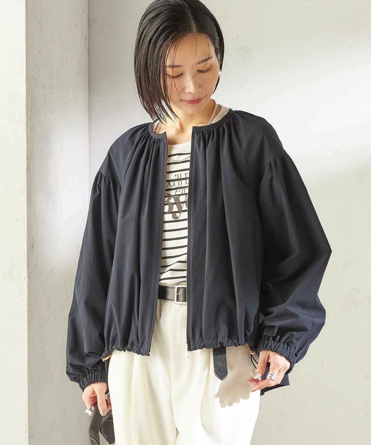 34. 《予約》〈 接触冷感 / 撥水加工〉TEXBRID(R) タフタ ギャザー 羽織 ブルゾン