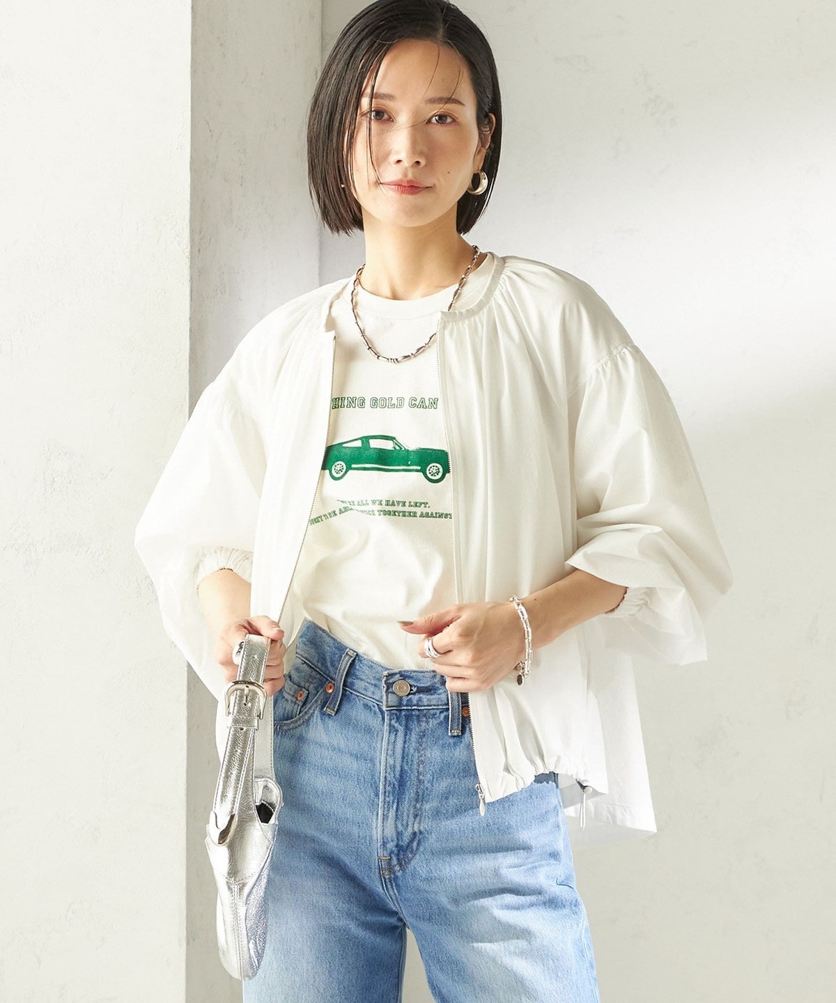 2. 《予約》〈 接触冷感 / 撥水加工〉TEXBRID(R) タフタ ギャザー 羽織 ブルゾン オフホワイト