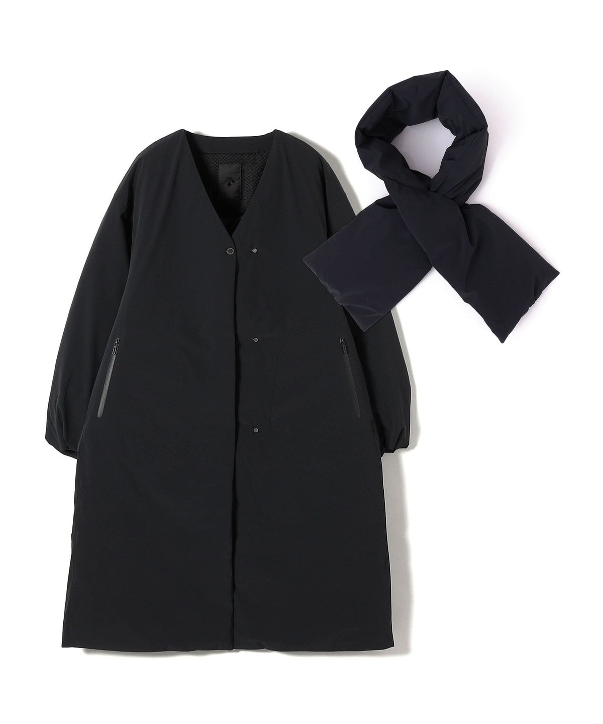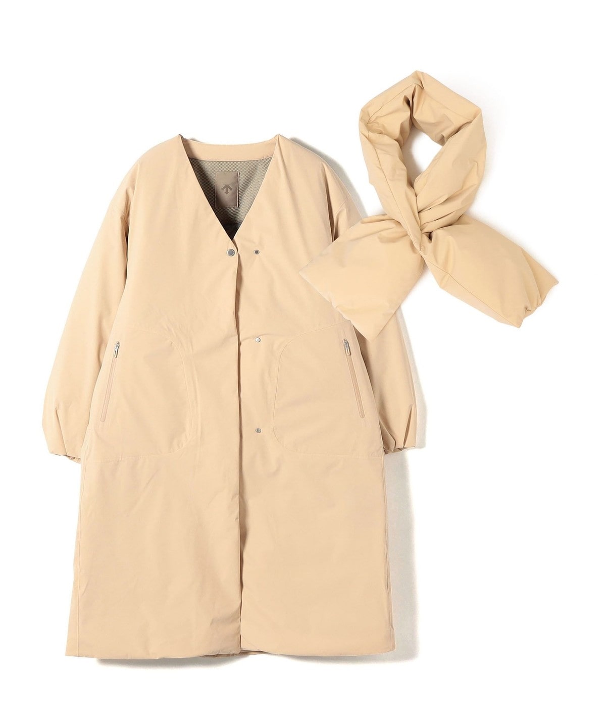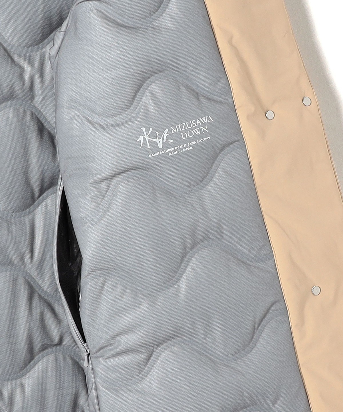 素材:【表地】ナイロン79%, ポリウレタン21%, 【裏地】ナイロン, 【中わた】本体: ダウン90%, フェザー10%, 衿ぐり・後身頃上部・袖・袖口・裾: ポリエステル100%