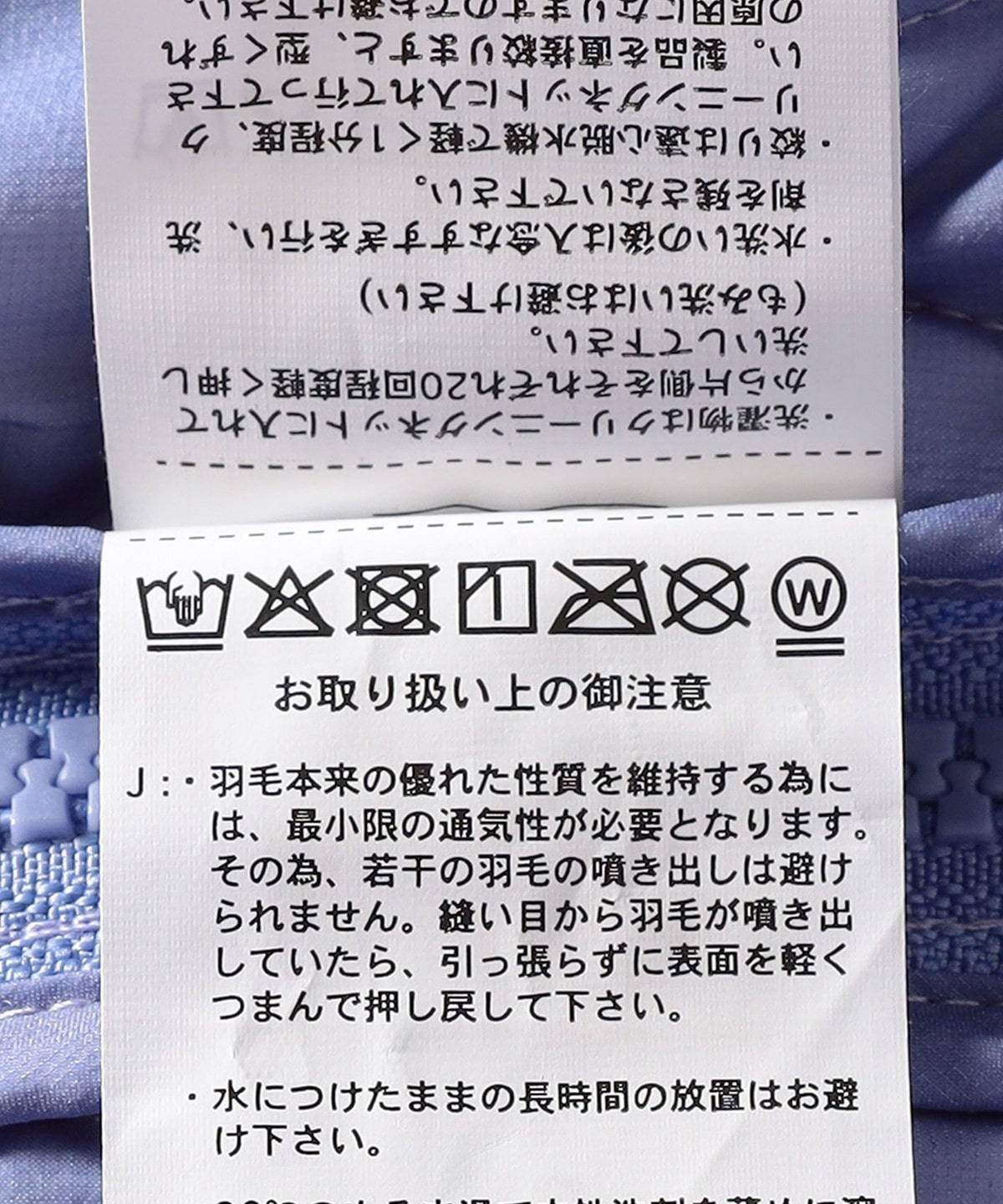 素材:表生地: ナイロン100%, 中わた: ダウン95%, フェザー5%, 裏生地: ナイロン100%