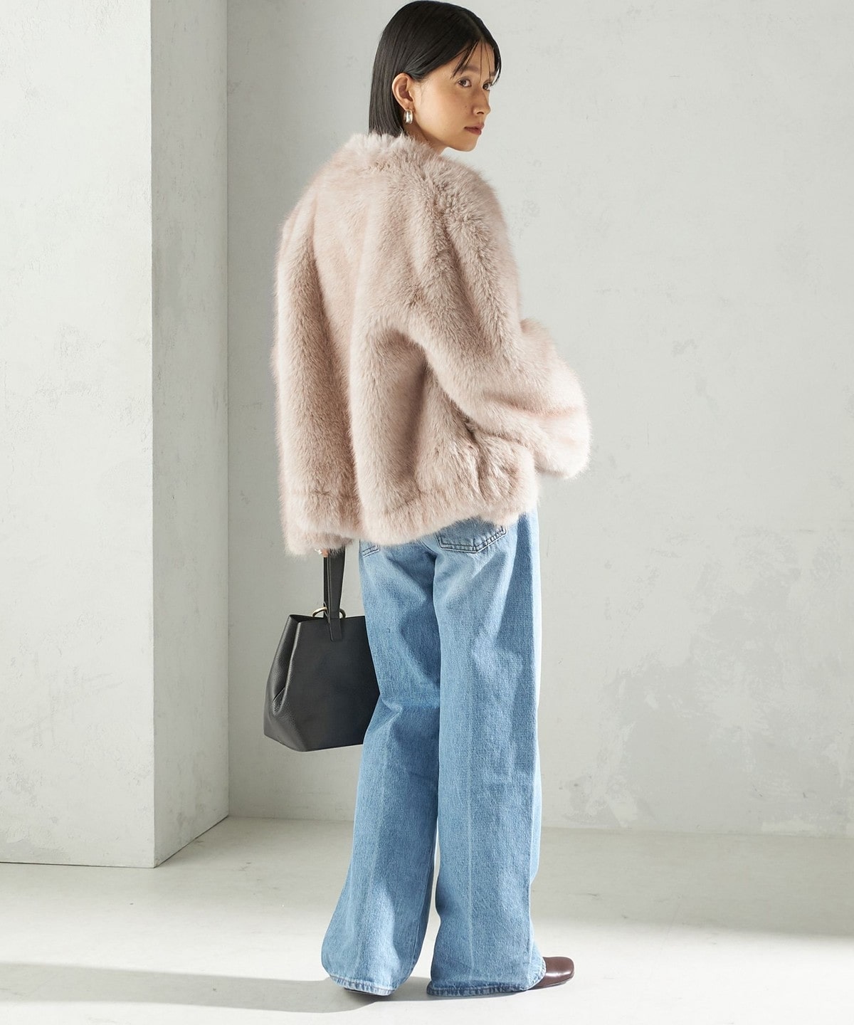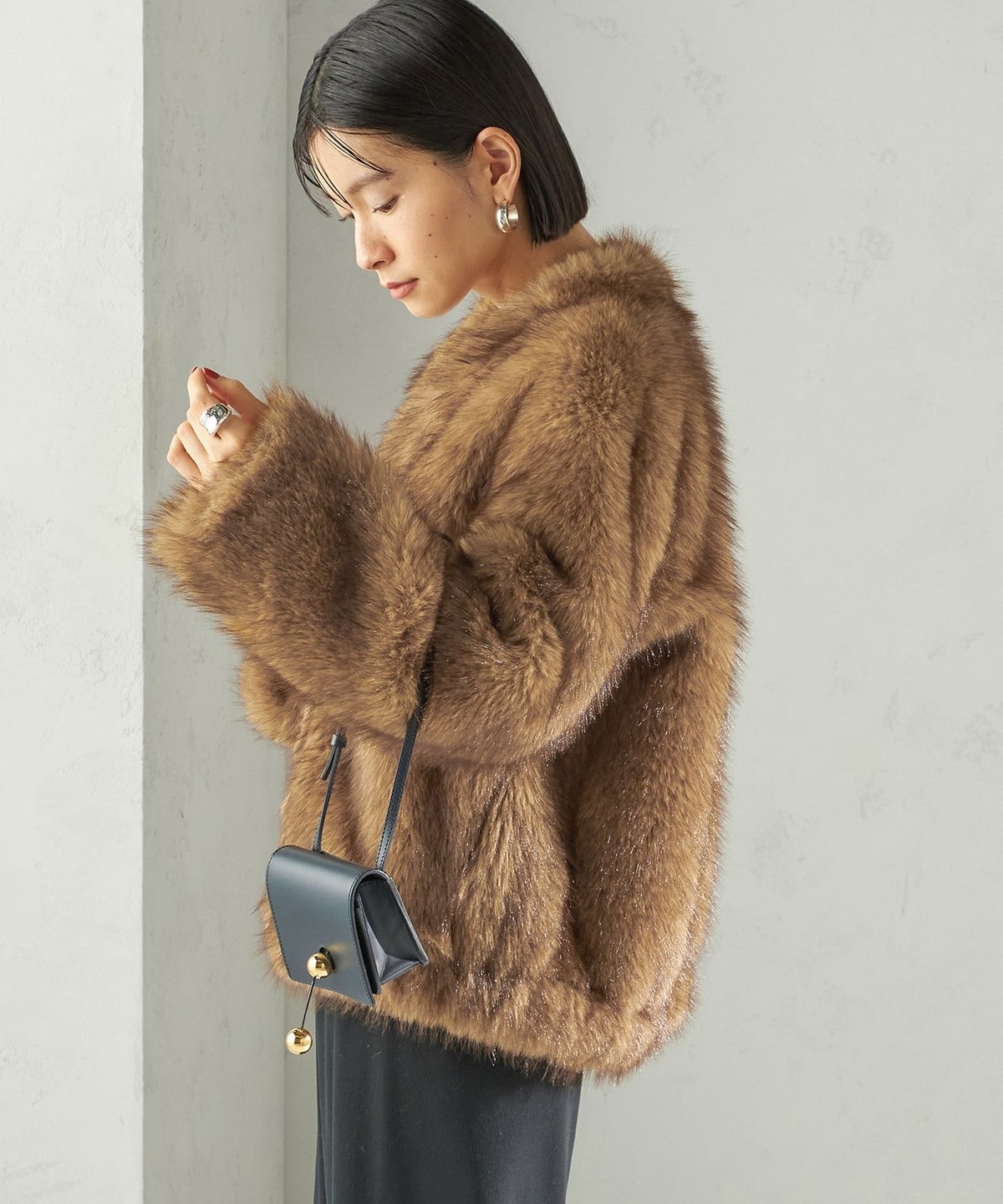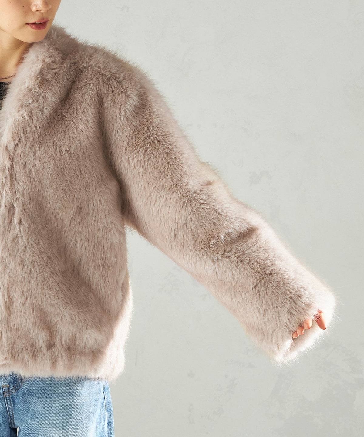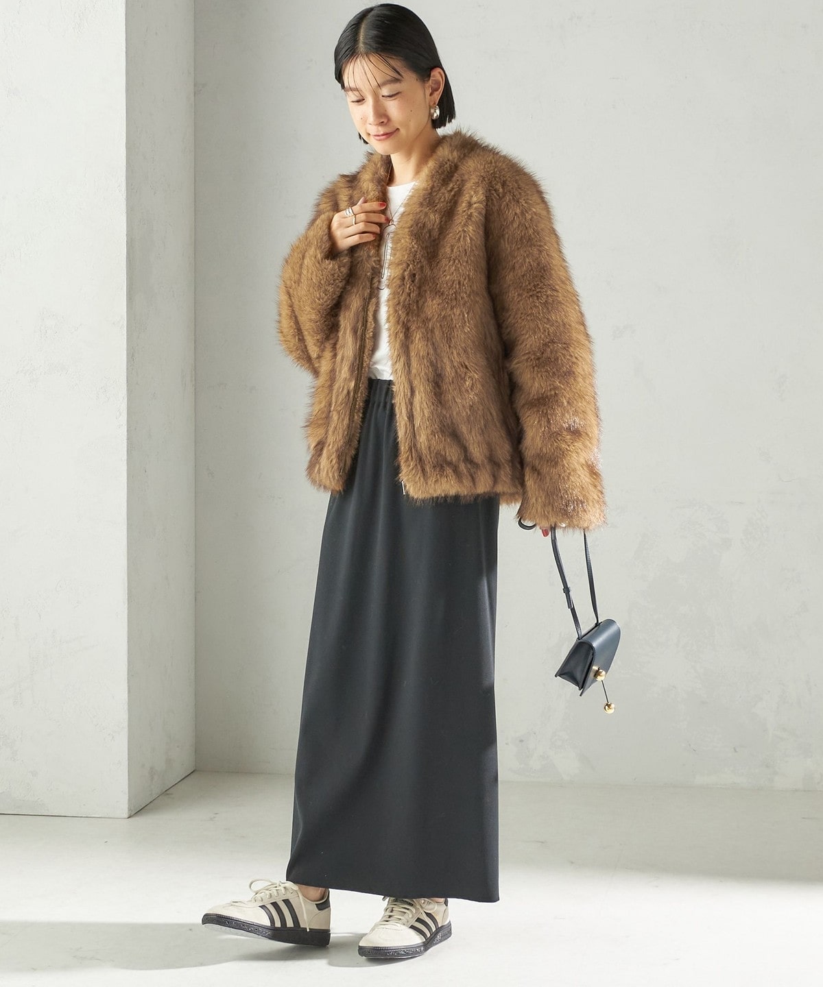 前の着丈を少し短めにし、ボリュームのあるファーとバランスを取りやすくしました。