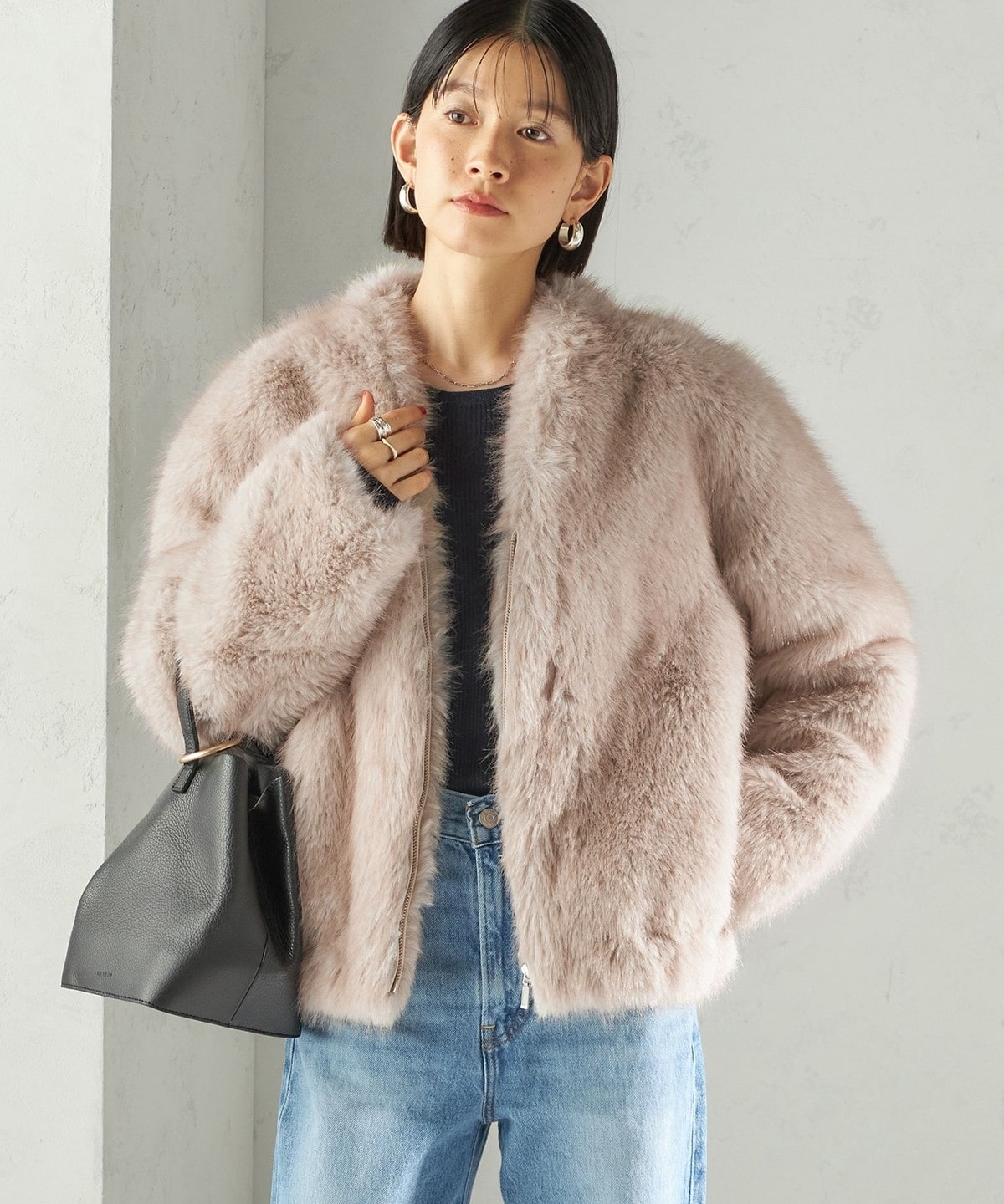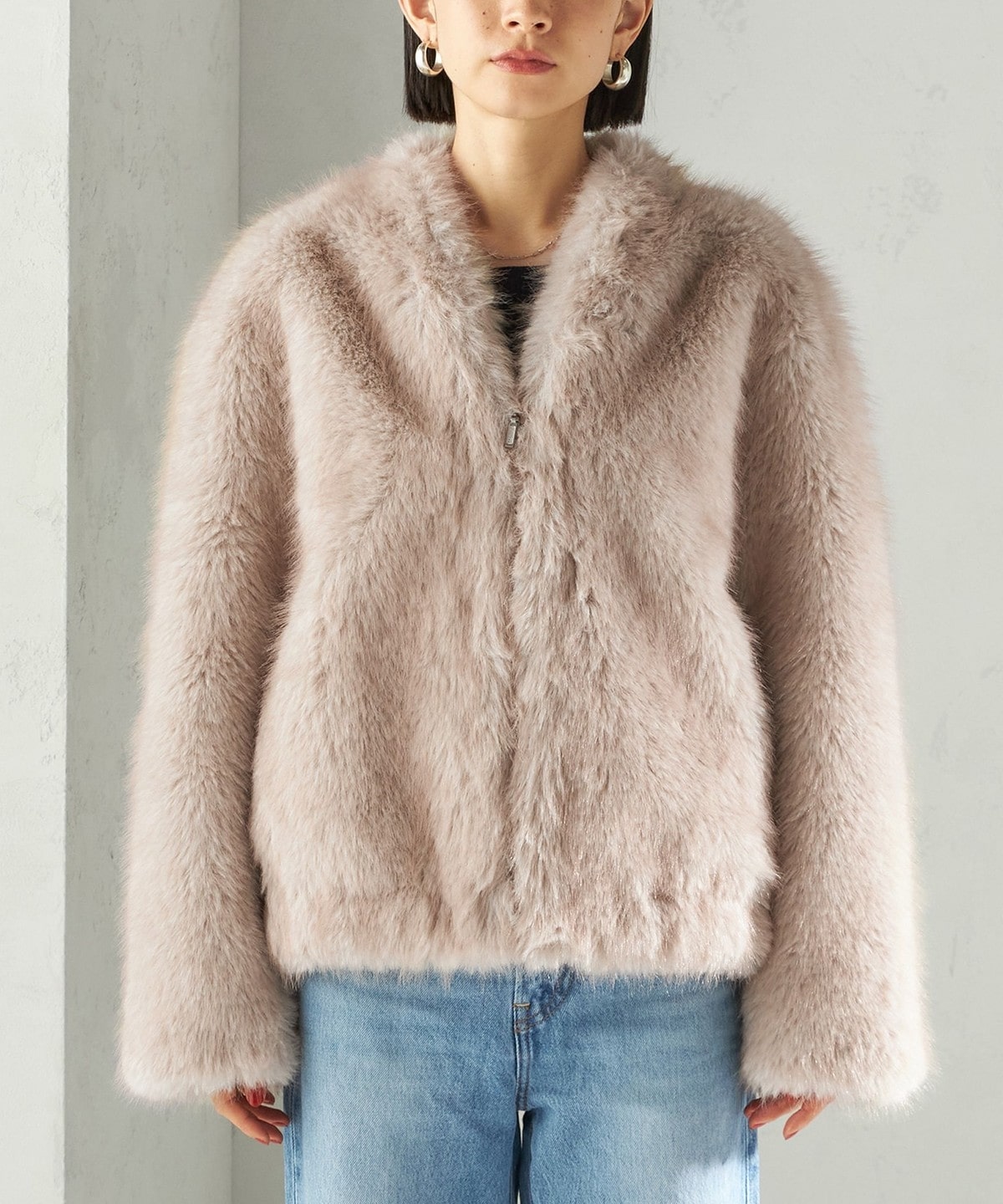 2. フェイク ファー コクーン ブルゾン ライトグレー