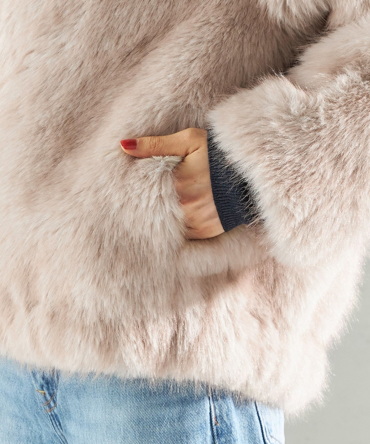 フォックス見えするフェイクファー素材。