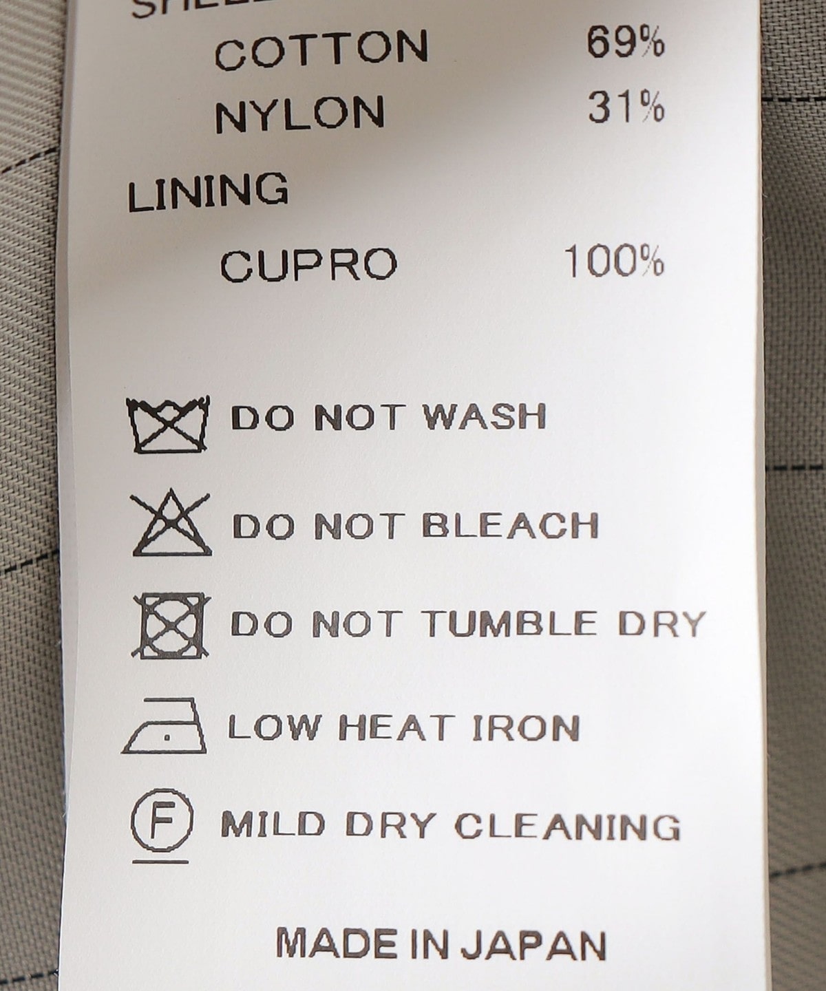 素材:表地: 綿69%, ナイロン31%, 裏地: キュプラ100%