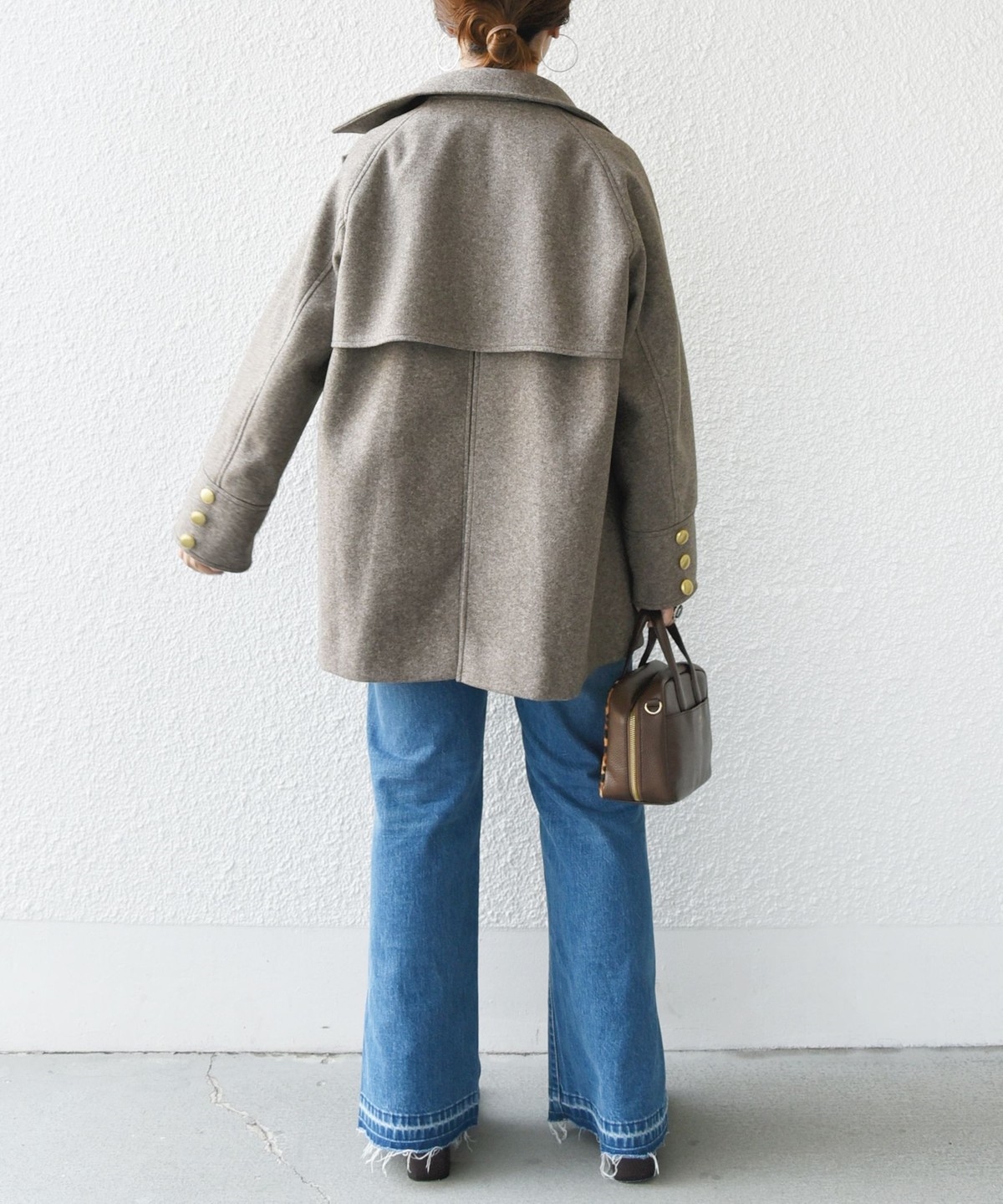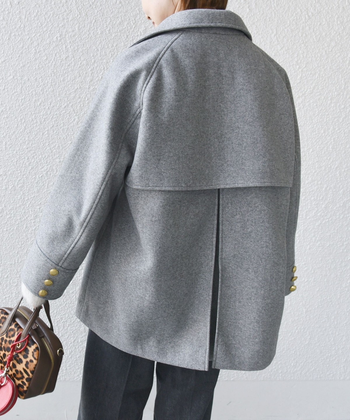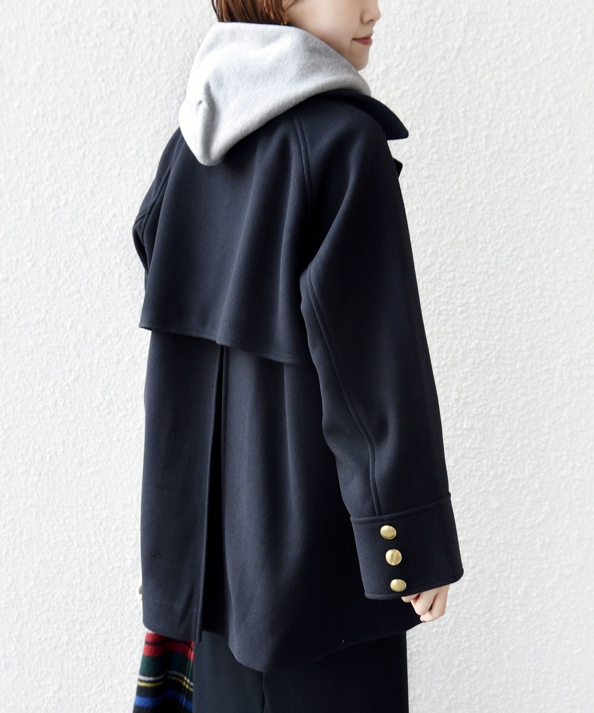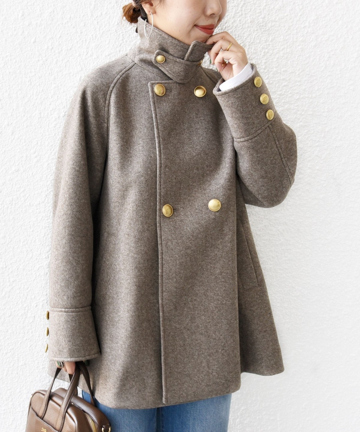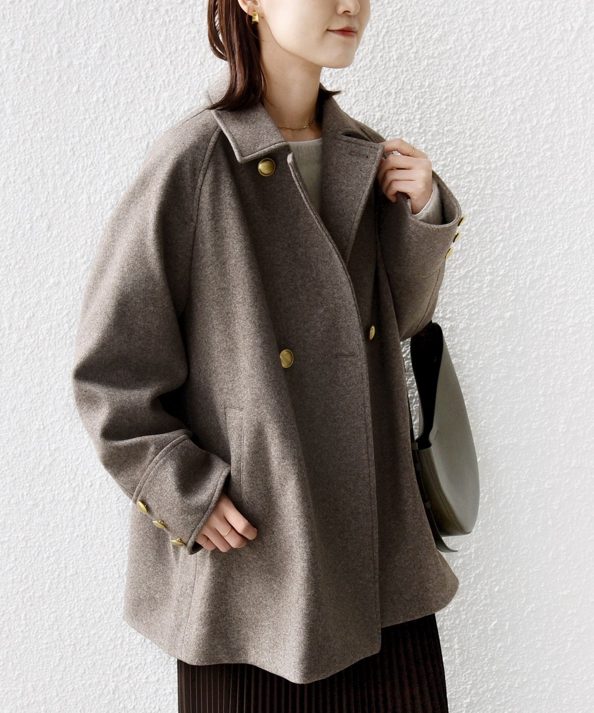 暖かさと着やすさを兼ね備えた、メタルボタンのミディ丈Pコート