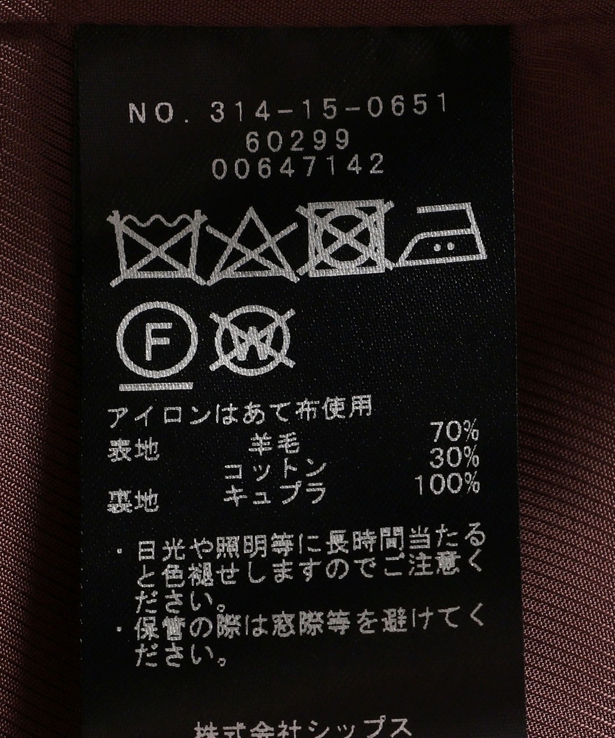 素材:表地(羊毛70%、コットン30%)裏地(キュプラ100%)