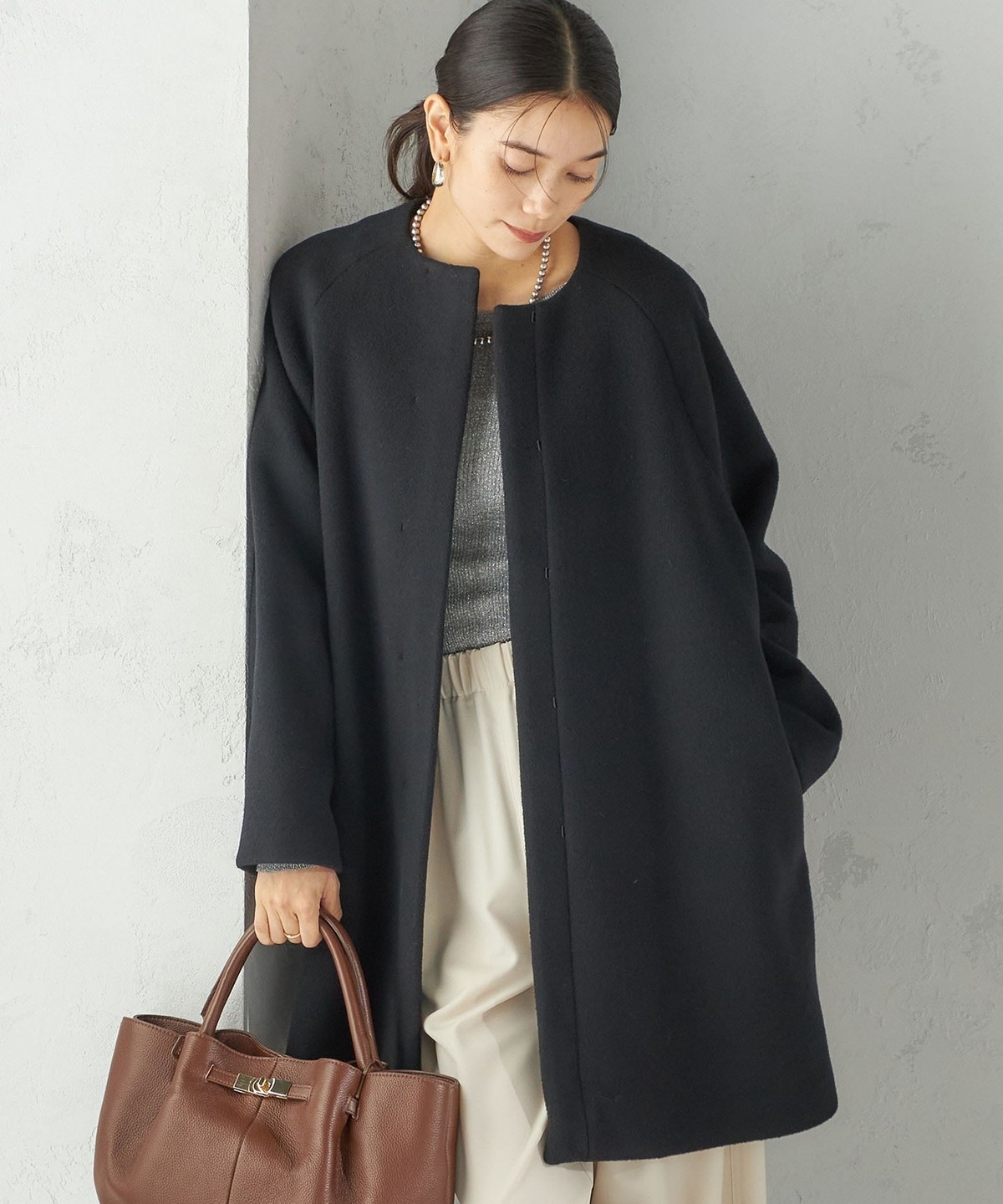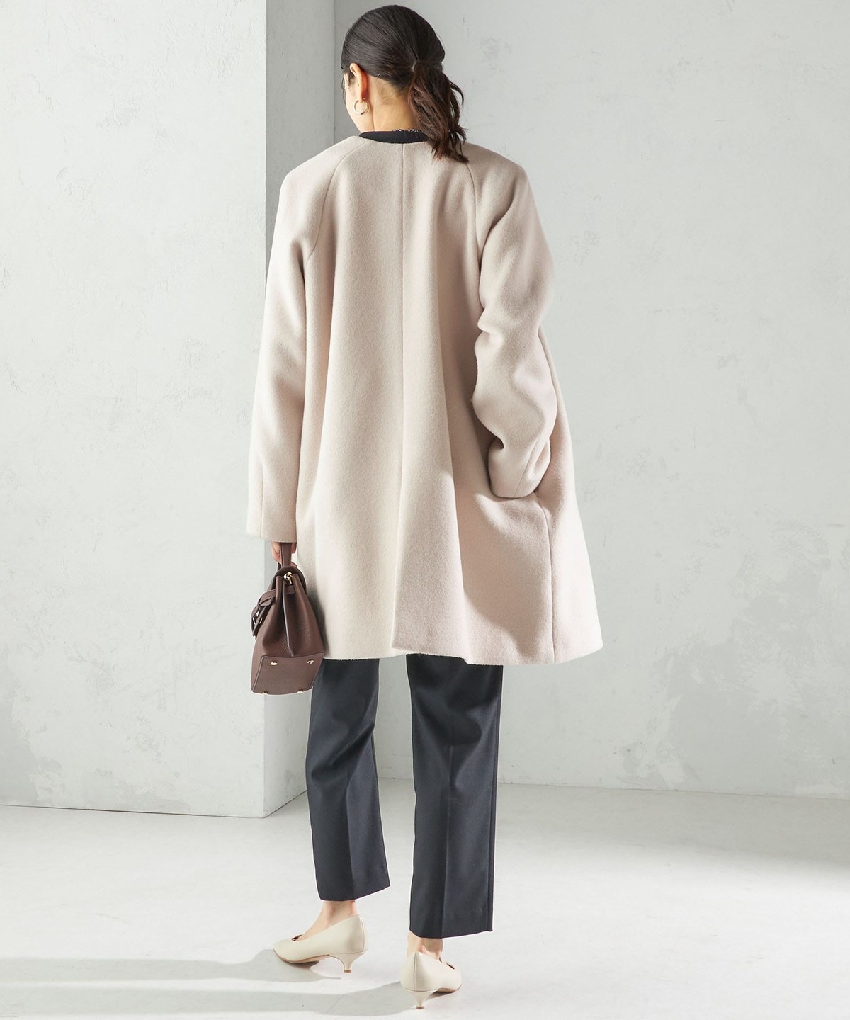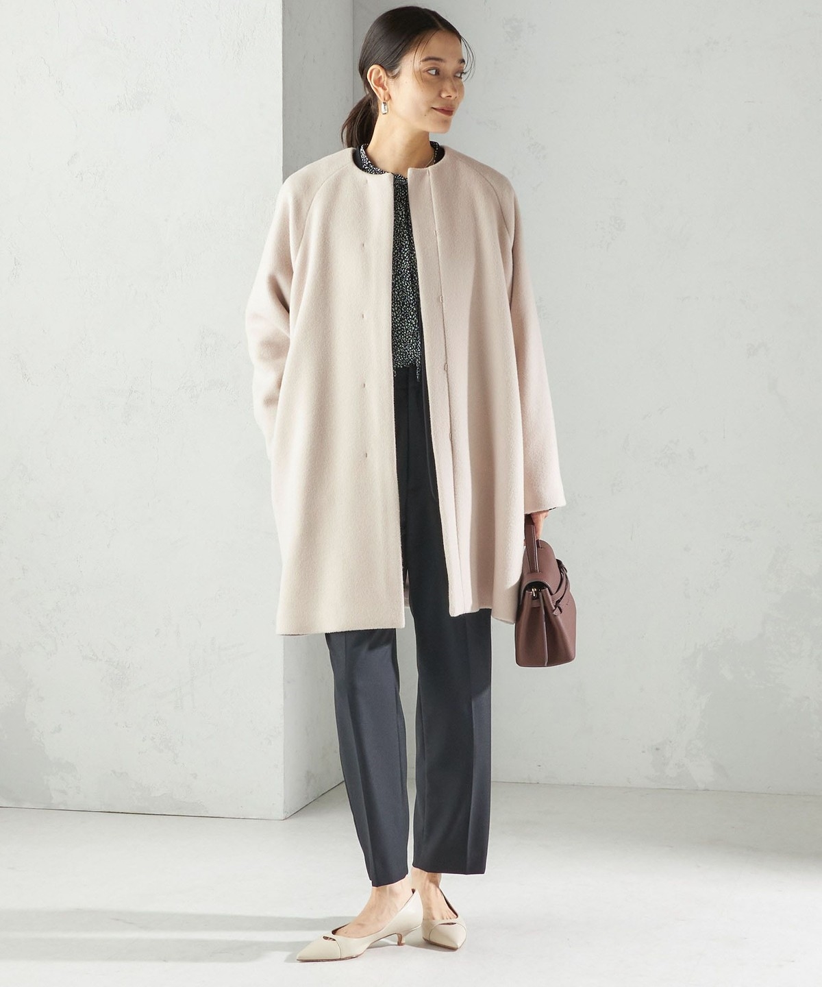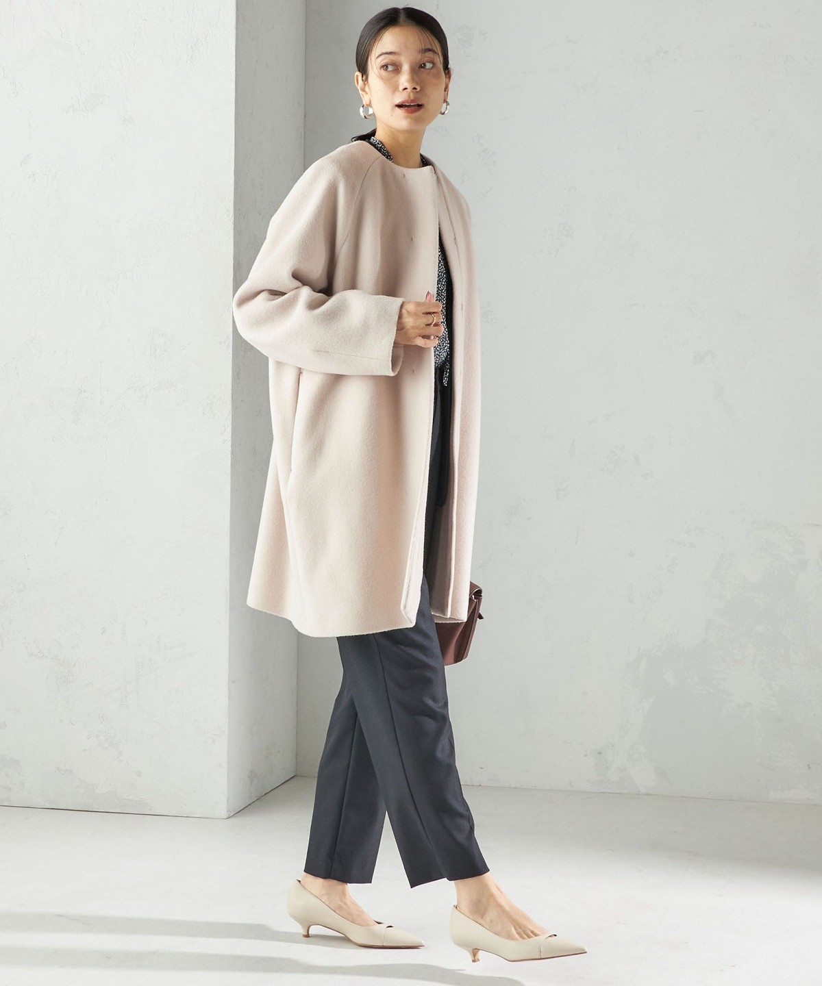 スタイリングを最大限生かしてくれる高級感引き立つノーカラーコート