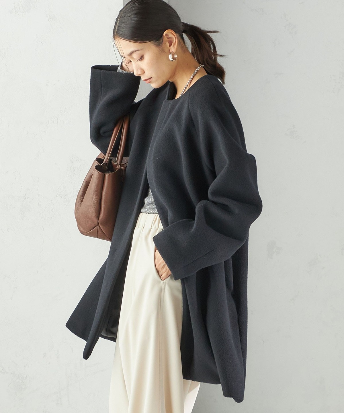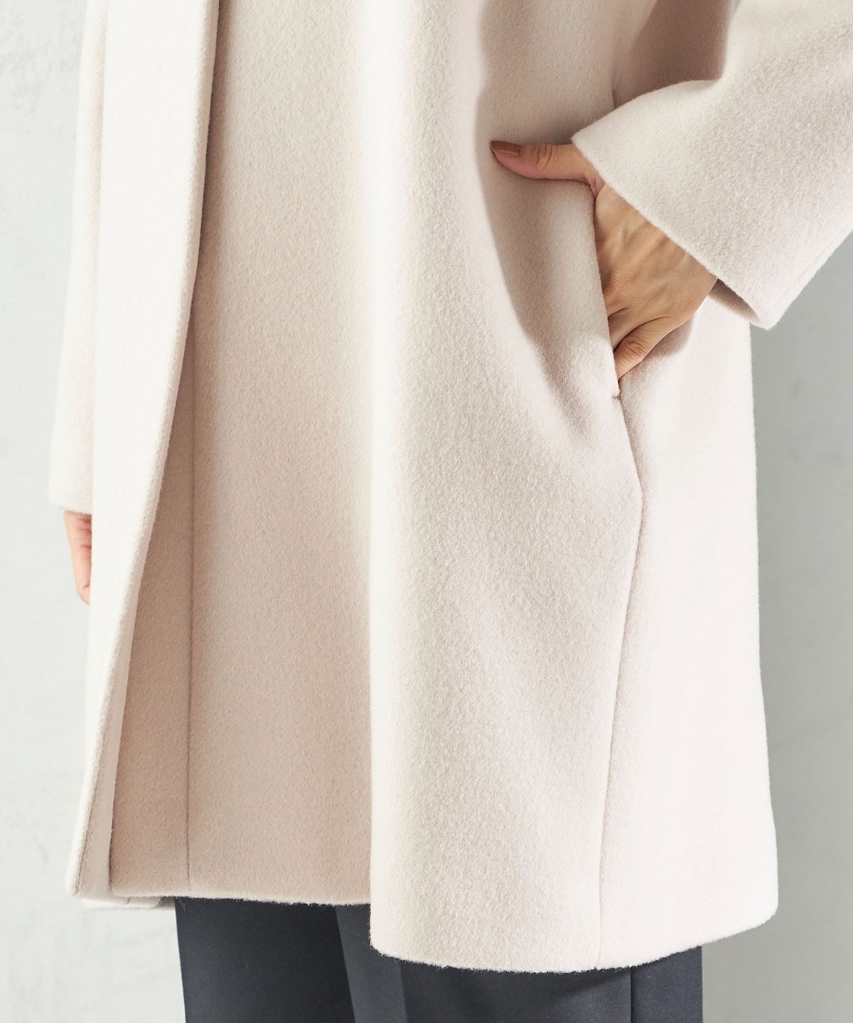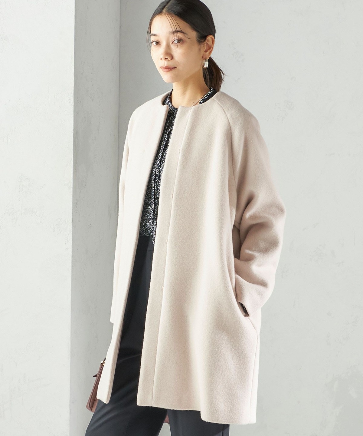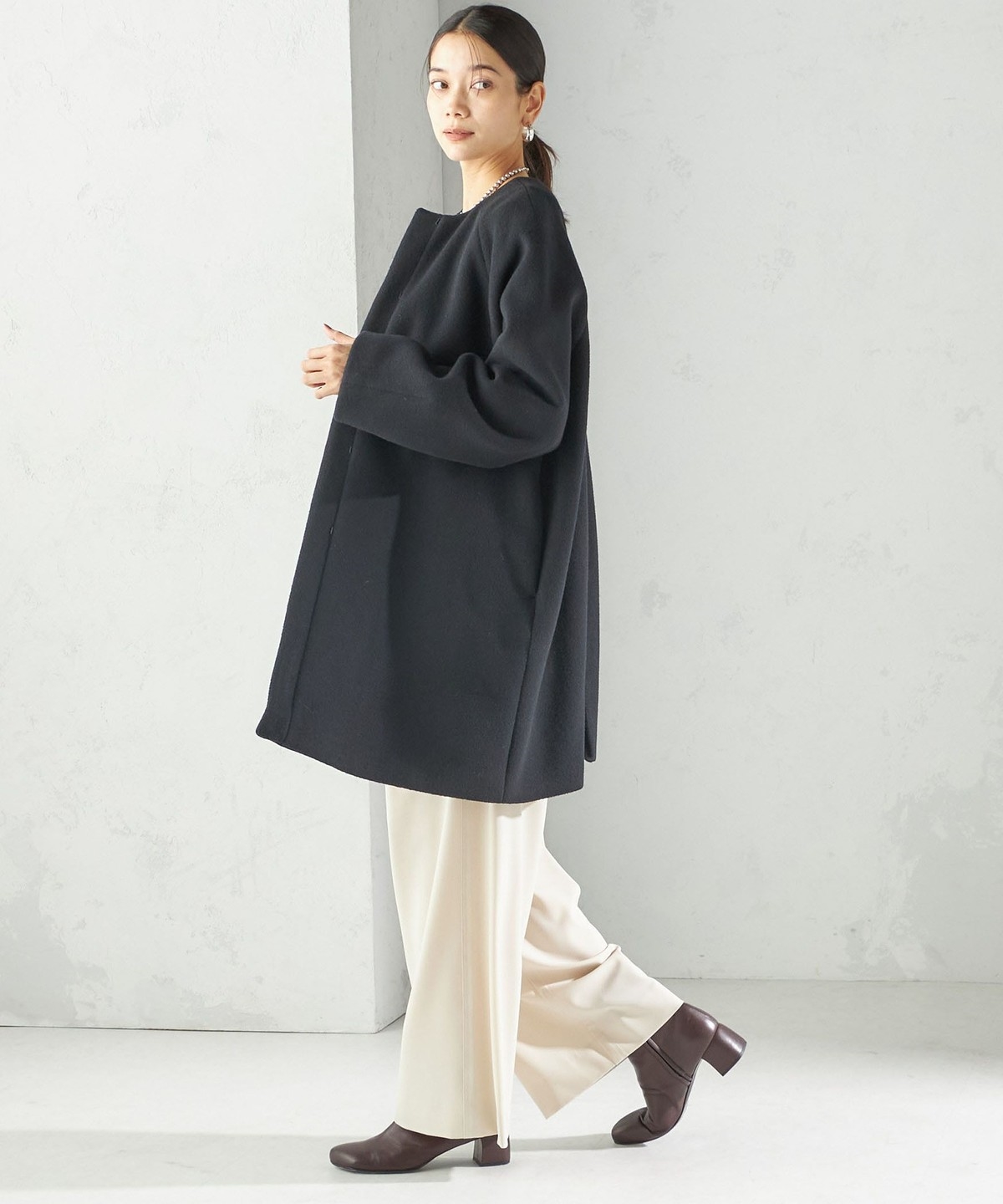 スタイリングを最大限生かしてくれる高級感引き立つノーカラーコート