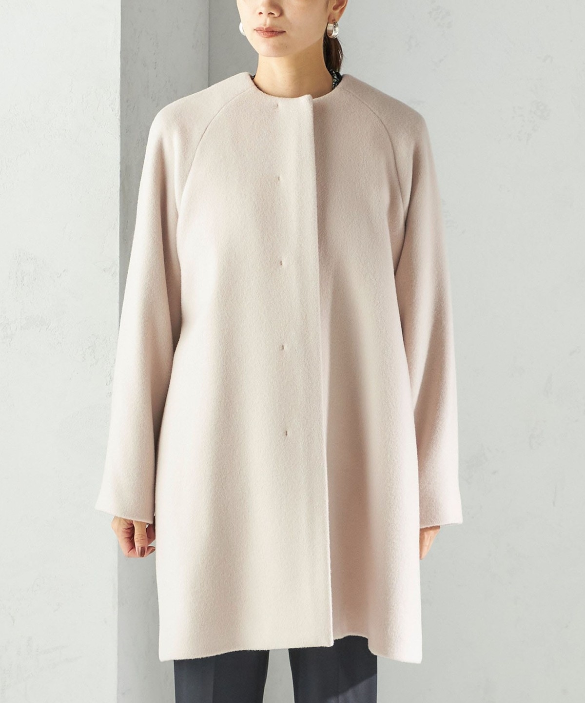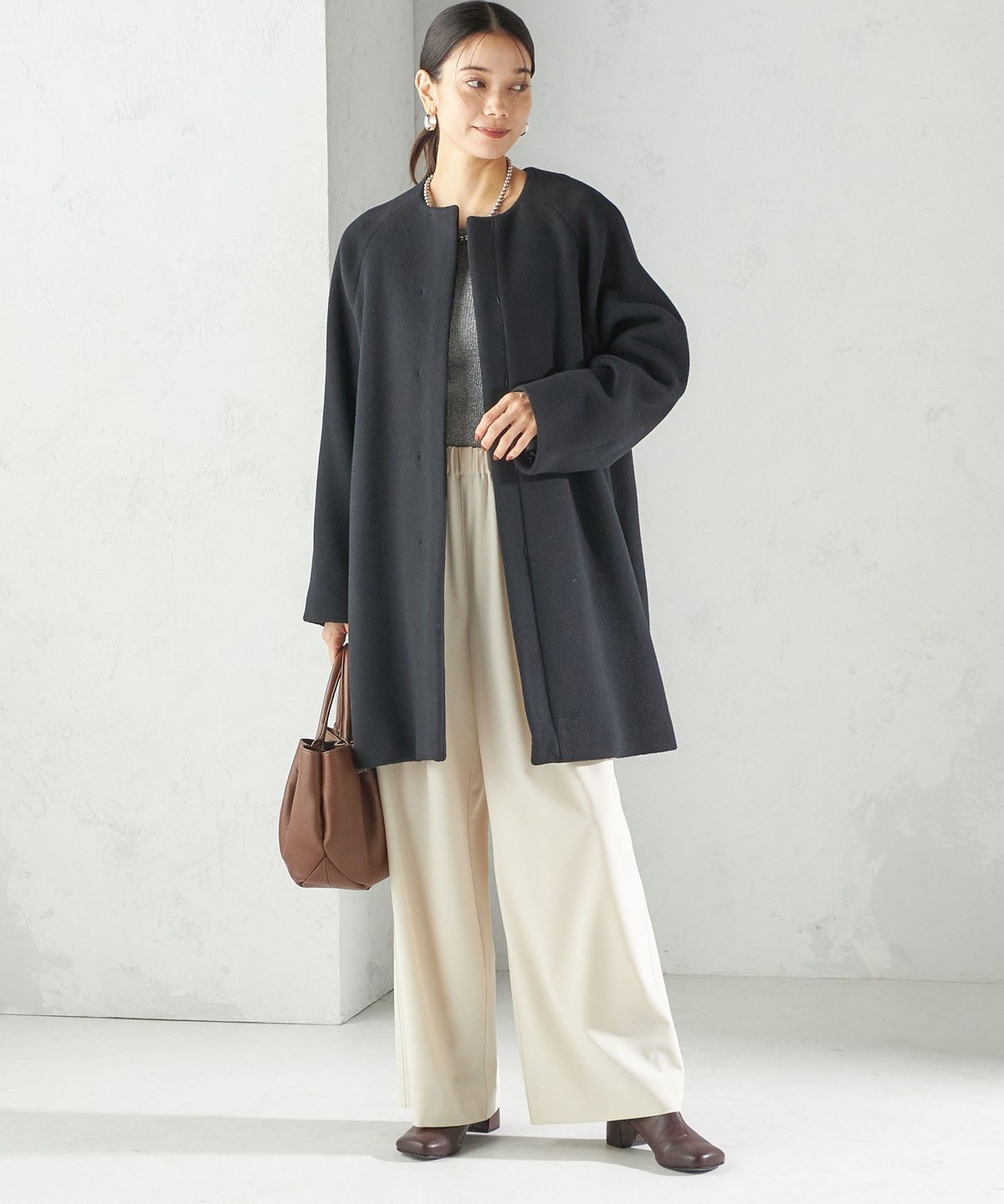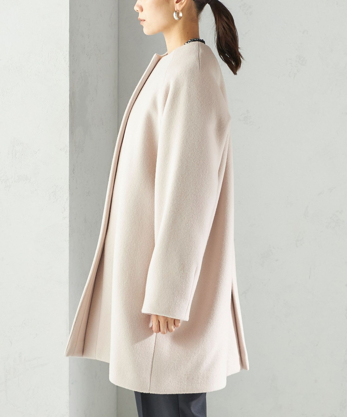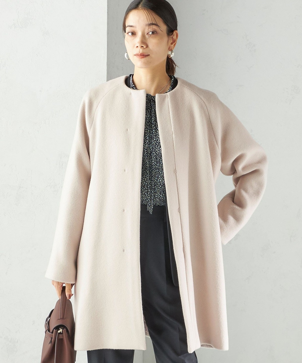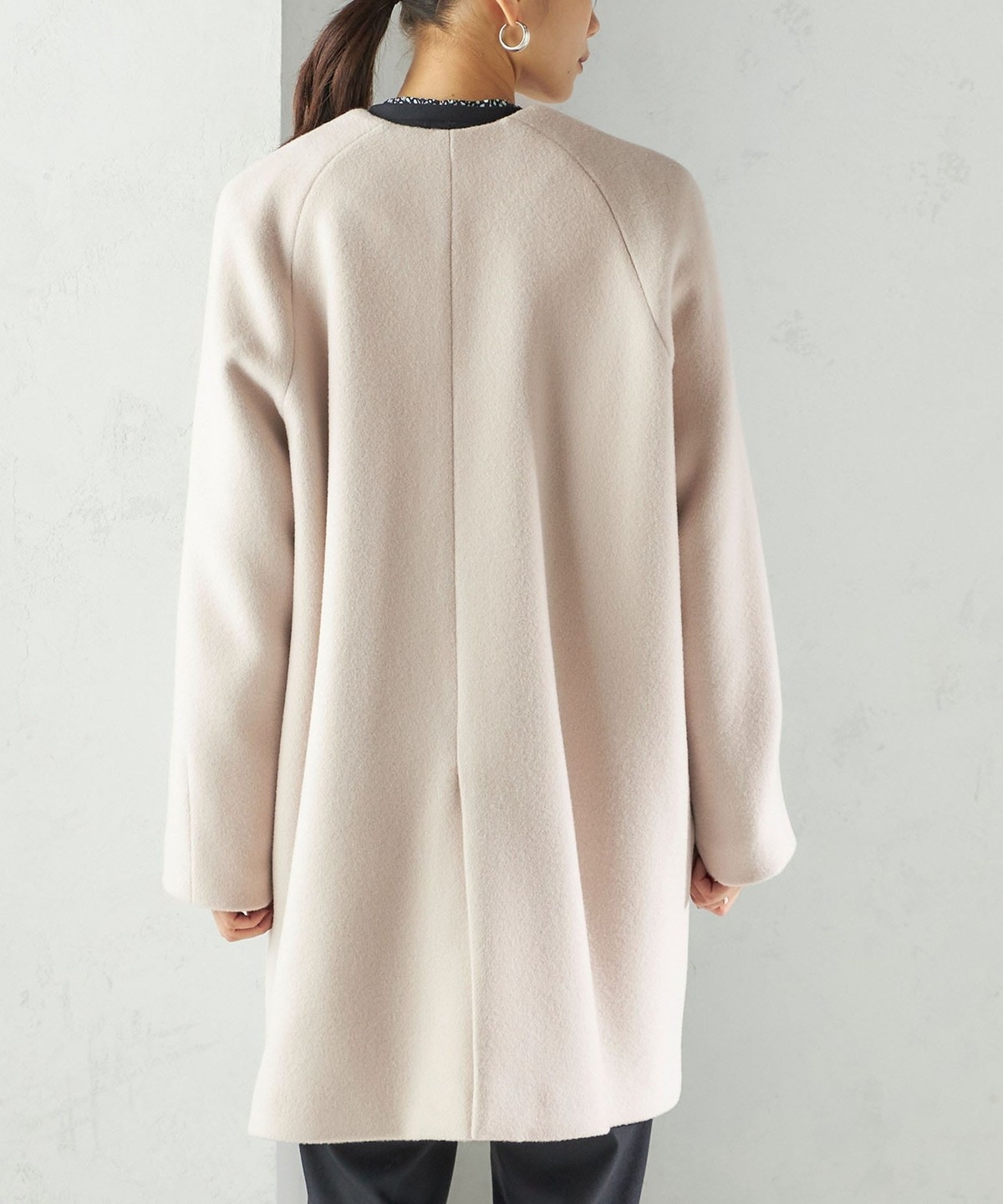 スタイリングを最大限生かしてくれる高級感引き立つノーカラーコート