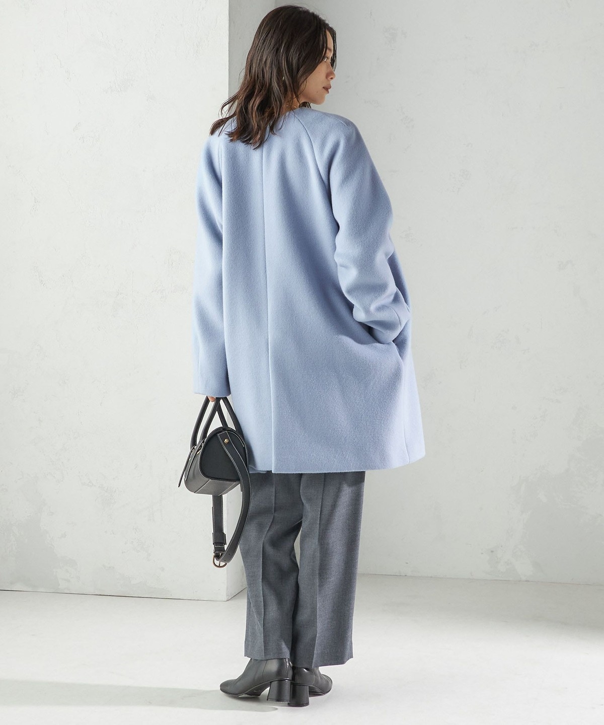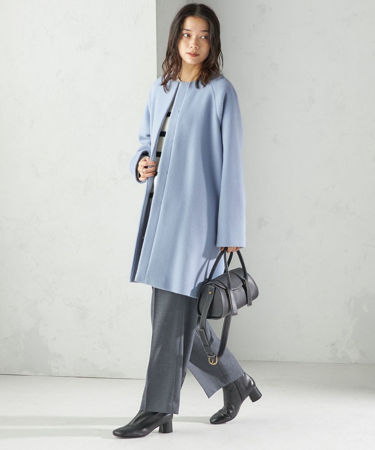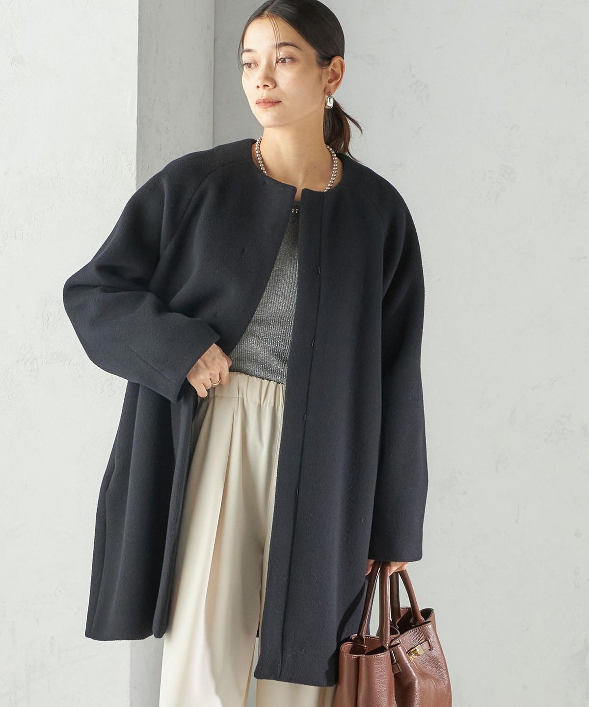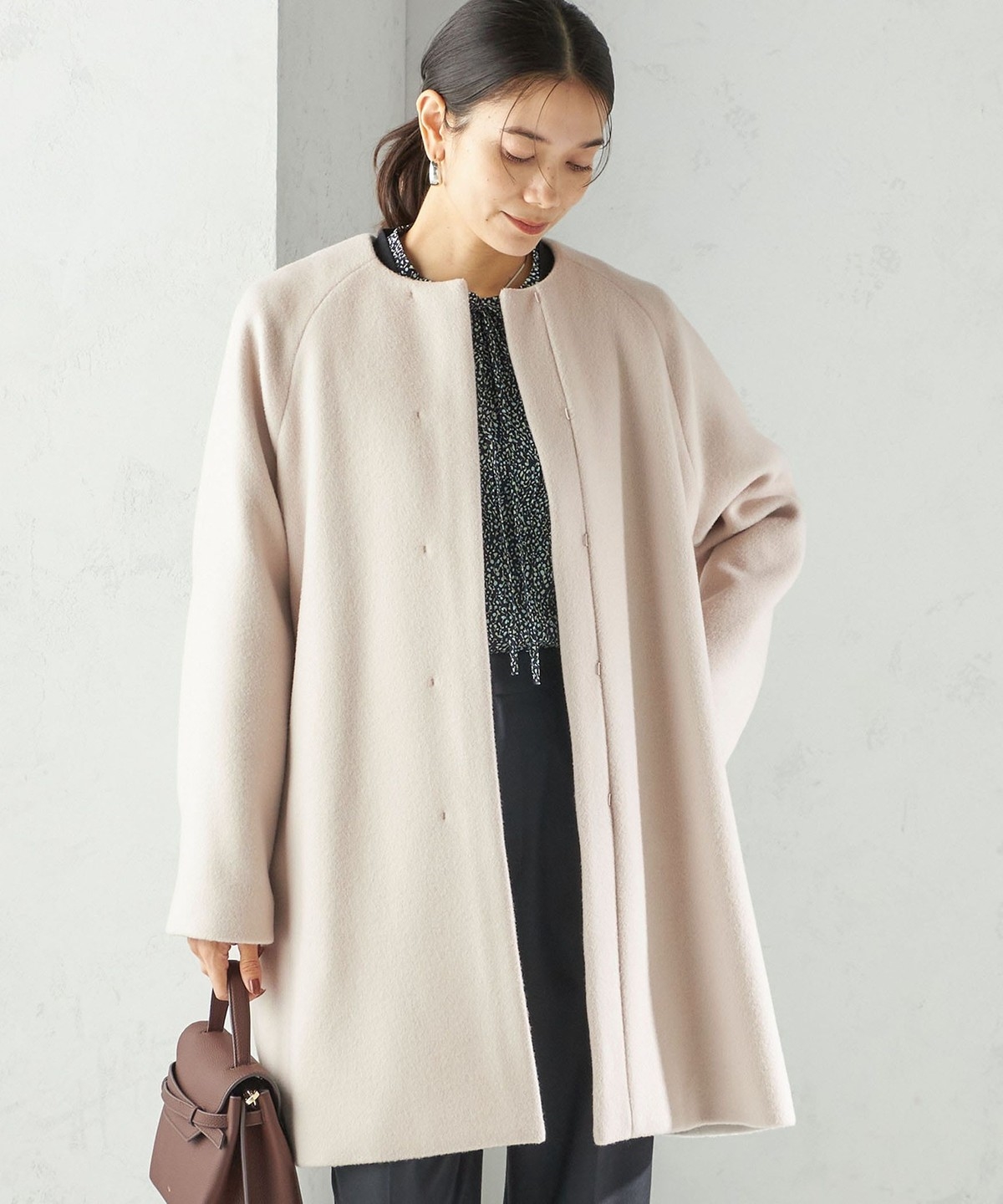 スタイリングを最大限生かしてくれる高級感引き立つノーカラーコート