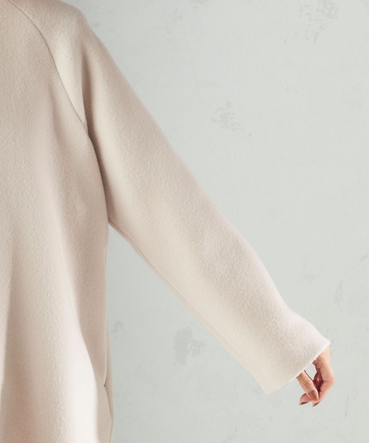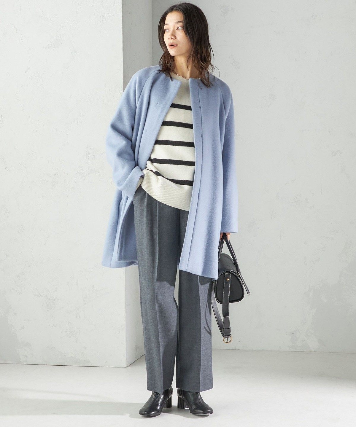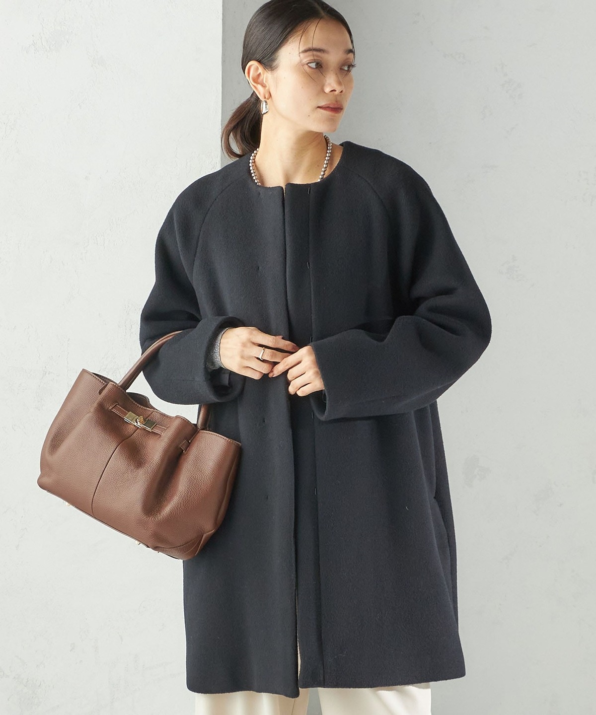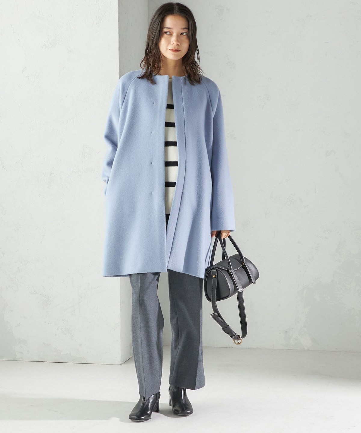 スタイリングを最大限生かしてくれる高級感引き立つノーカラーコート
