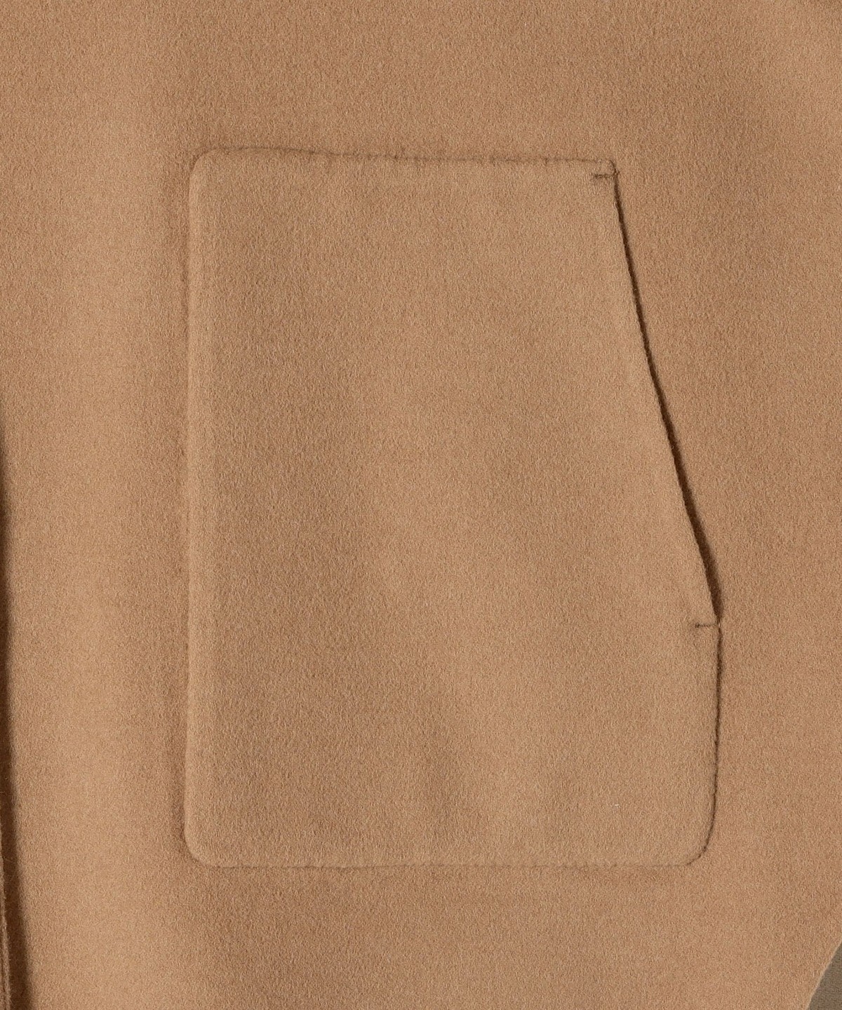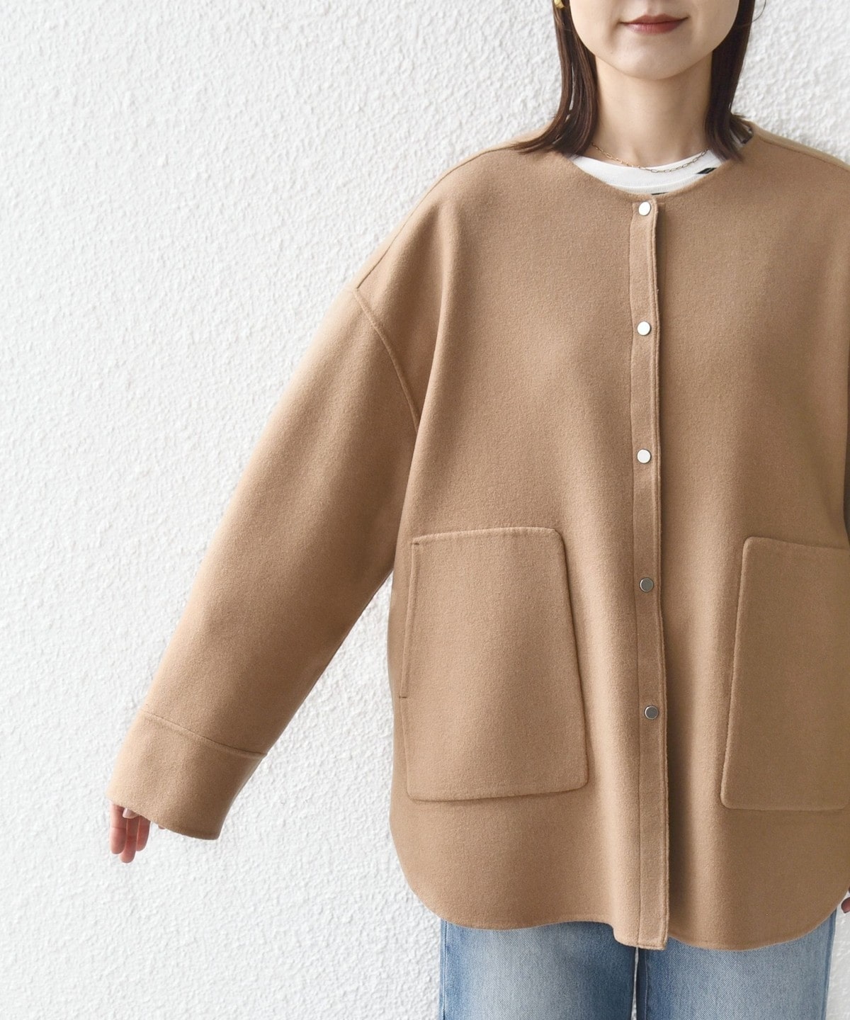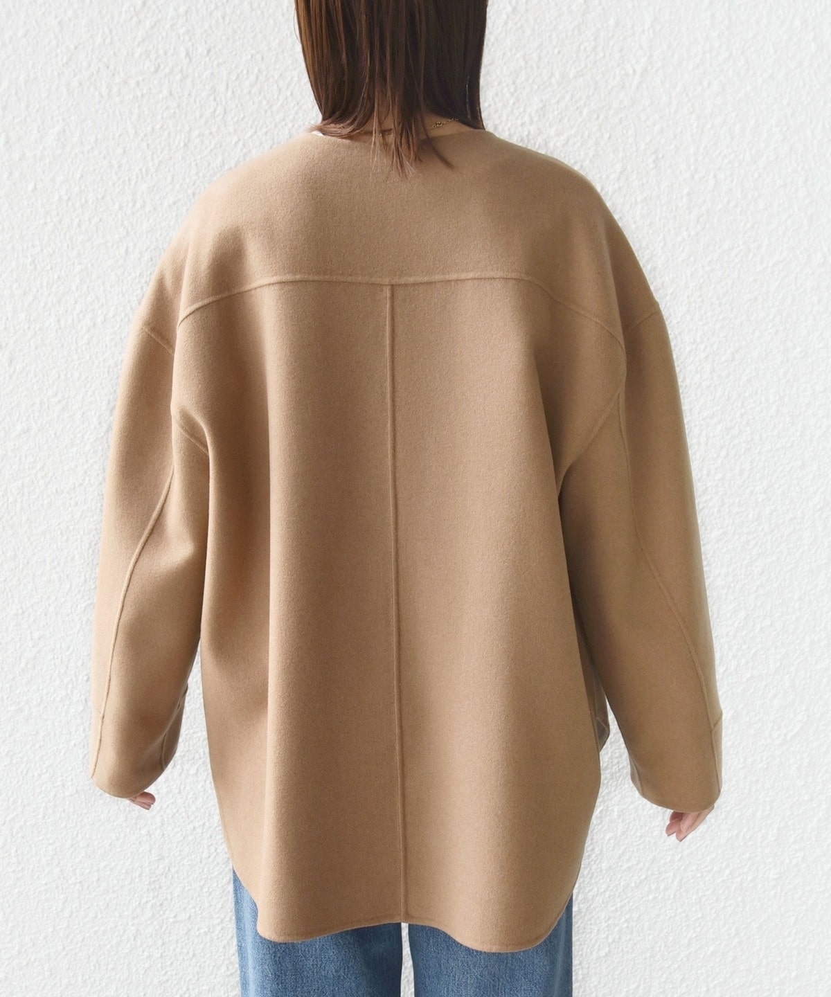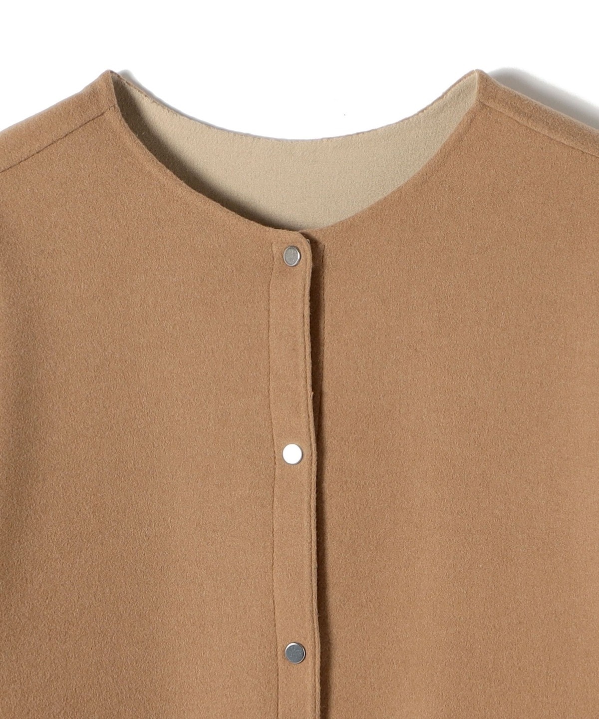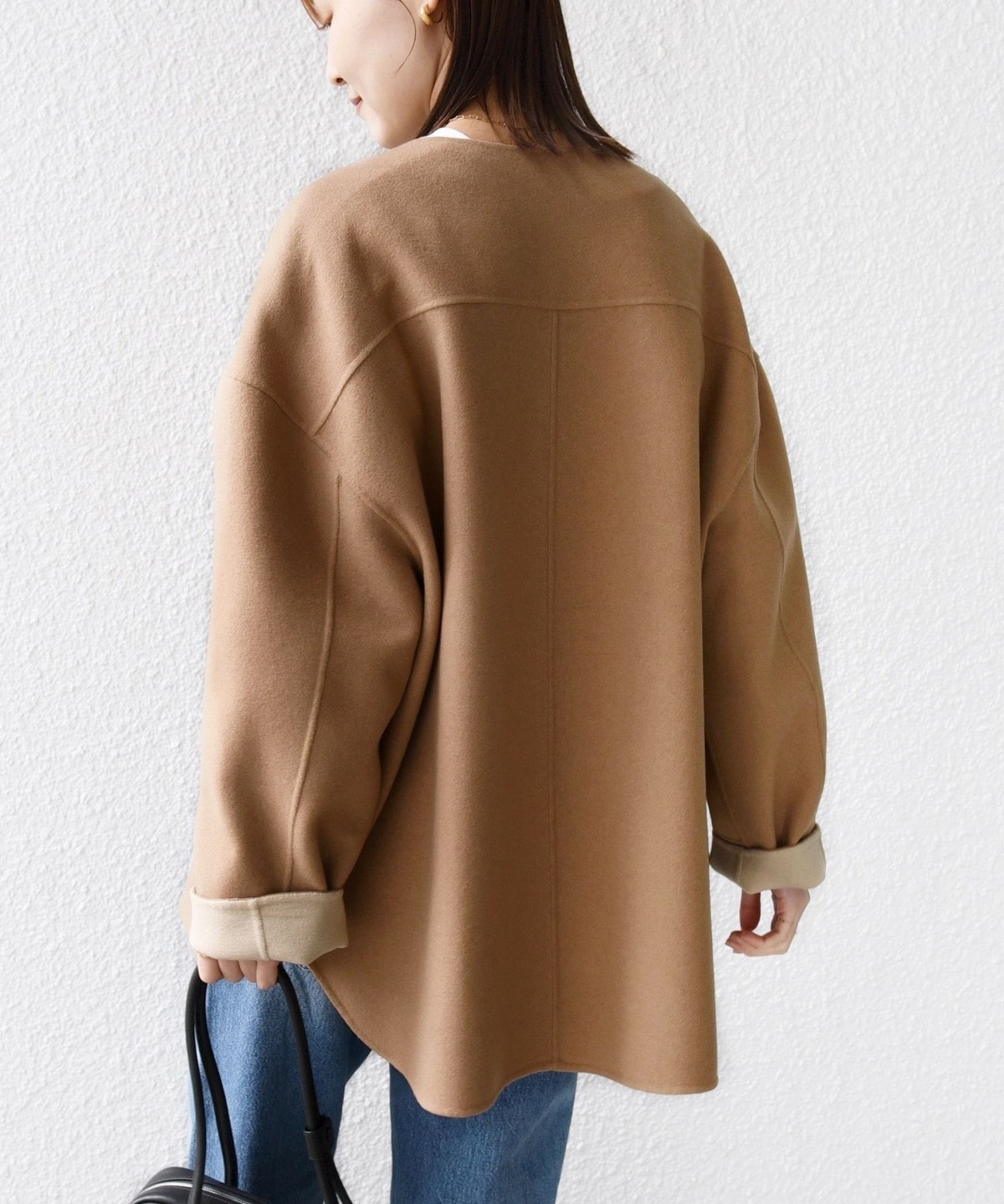 2. セミ 梳毛 配色 リバー ノーカラー コート キャメル