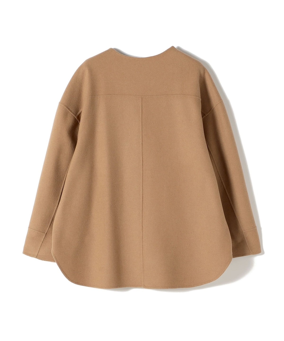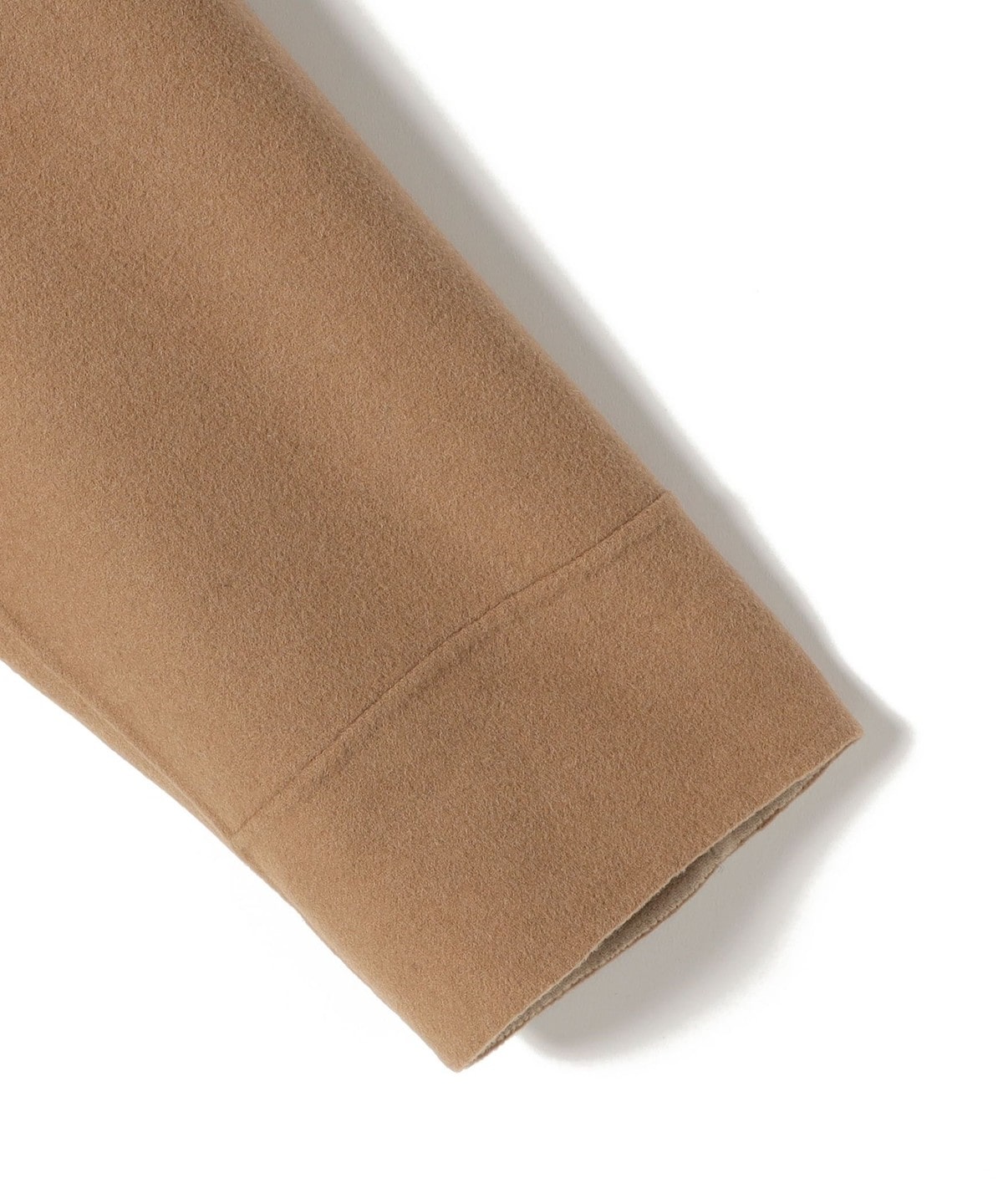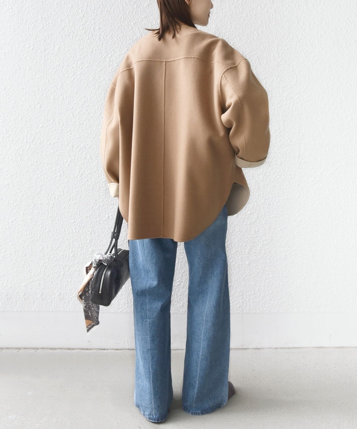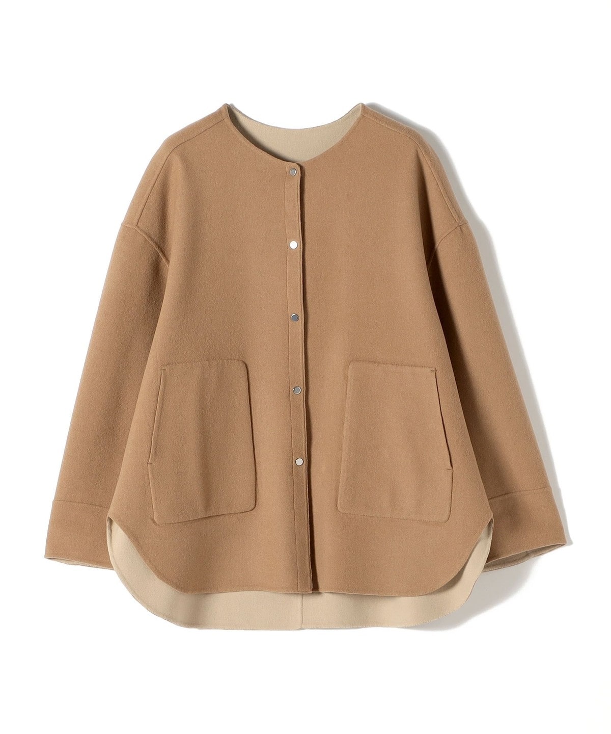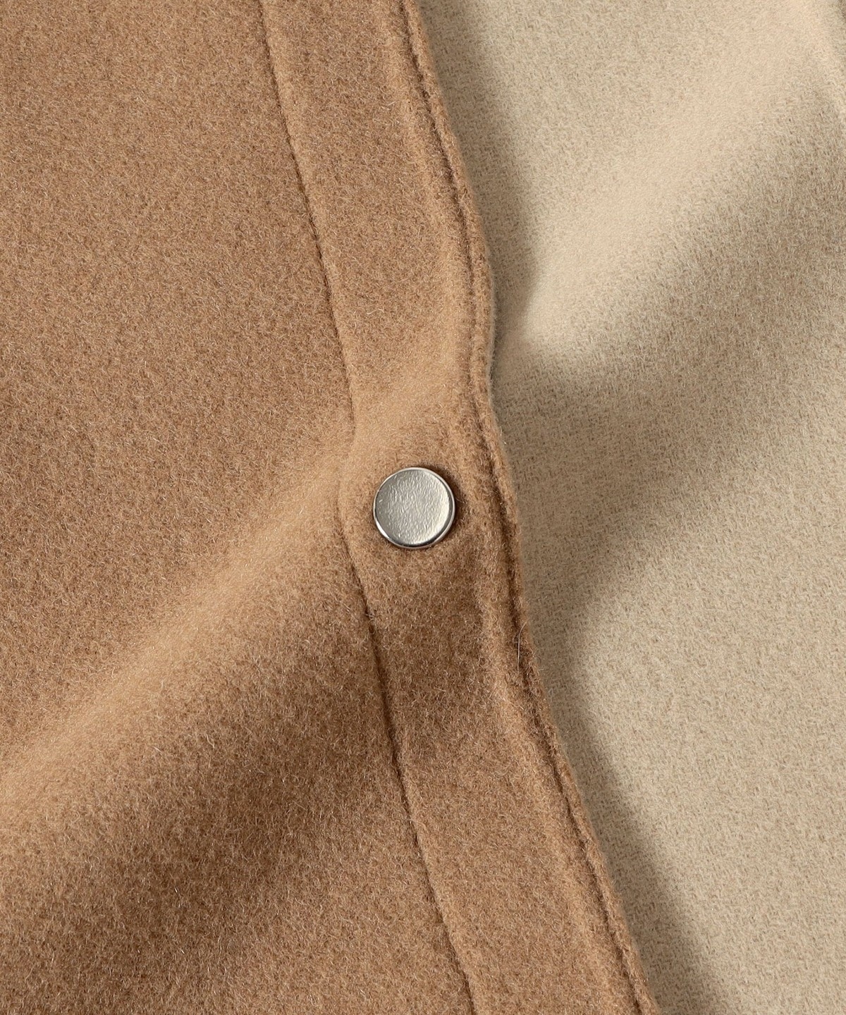 2. セミ 梳毛 配色 リバー ノーカラー コート キャメル