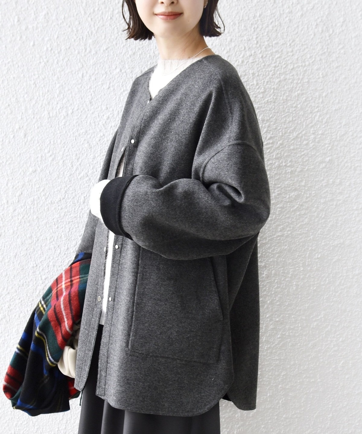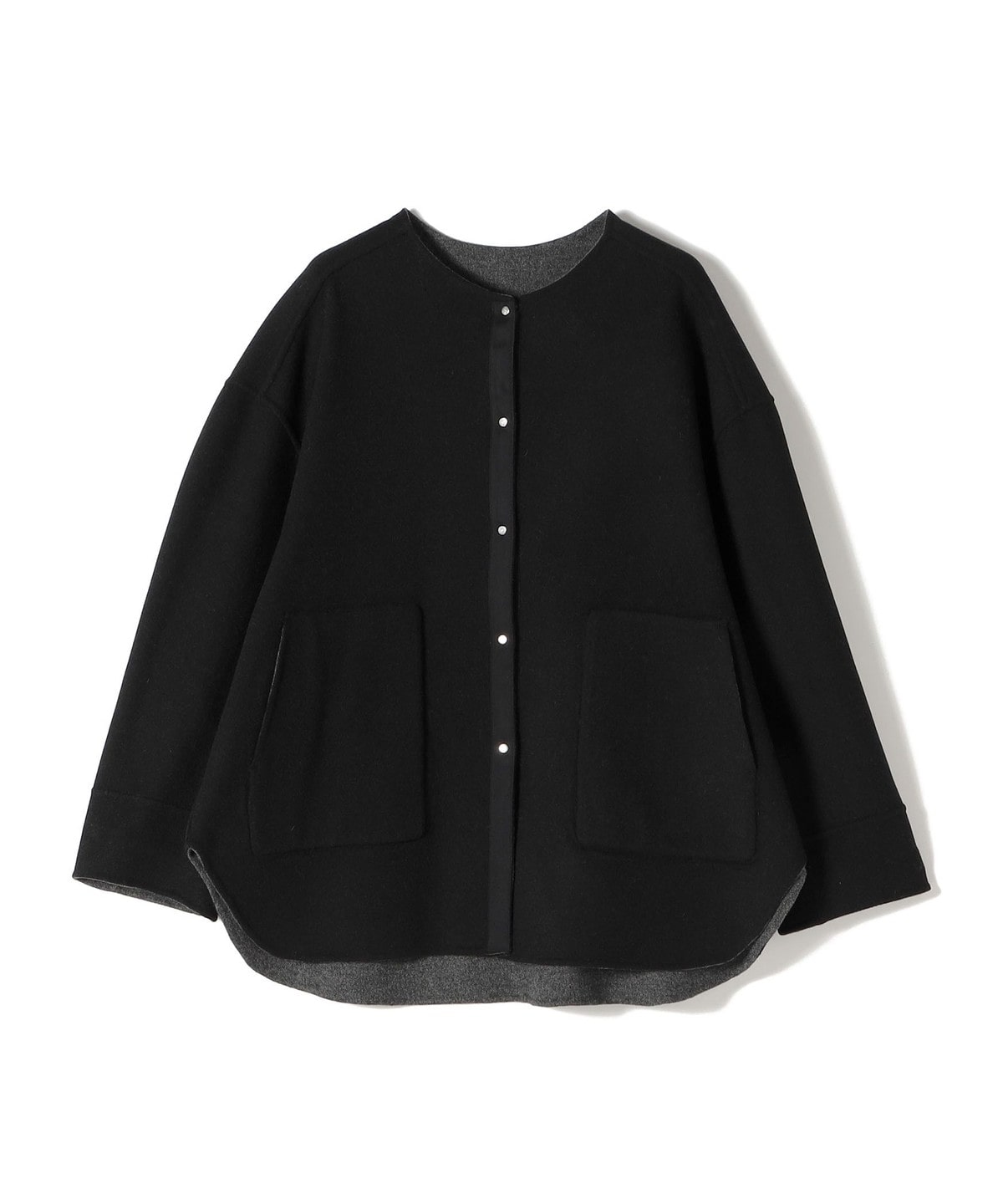 > > >  > セミ 梳毛 配色 リバー ノーカラー コート